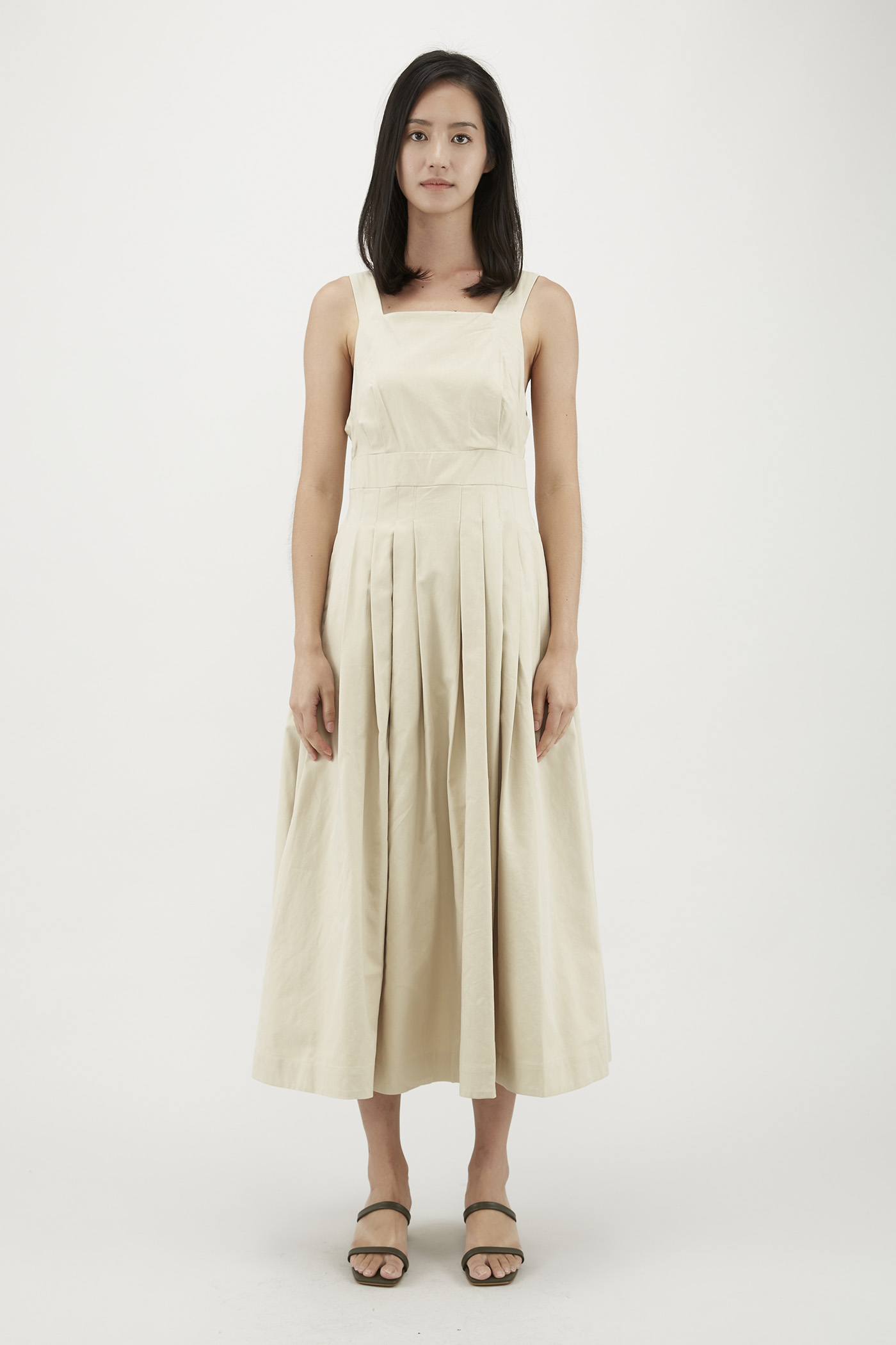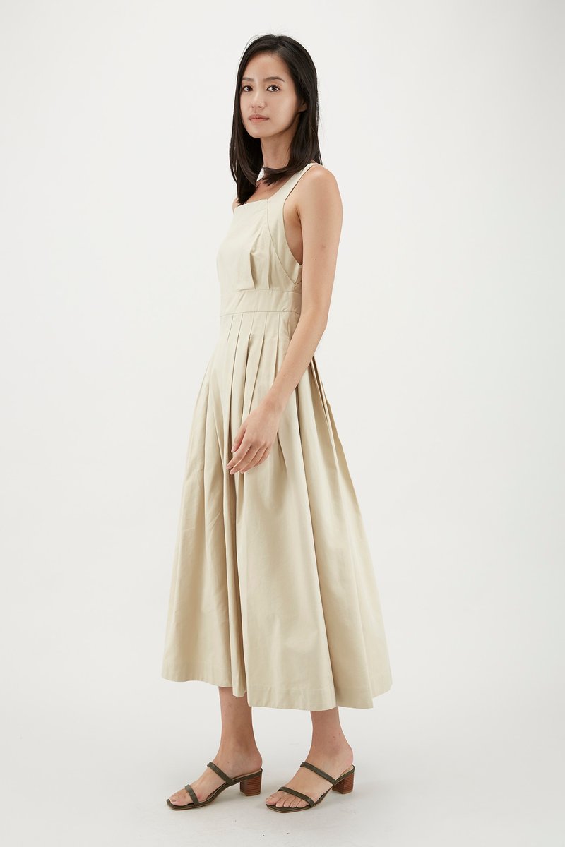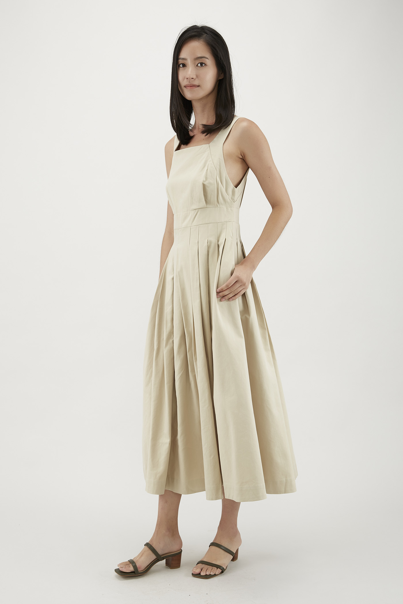 Switch up your dresses with some gentle tailoring. Cut from smooth and fully lined fabric, this softly structured maxi features a square neckline, thick shoulder straps, cut-in shoulders, two functional side pockets, a zip closure on the back, and pleats for added polish. Fits slimmer through its bodice, before flaring out in an A-line skirt.