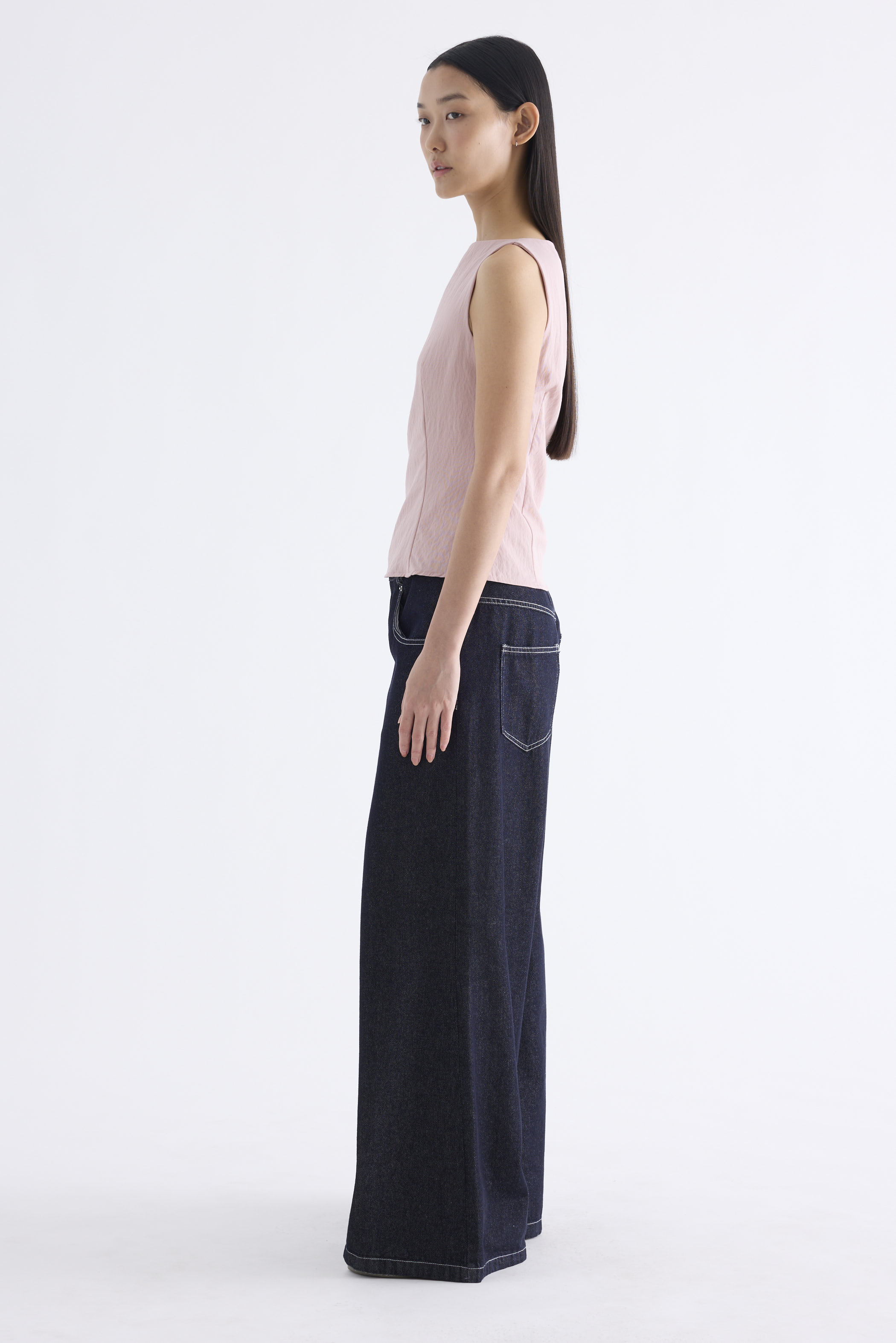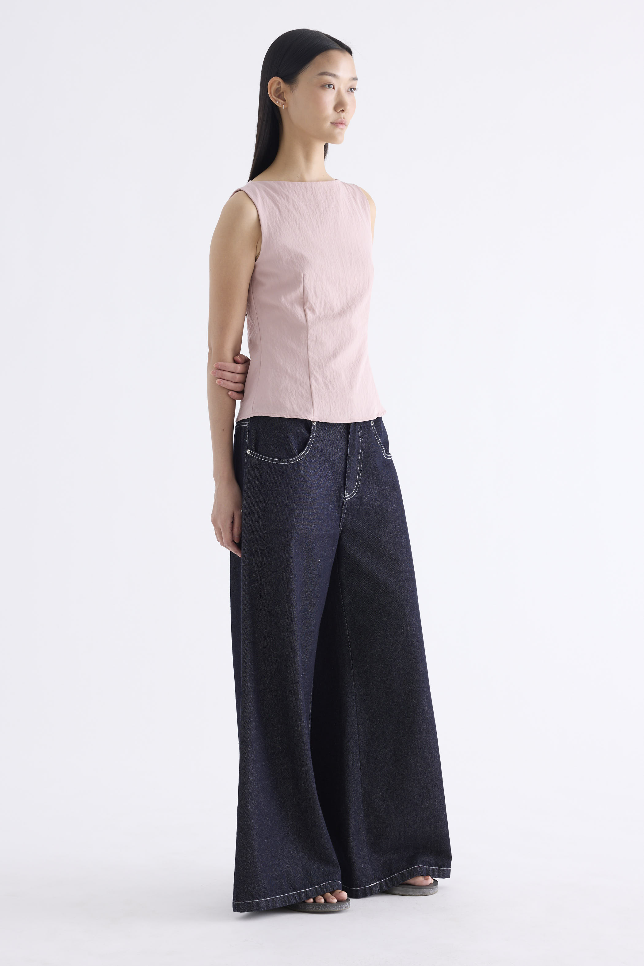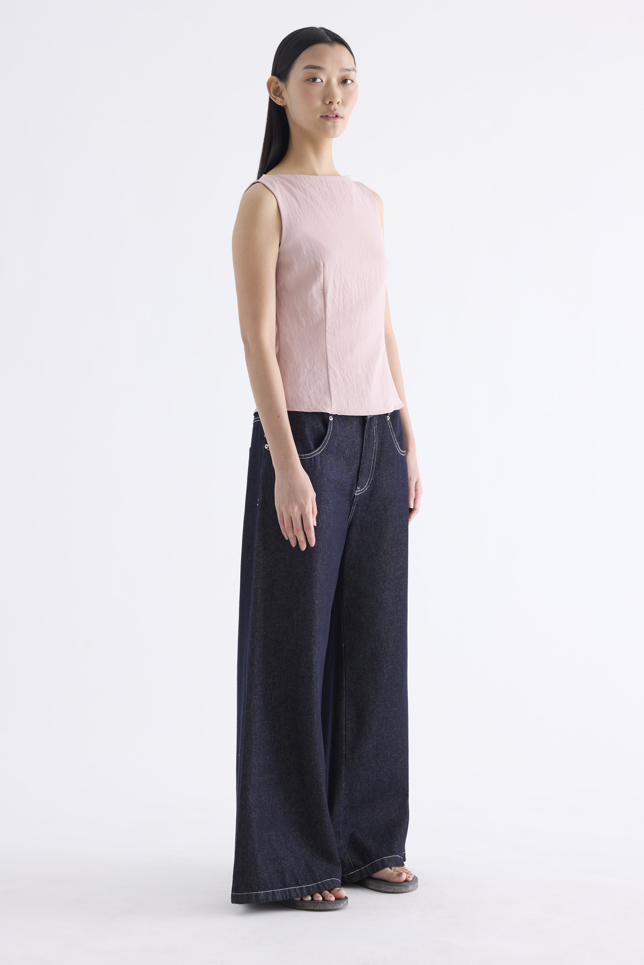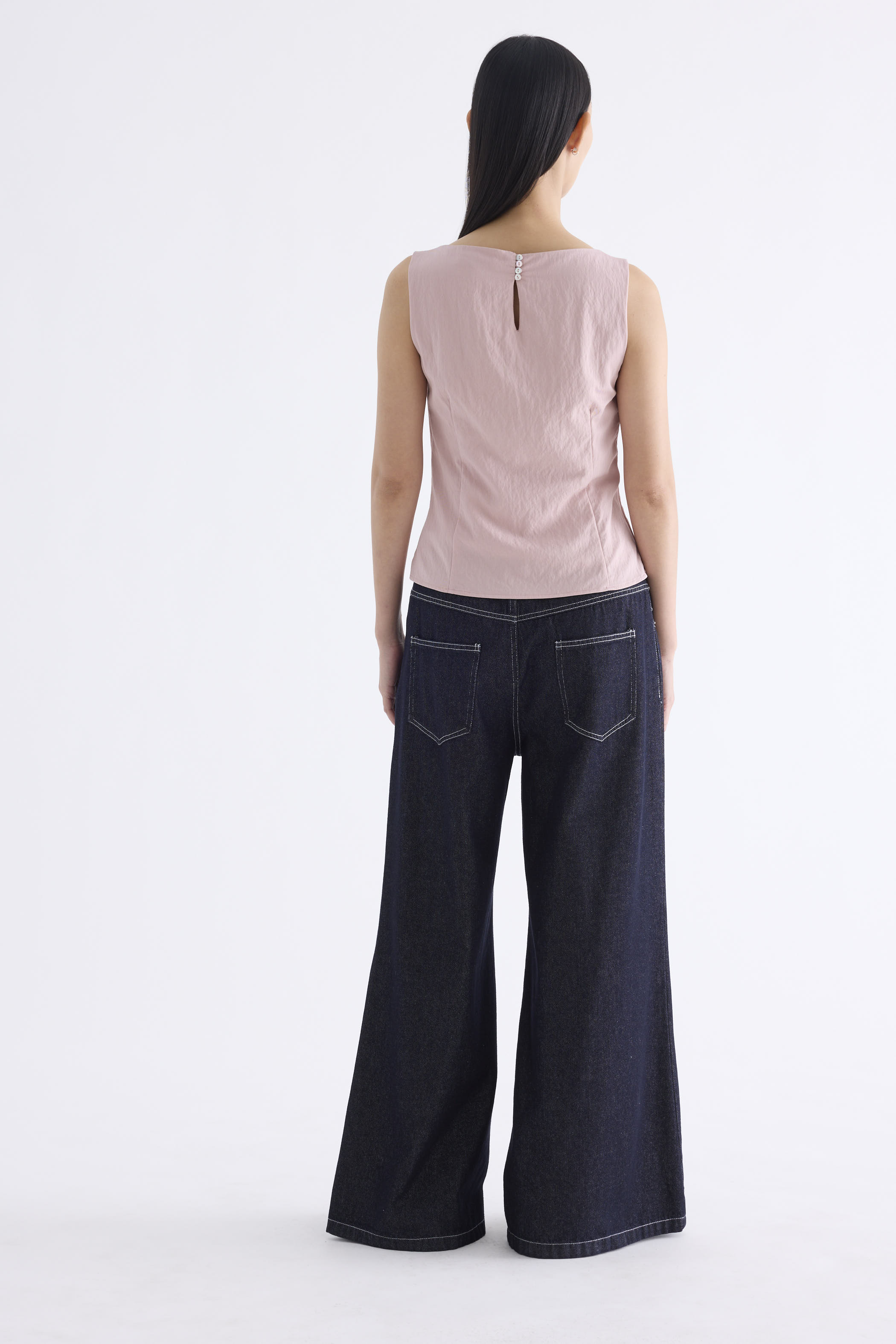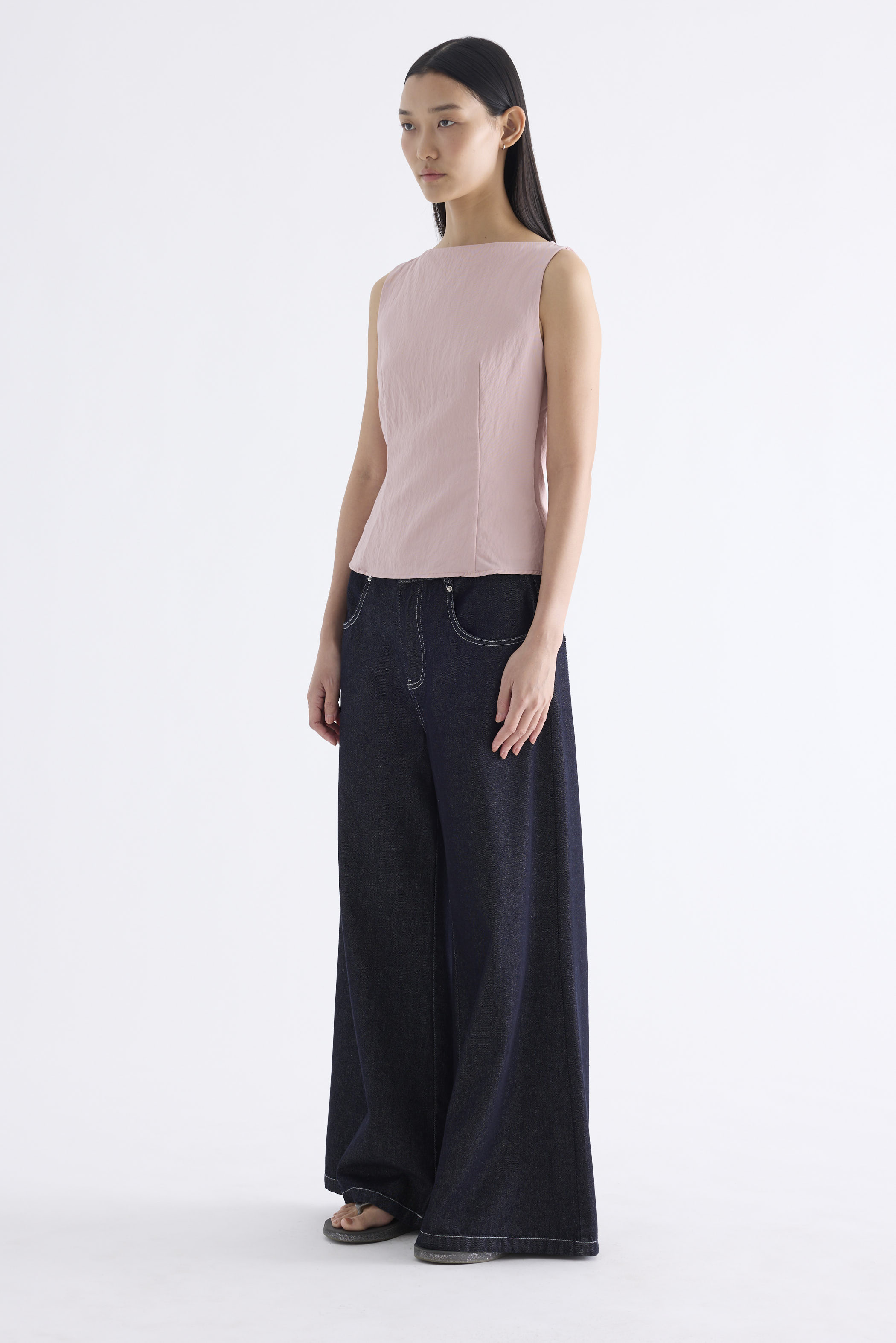 With an element of surprise. Made from smooth and softly structured fabric, this sleeveless tank features a boat neckline, panelled construction and buttoned keyhole opening at the back. Worn in a slim fit with a side zip closure.