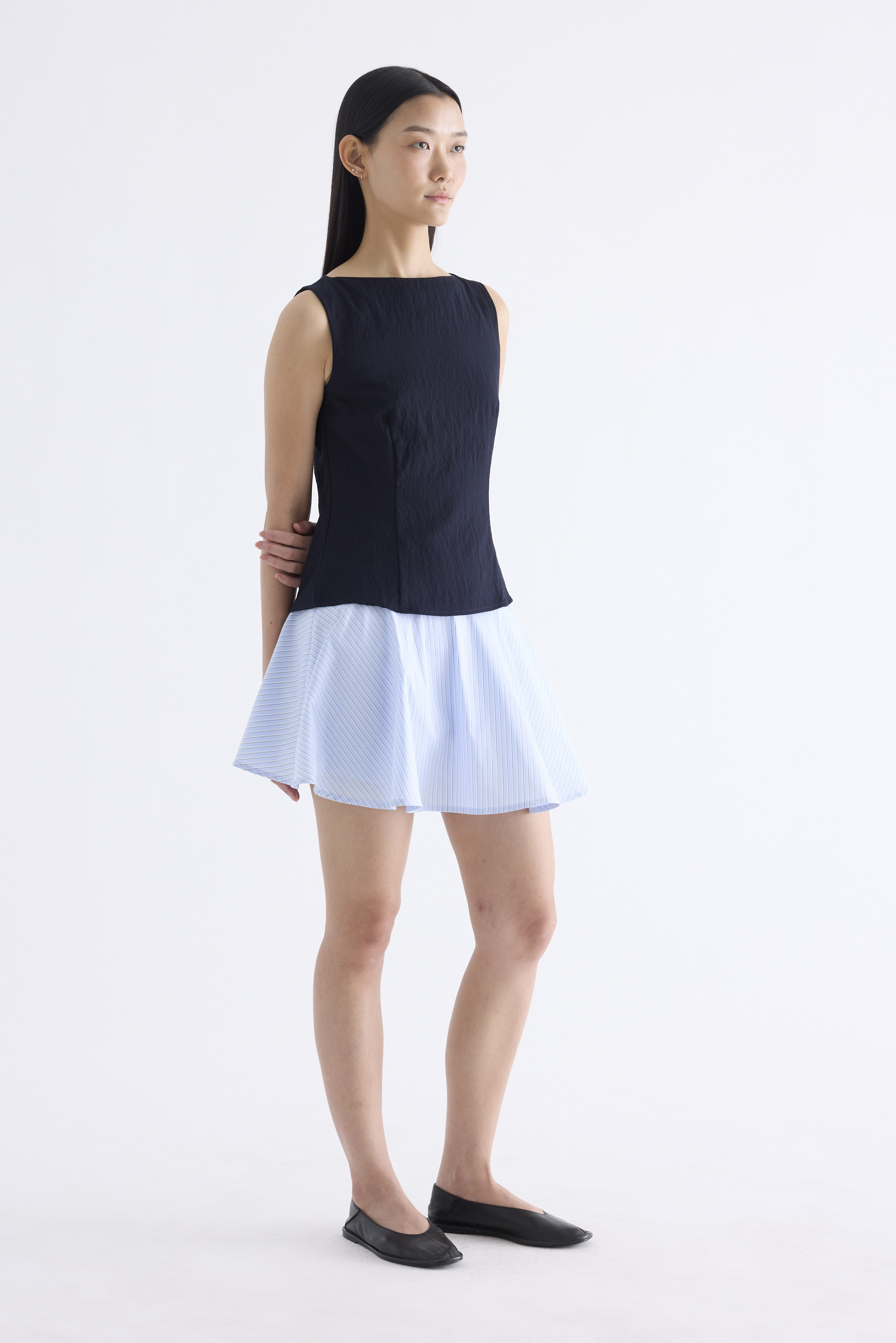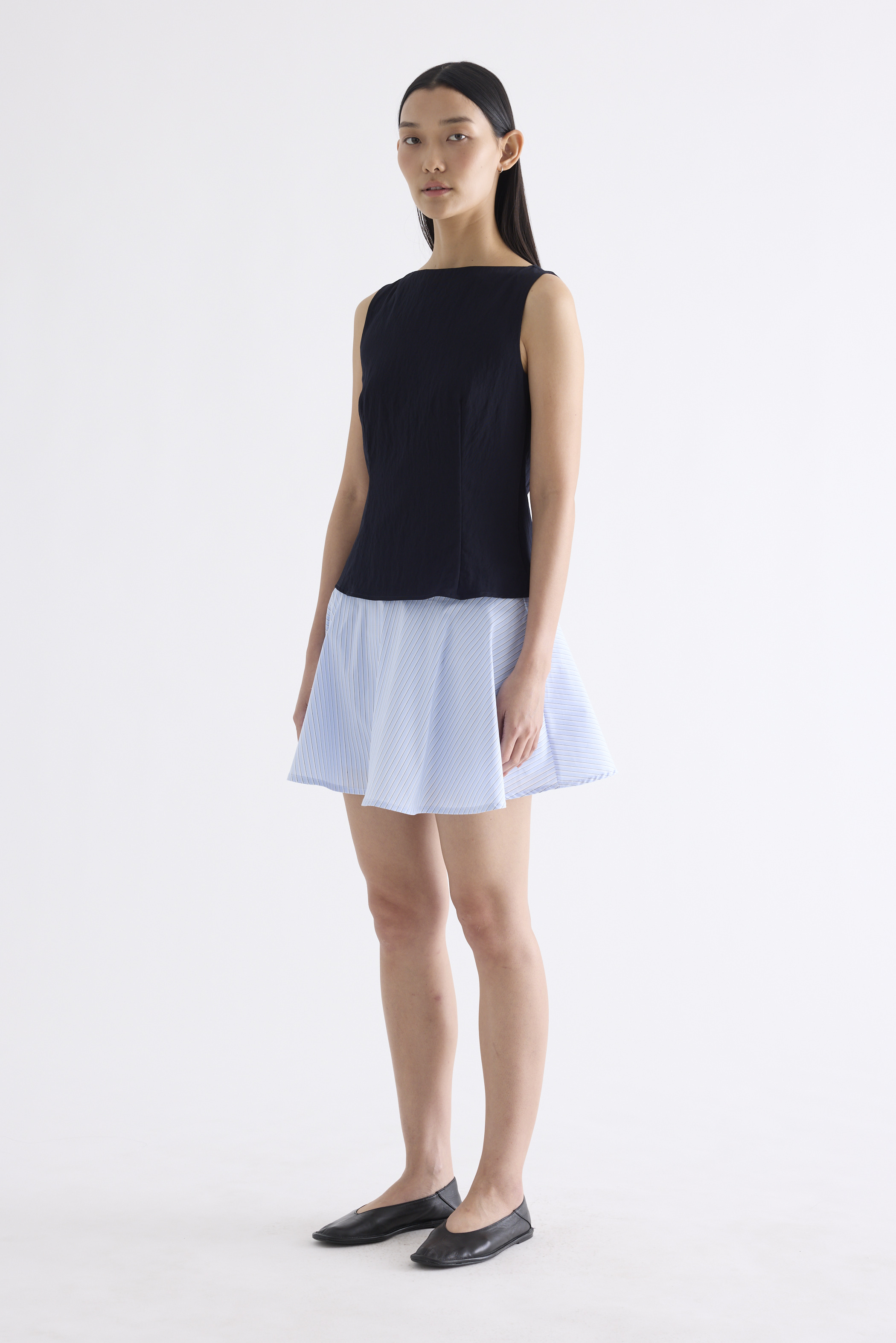 With an element of surprise. Made from smooth and softly structured fabric, this sleeveless tank features a boat neckline, panelled construction and buttoned keyhole opening at the back. Worn in a slim fit with a side zip closure.