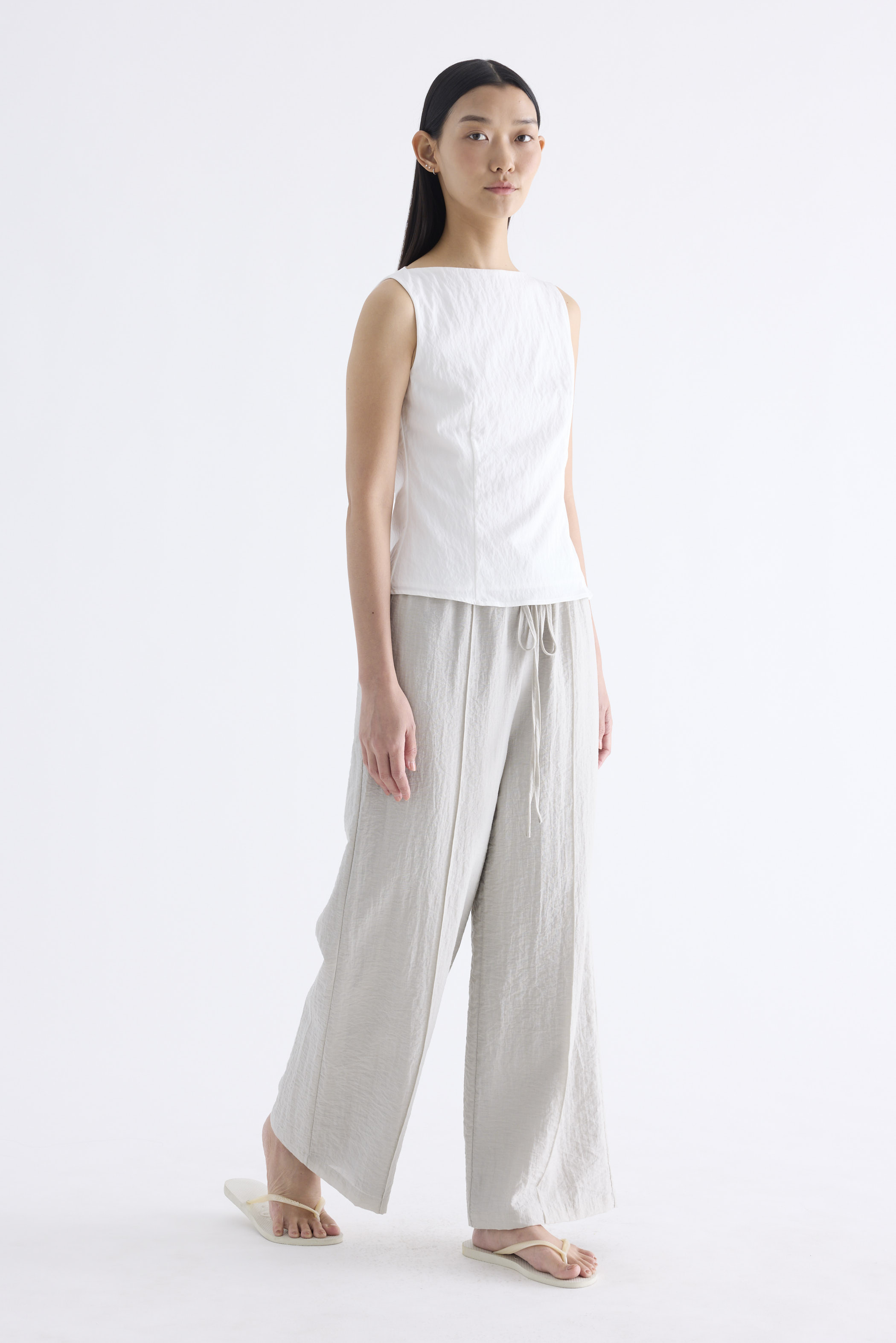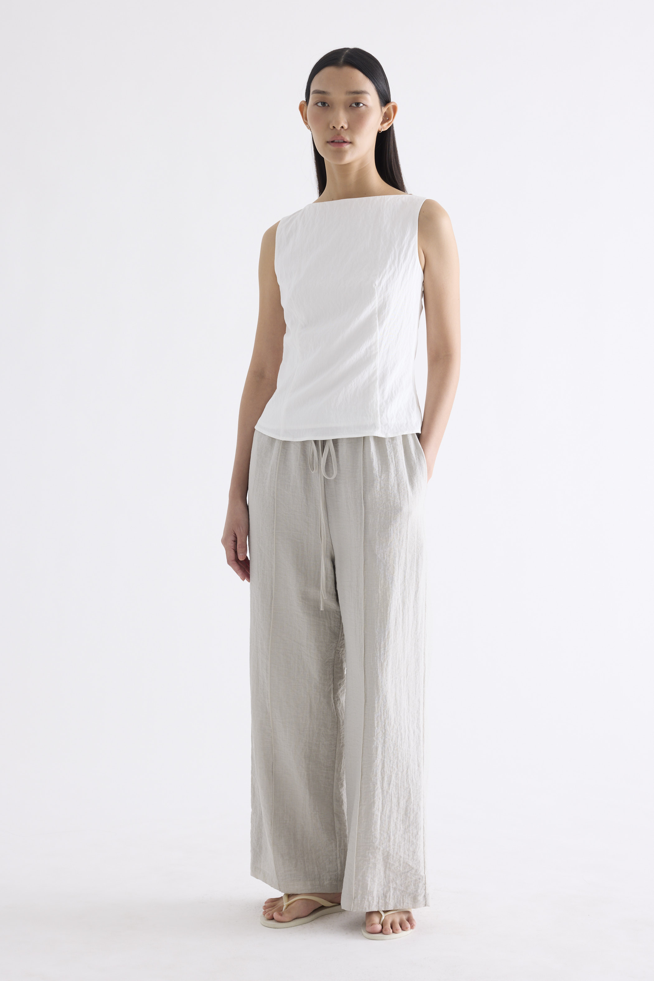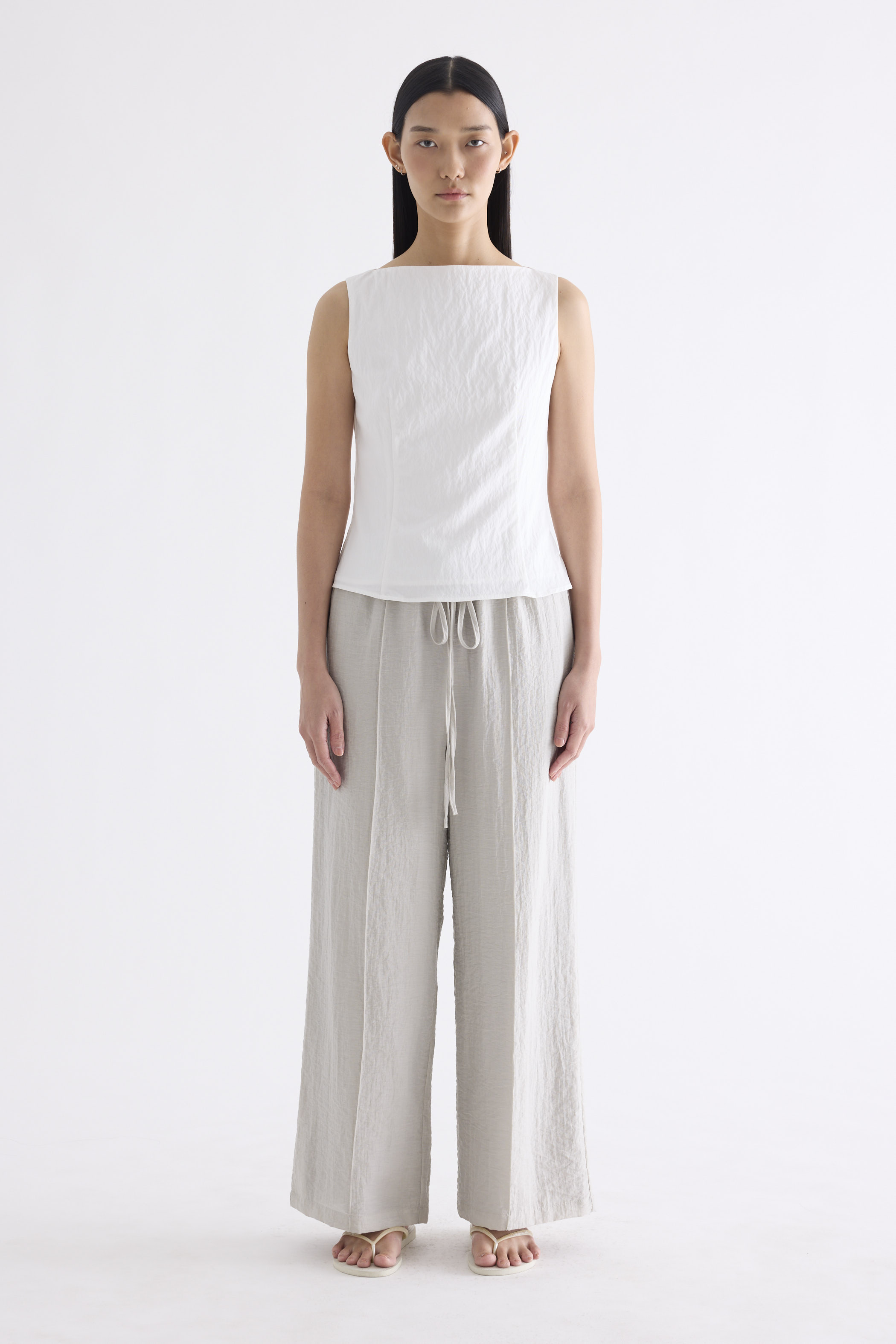 With an element of surprise. Made from smooth and softly structured fabric, this sleeveless tank features a boat neckline, panelled construction and buttoned keyhole opening at the back. Worn in a slim fit with a side zip closure.