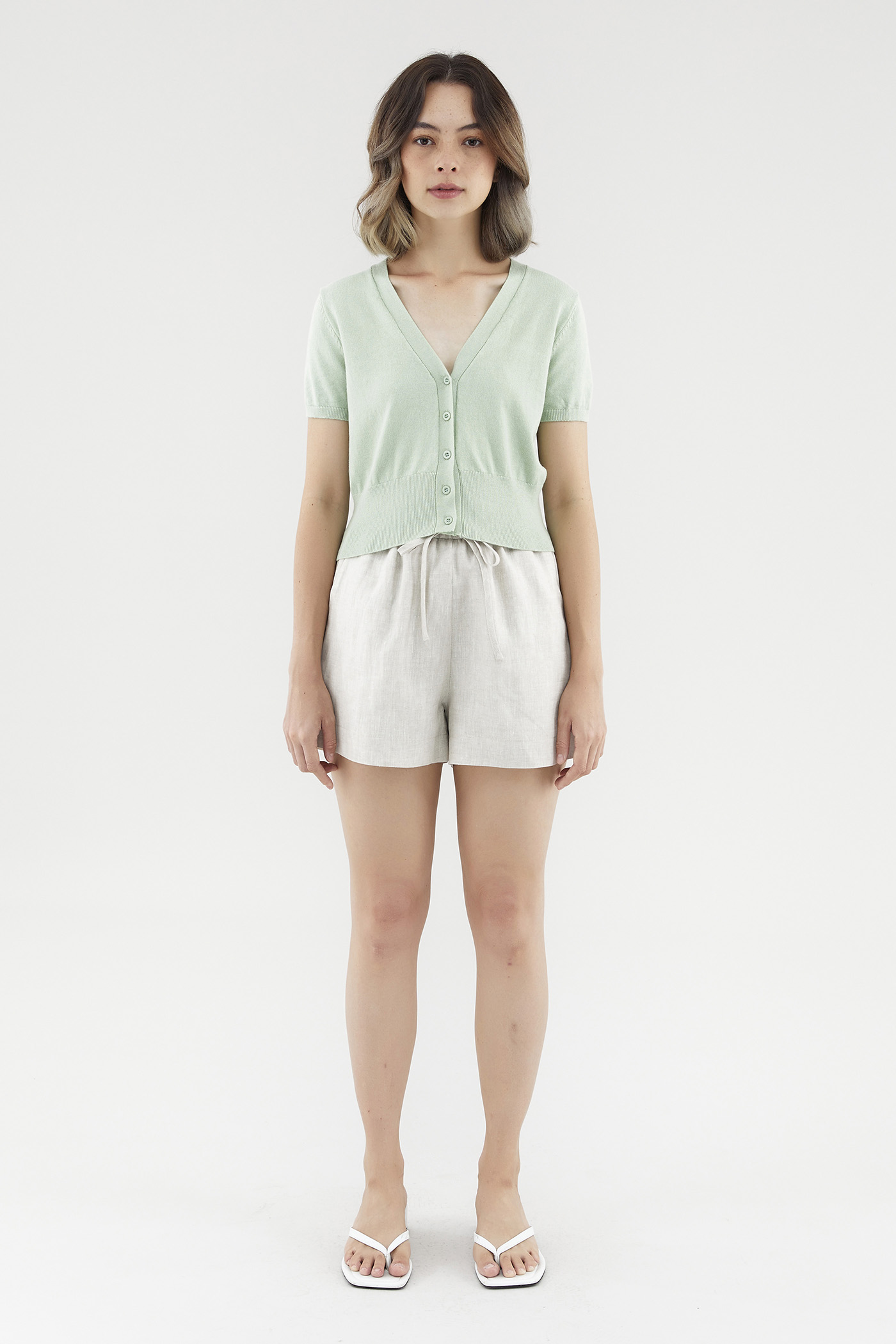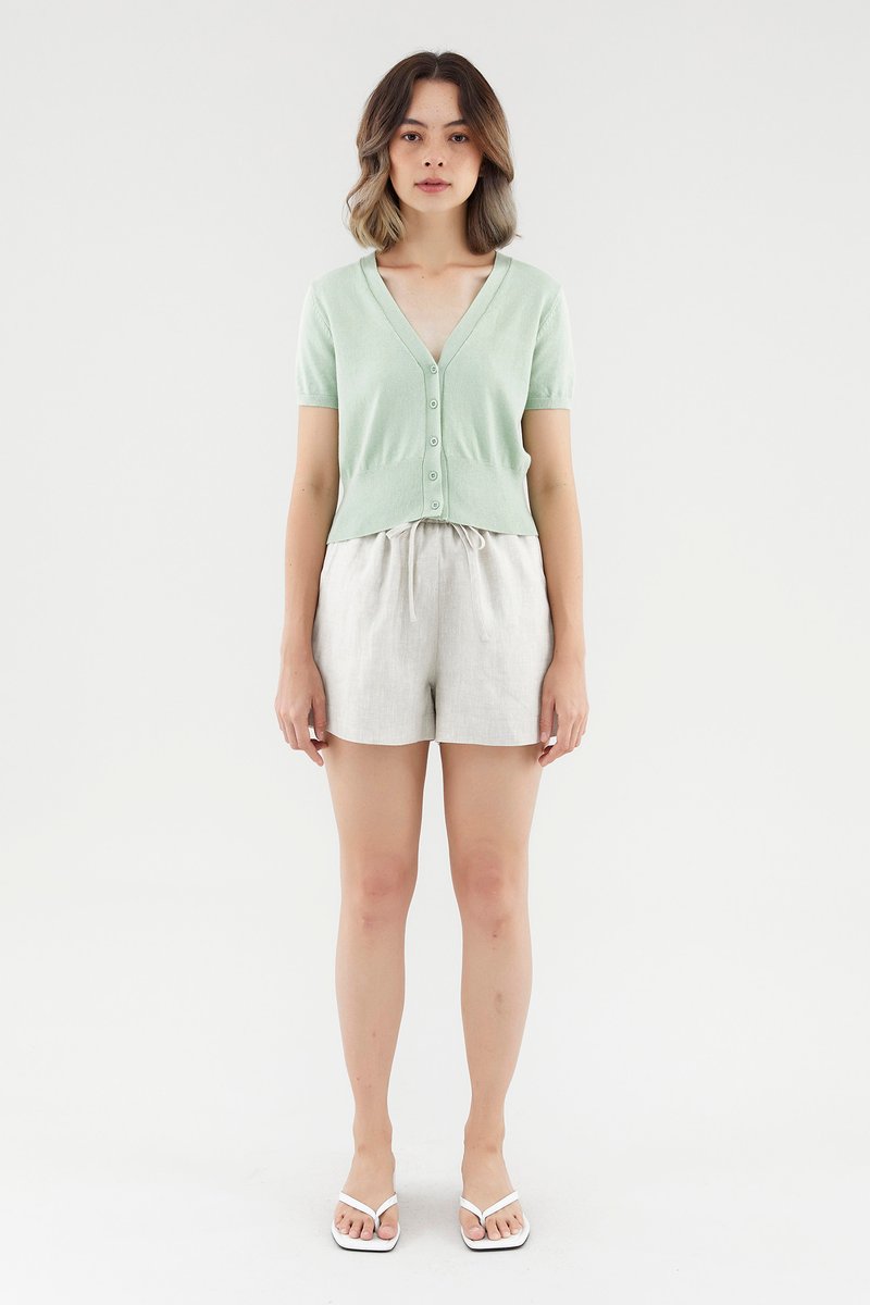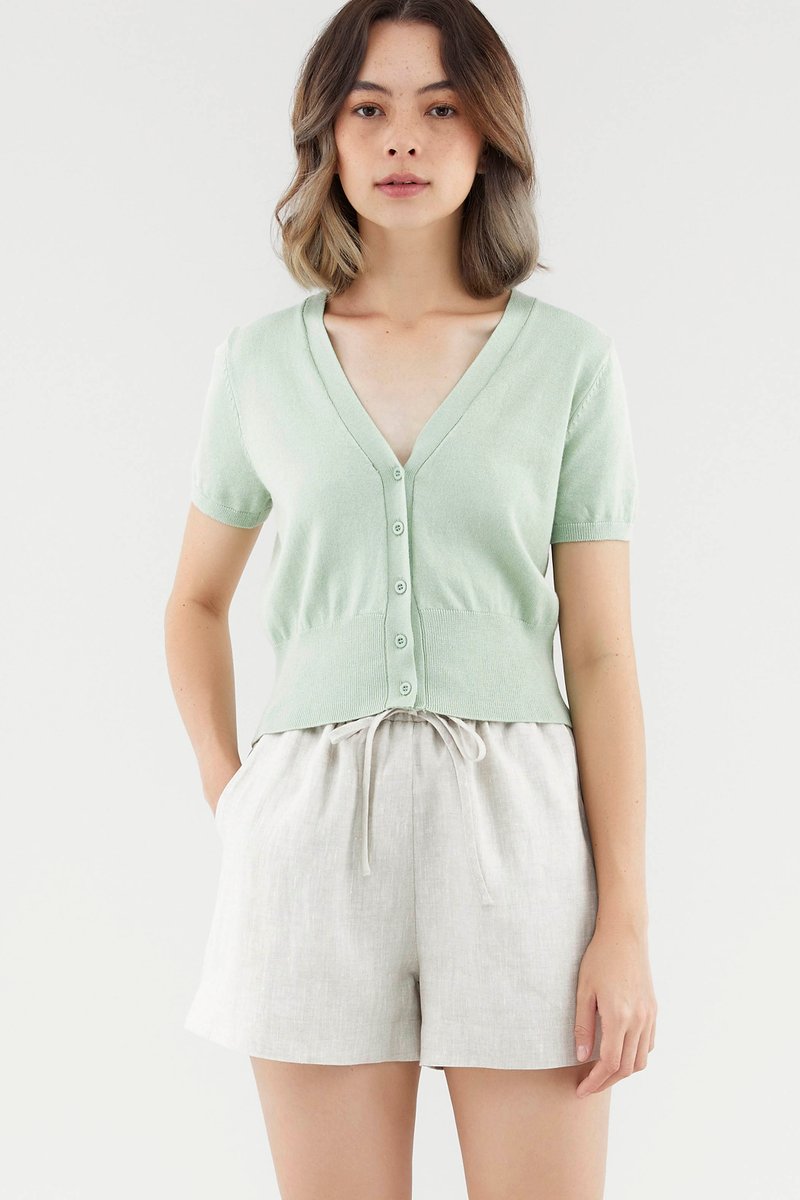 <p><span style="font-weight: 400;">Fabric Composition: 100% Viscose</span></p> <p><span style="font-weight: 400;">Lining: None</span></p> <p><span style="font-weight: 400;">Sheerness: Opaque</span></p> <p><span style="font-weight: 400;">Pockets: None</span></p> <p><span style="font-weight: 400;">Staple top and layering essential in one. Made from soft and stretchy knit fabric, this cardigan top features short sleeves, a deep V-neckline, a front button-down closure and a broad, ribbed hemline. Fits slim in a slightly cropped length. </span></p> <p><span style="font-weight: 400;">Care Instructions: Do not soak / Do not bleach / Handwash or Machine wash on gentle mode / Do not machine dry / Iron using low heat</span></p>