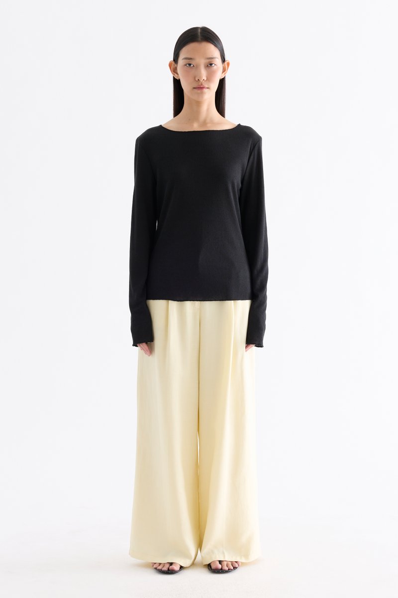 Sheer to impress. Made from soft and light fabric, this top features a wide neckline, long sleeves and a relaxed fit.