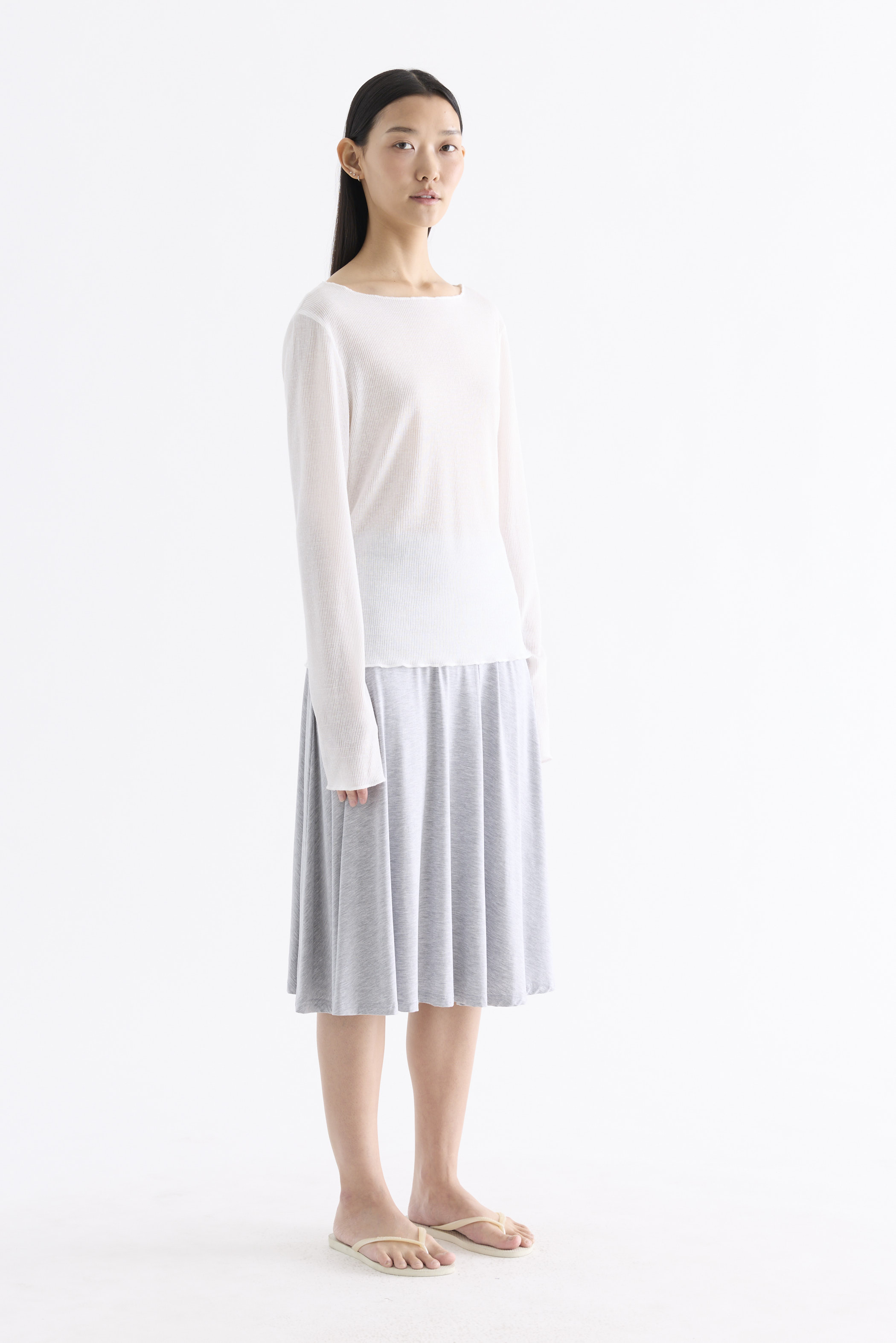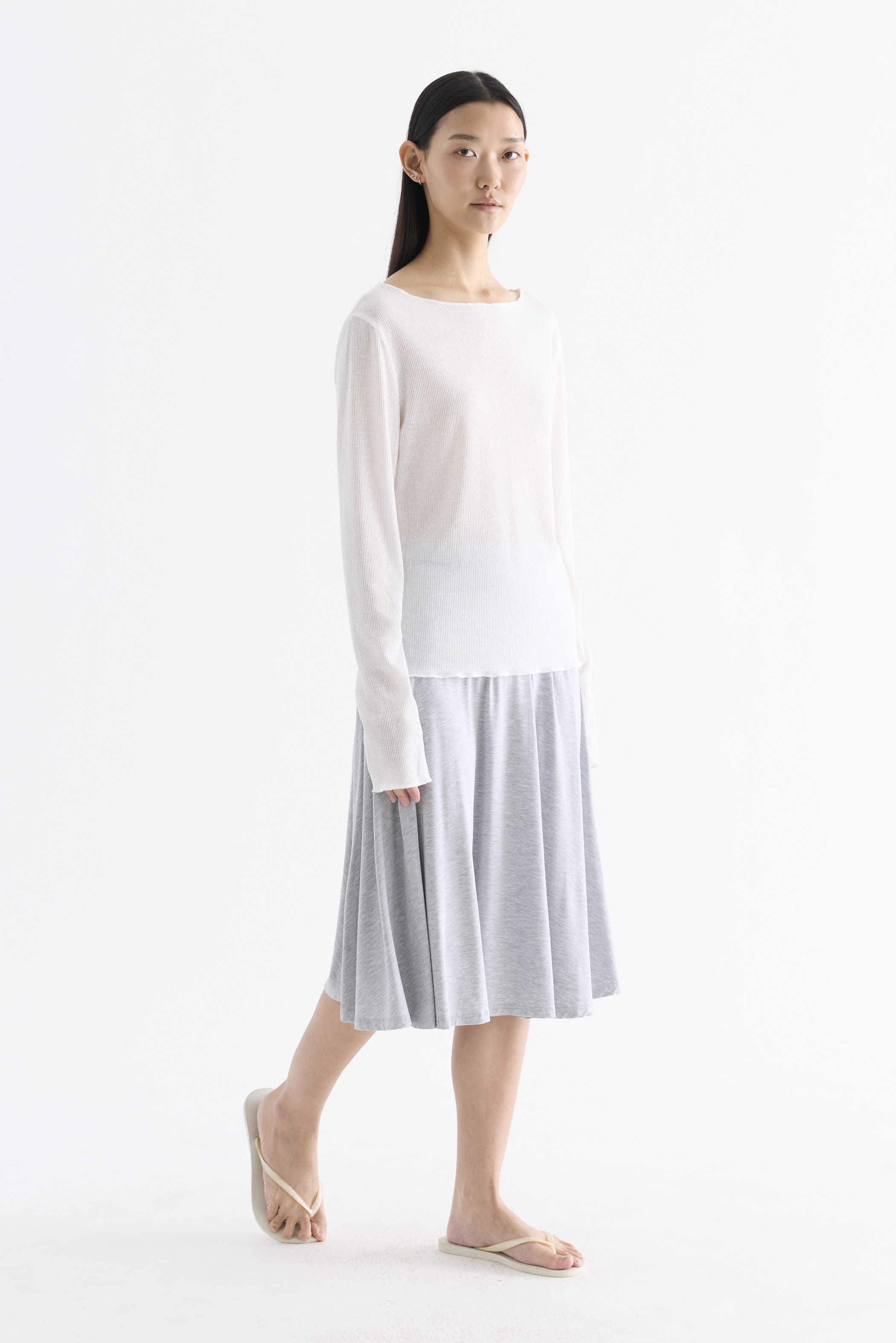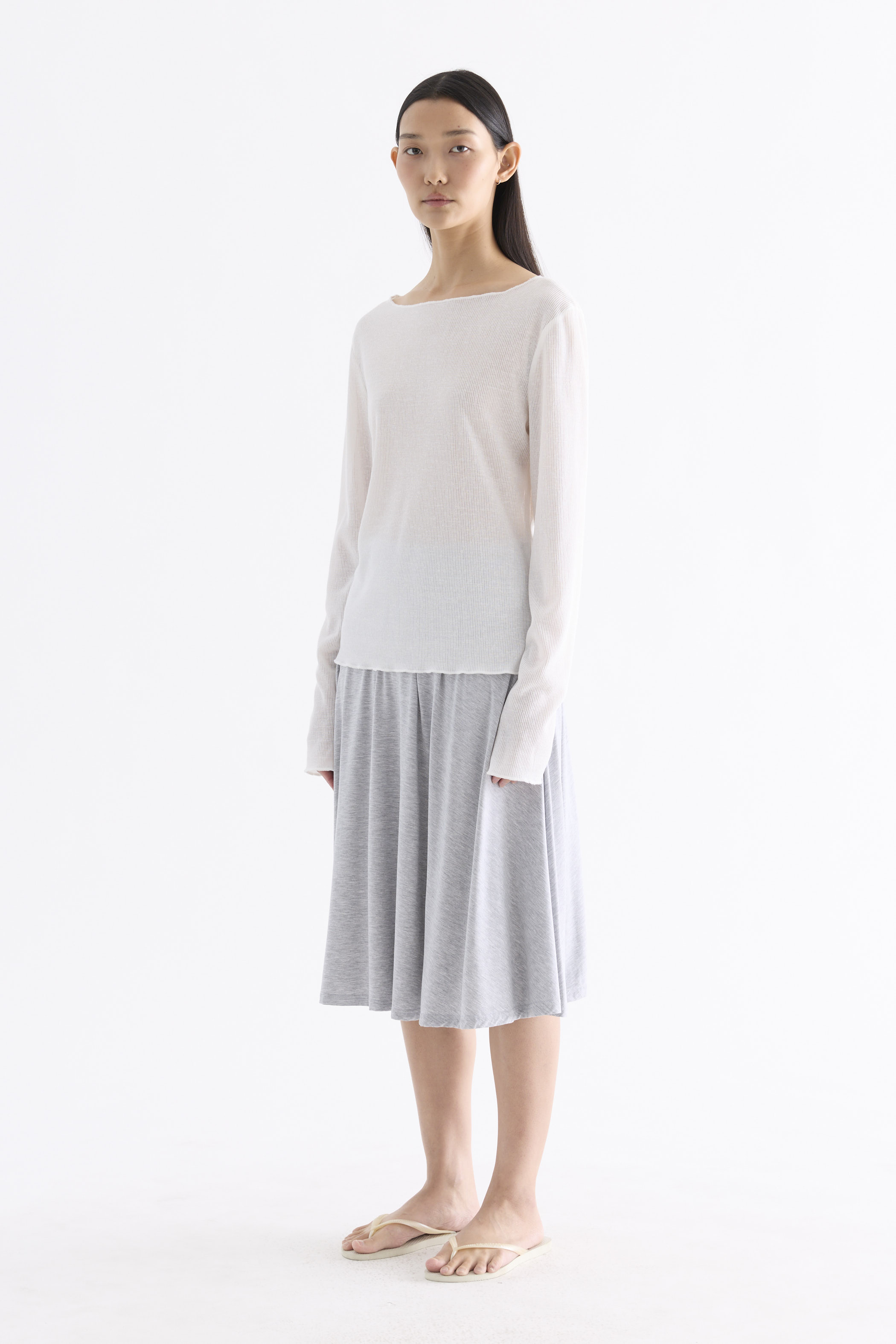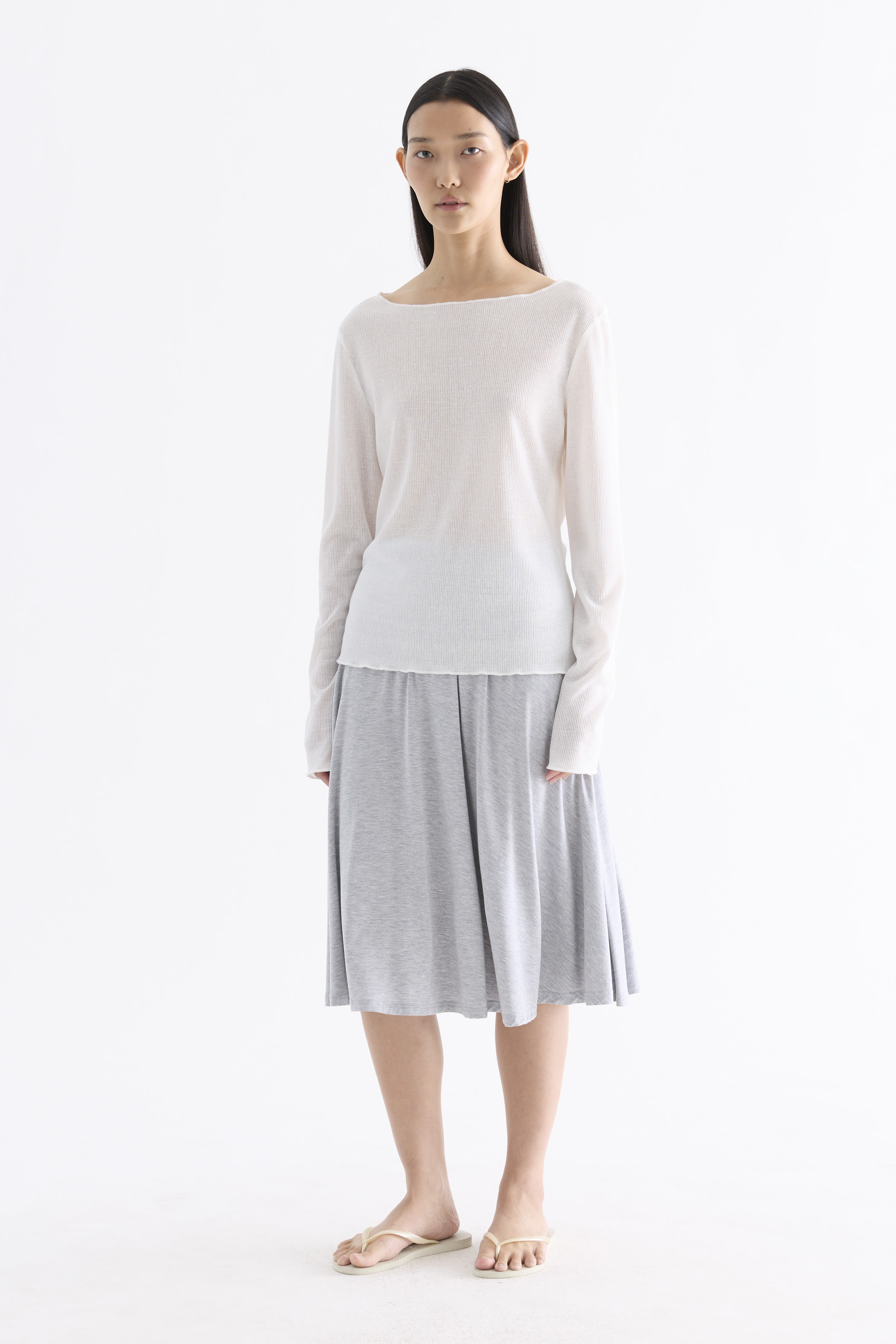 Sheer to impress. Made from soft and light fabric, this top features a wide neckline, long sleeves and a relaxed fit.