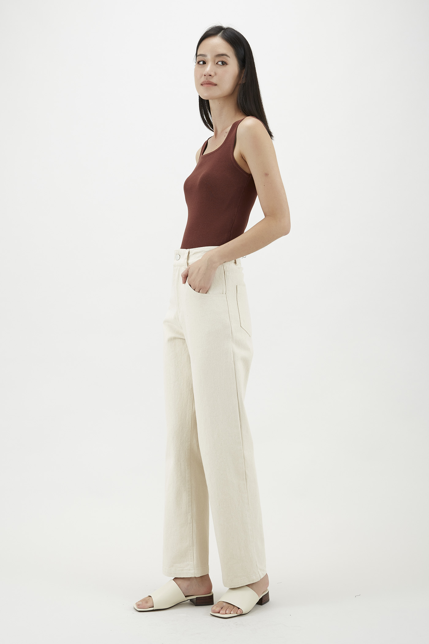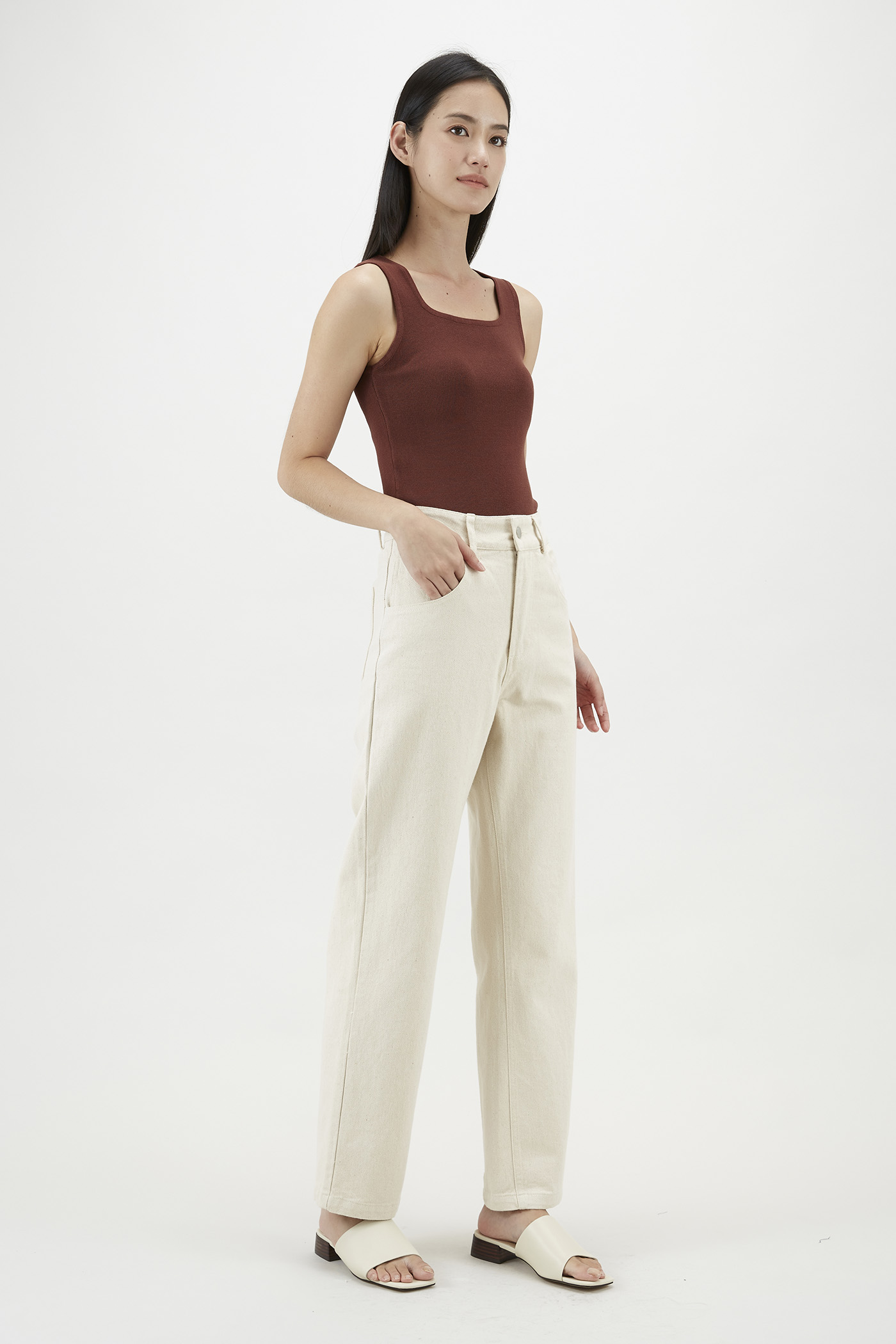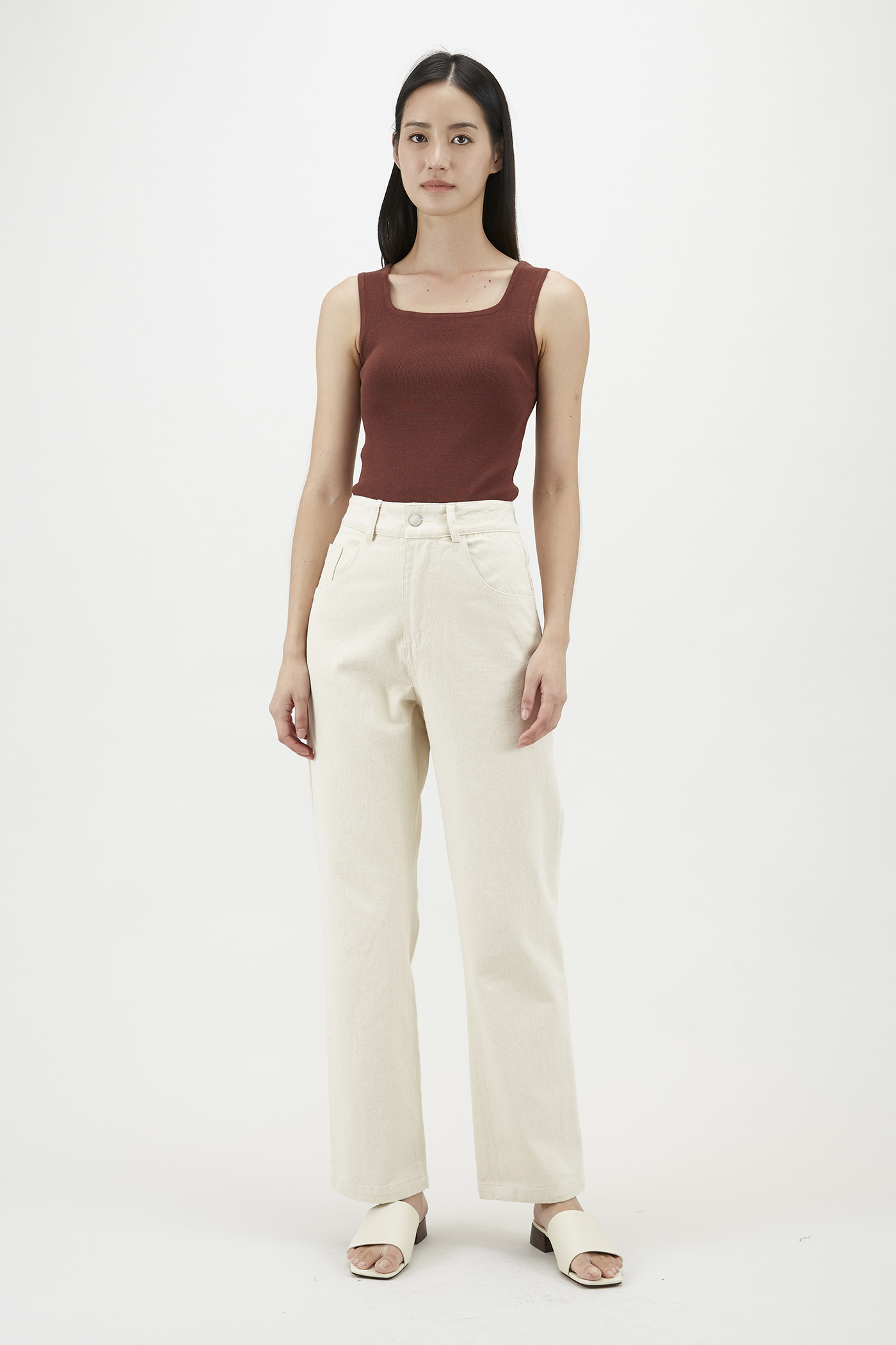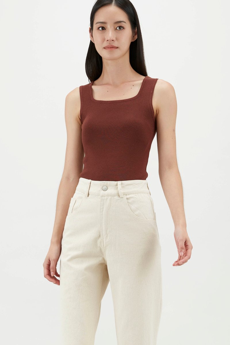 A not-too-hot, not-too-cold kind of top. Crafted from stretchy and non-sheer knit fabric, this sleeveless tank flaunts a flattering square neckline, thick shoulder straps, and a snug silhouette. Worn in a slim fit.