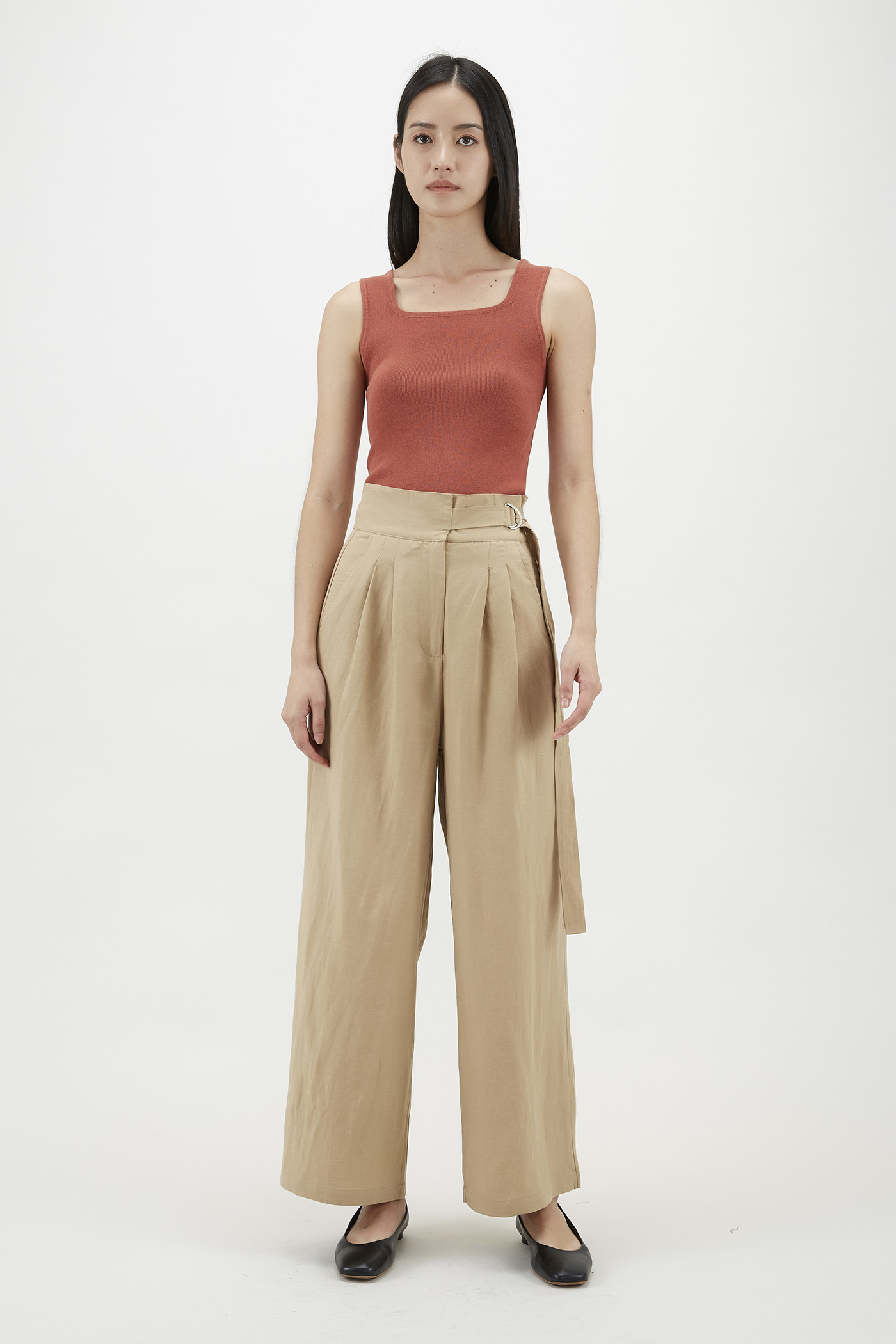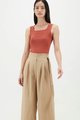 A not-too-hot, not-too-cold kind of top. Crafted from stretchy and non-sheer knit fabric, this sleeveless tank flaunts a flattering square neckline, thick shoulder straps, and a snug silhouette. Worn in a slim fit.