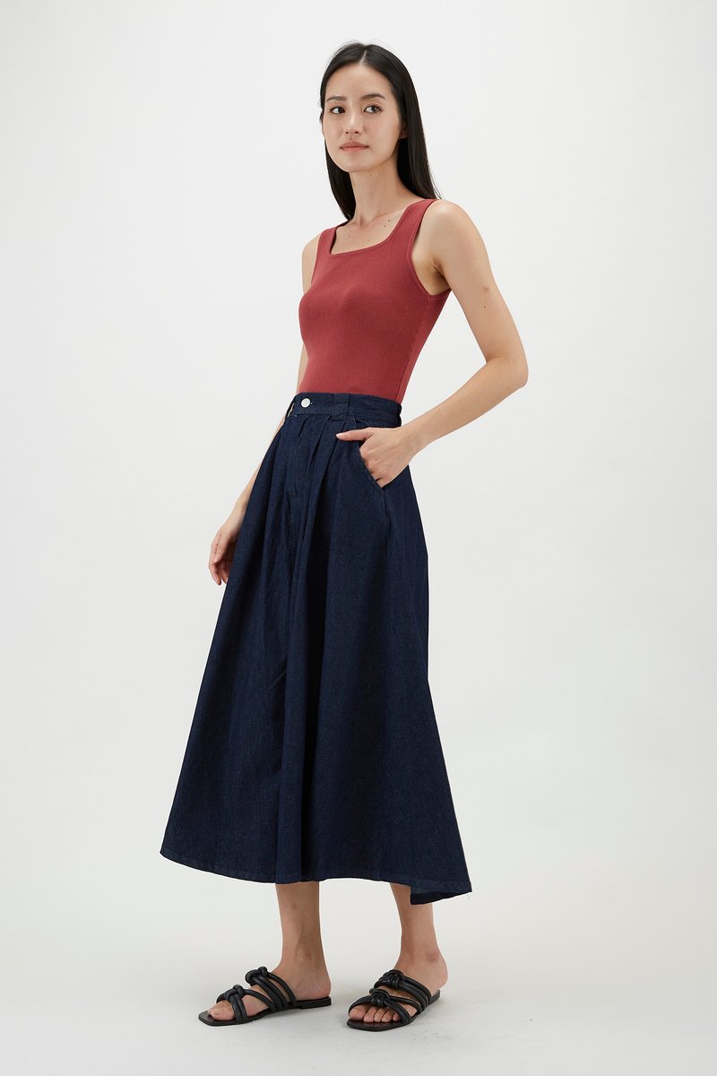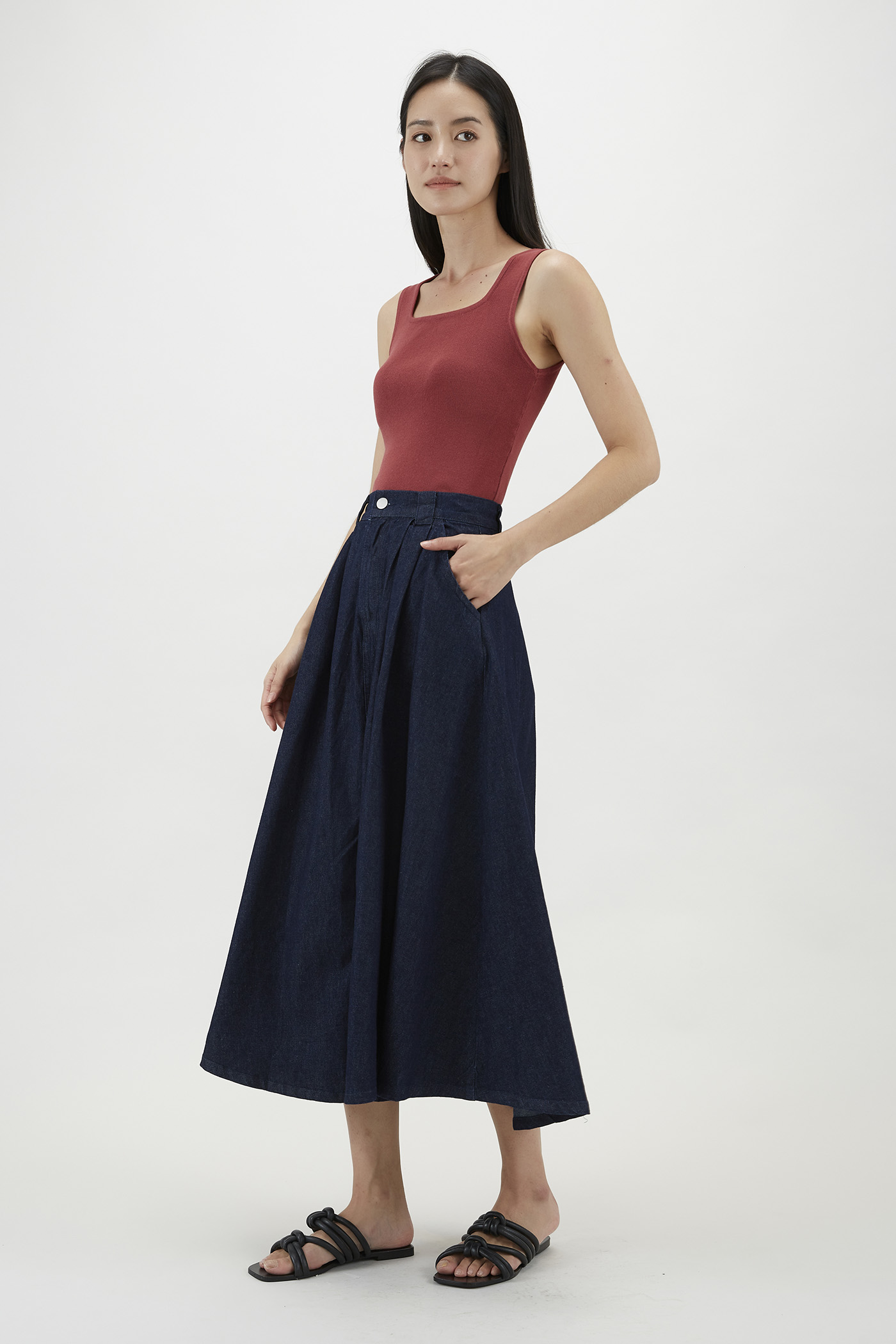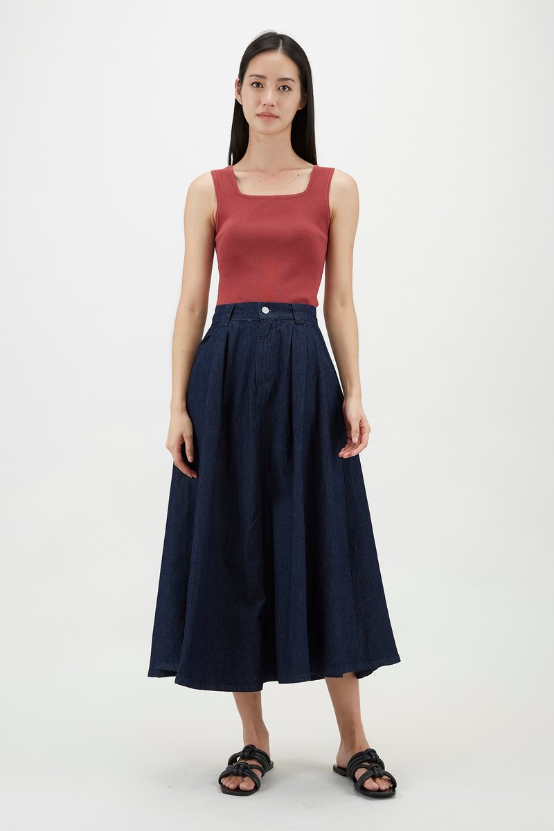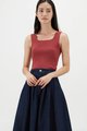 A not-too-hot, not-too-cold kind of top. Crafted from stretchy and non-sheer knit fabric, this sleeveless tank flaunts a flattering square neckline, thick shoulder straps, and a snug silhouette. Worn in a slim fit.
