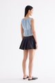 Details that count. Made from soft and non-stretch Tencel, this sleeveless top features a round drawstring neckline, a front slit with tie-strap closure, lace panels and pin-tuck pleats. Fits slim with a side zip closure.