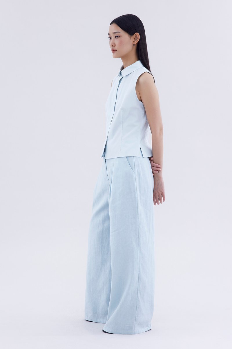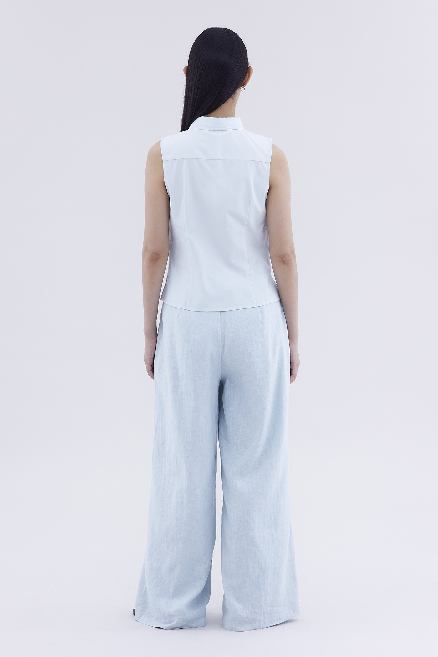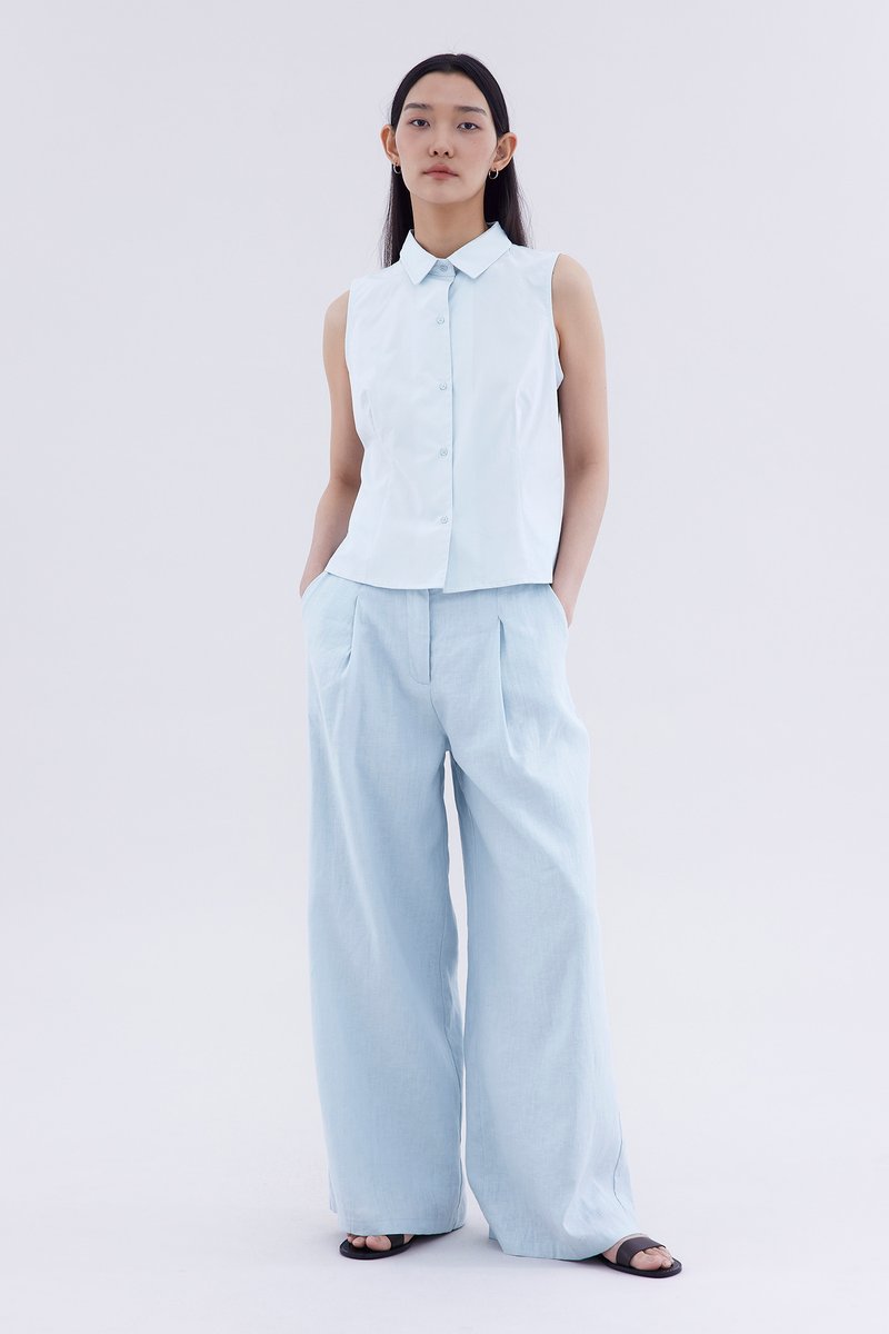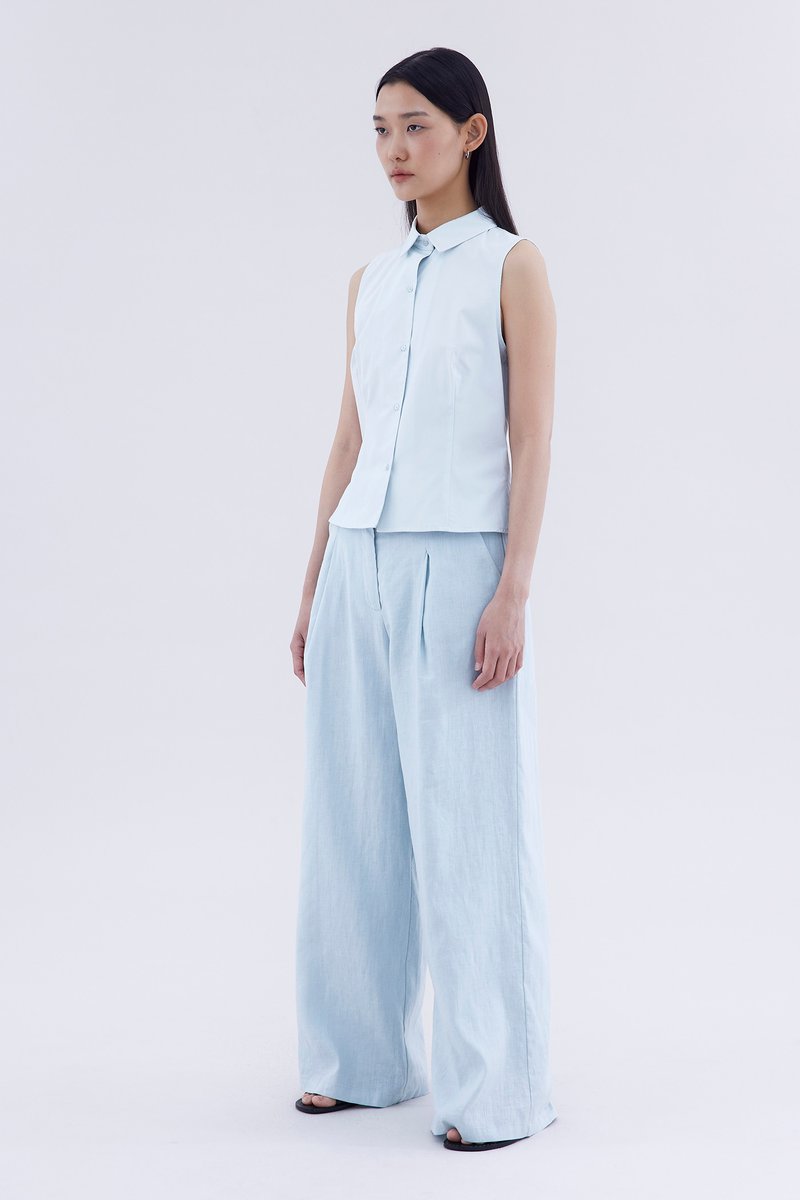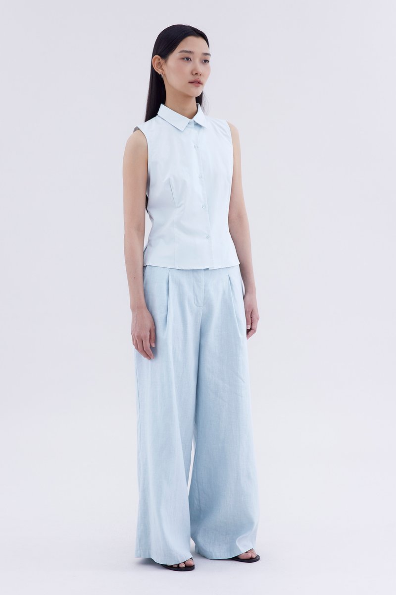 For summer and beyond. Made from crisp and softly structured fabric, this sleeveless top features a collared neckline, button-down front and side splits. Worn in a slim fit.