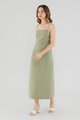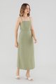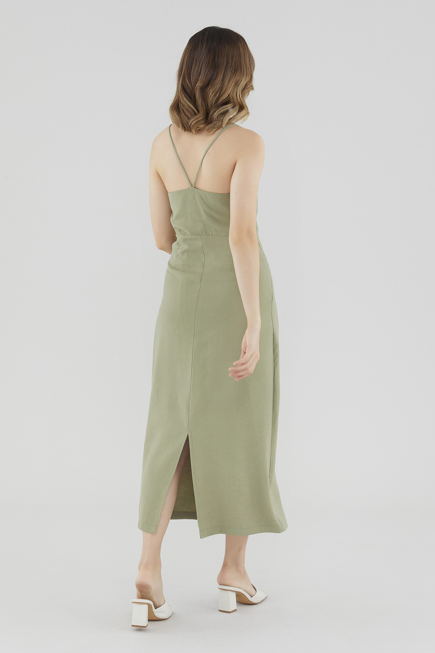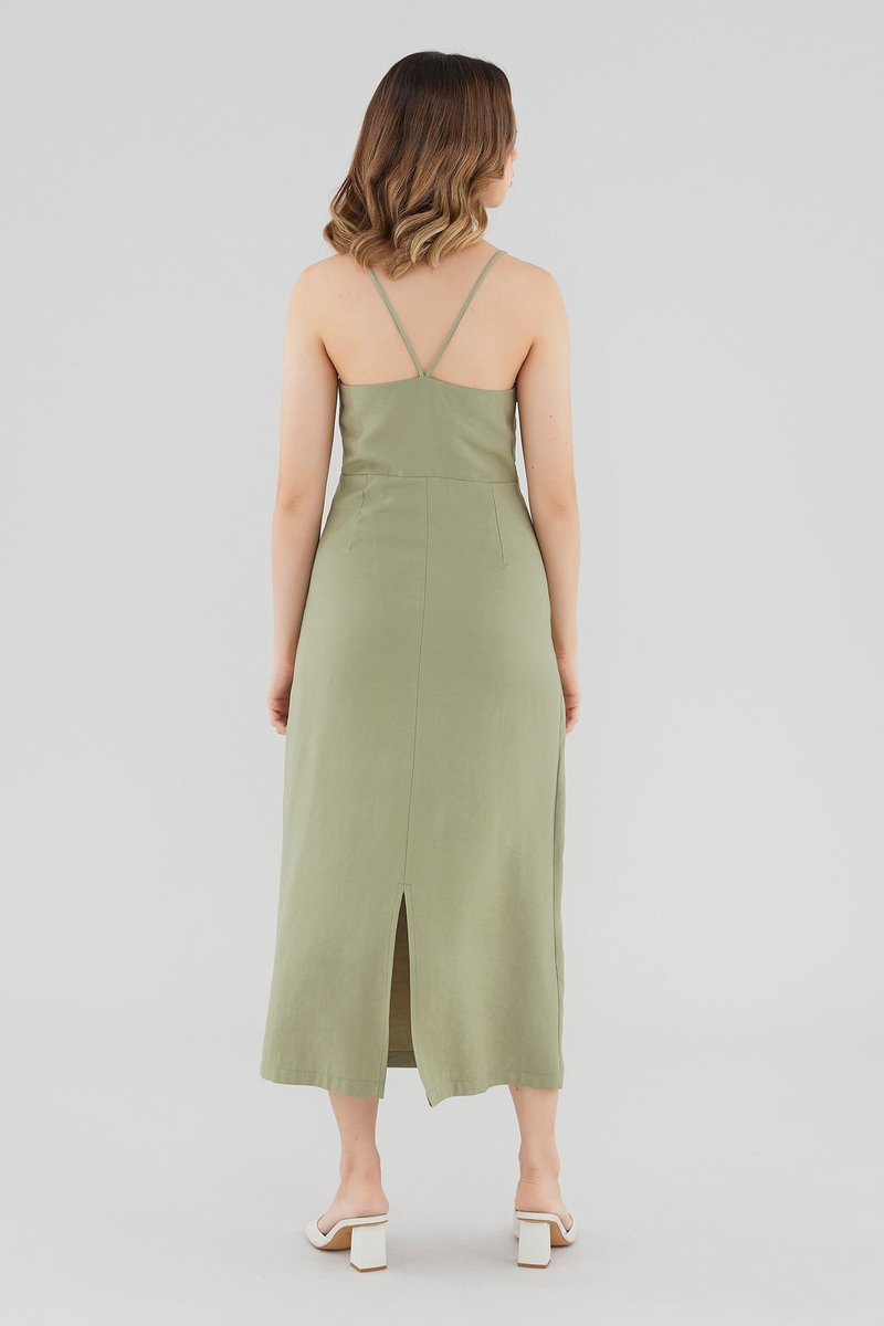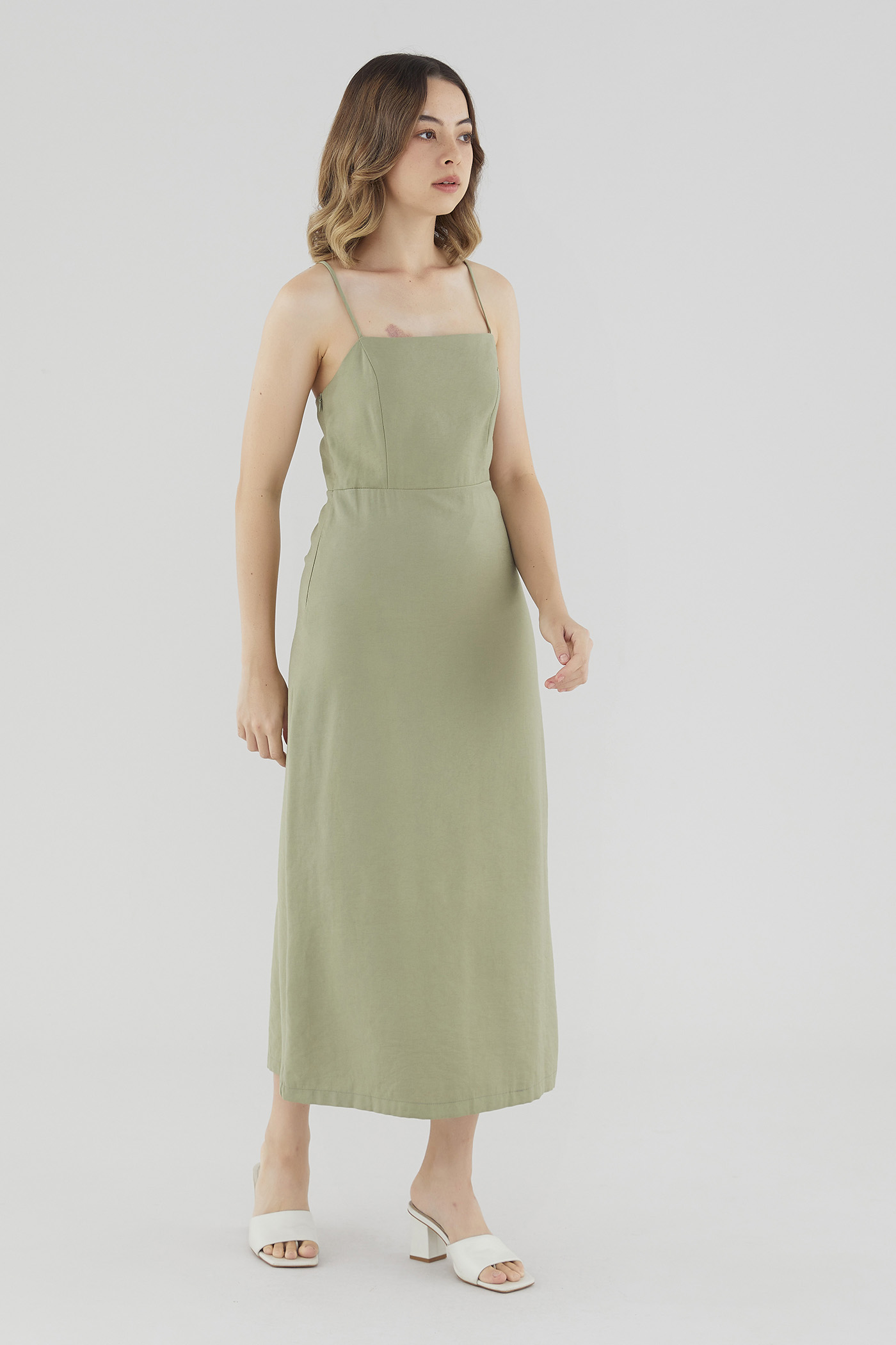 Your AM to PM frock. Cut from smooth and non-stretch fabric, this sleeveless midi dress features slim non-adjustable straps that meet at the back in a V design, along with a straight neckline, panelled bodice and back slit. Fits slim with a side zip closure.