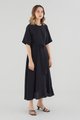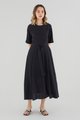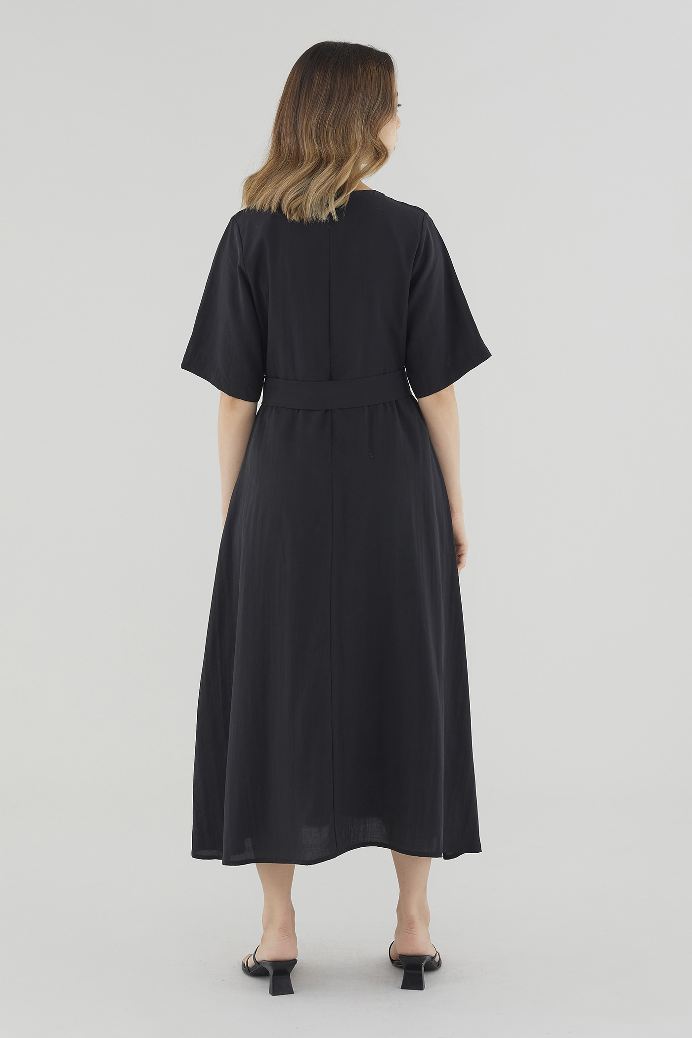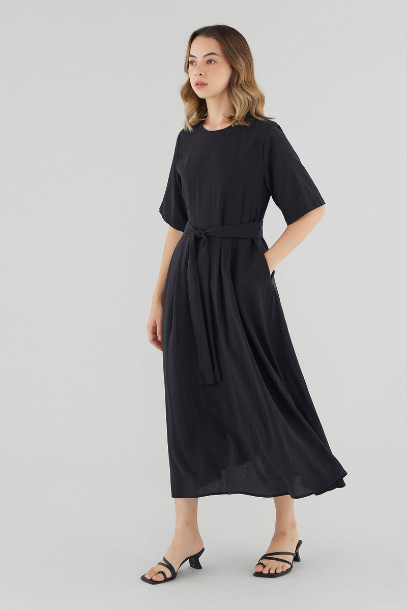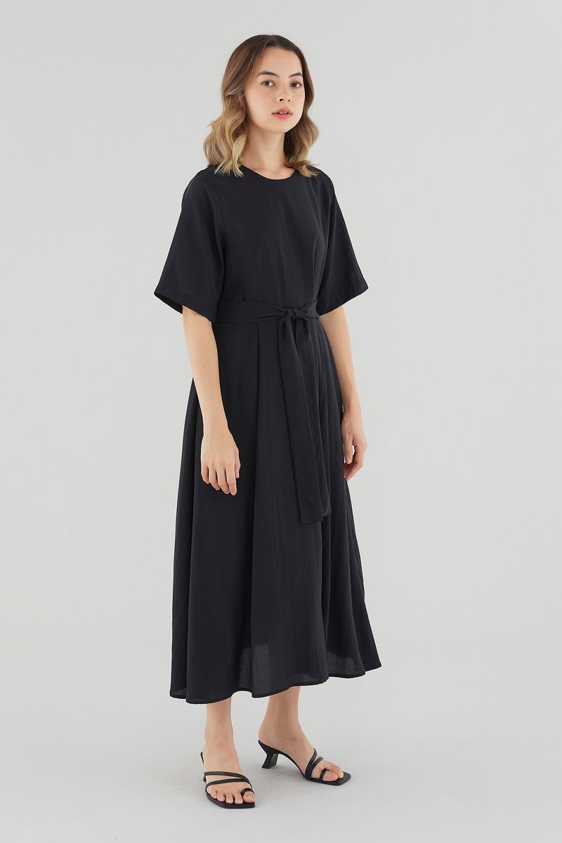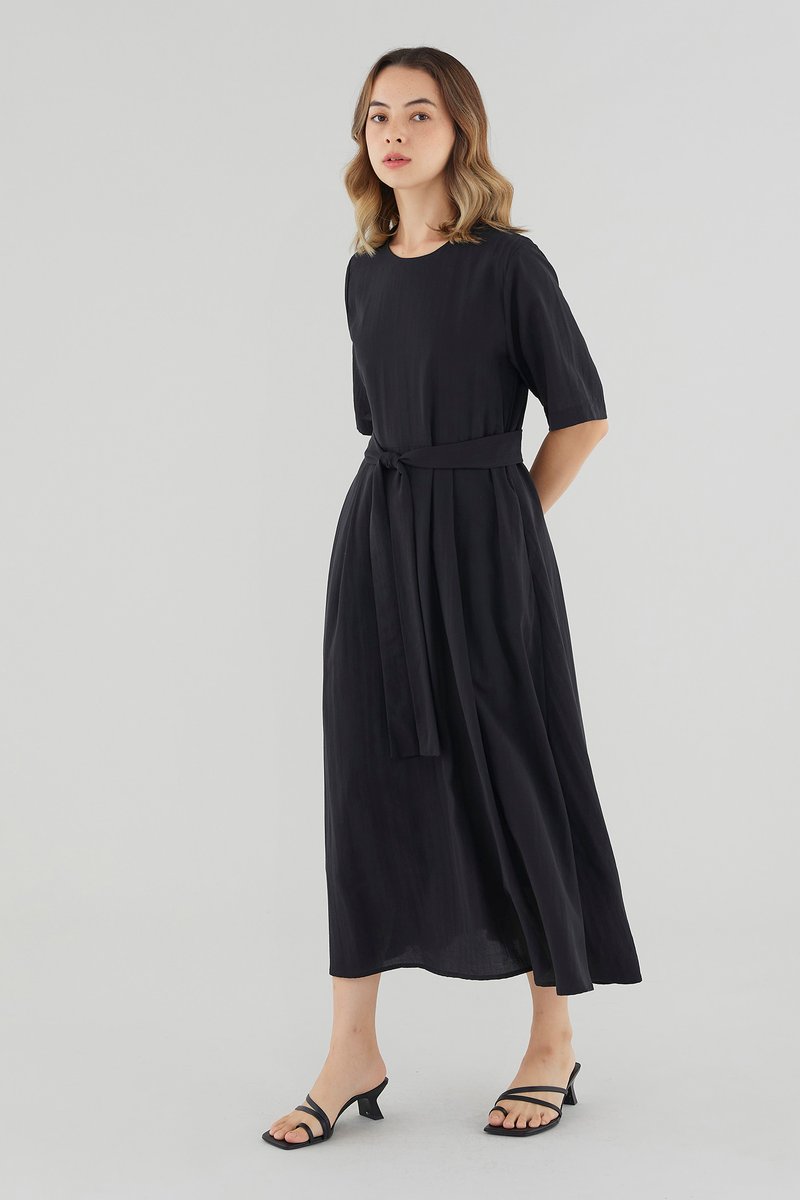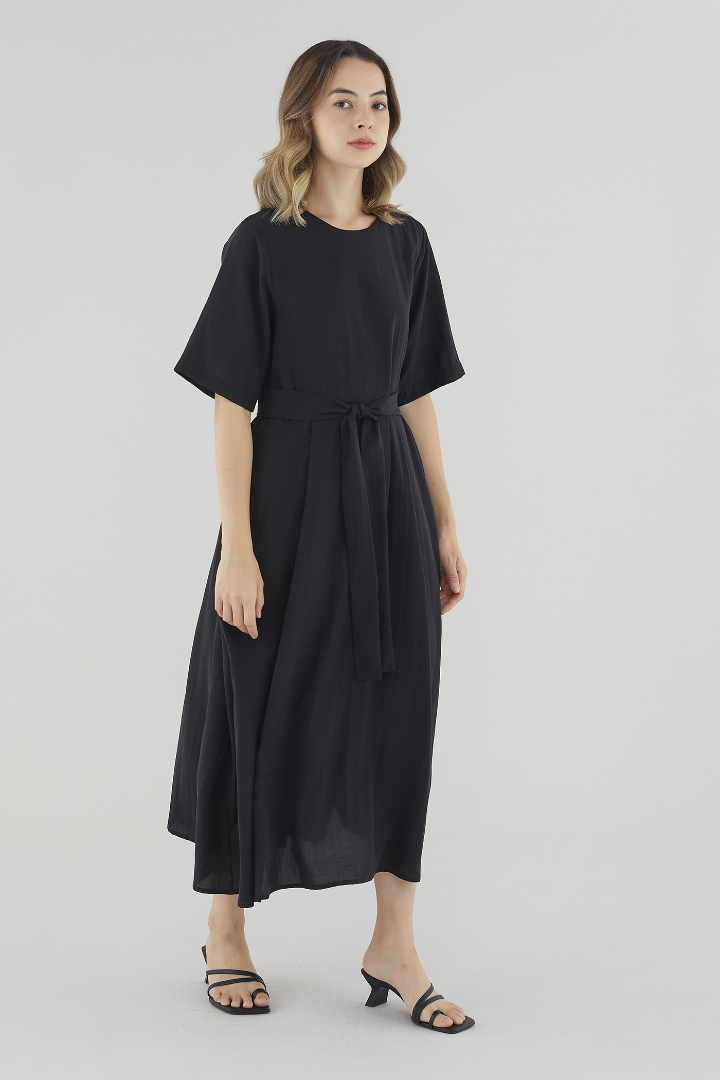 A day-to-day staple. Made from soft and non-stretch fabric, this maxi dress features half sleeves, a round neckline, a zip closure at the back and a detachable self-tie waist belt. Fits slimmer at the waist before flaring out in a pleated A-line skirt.