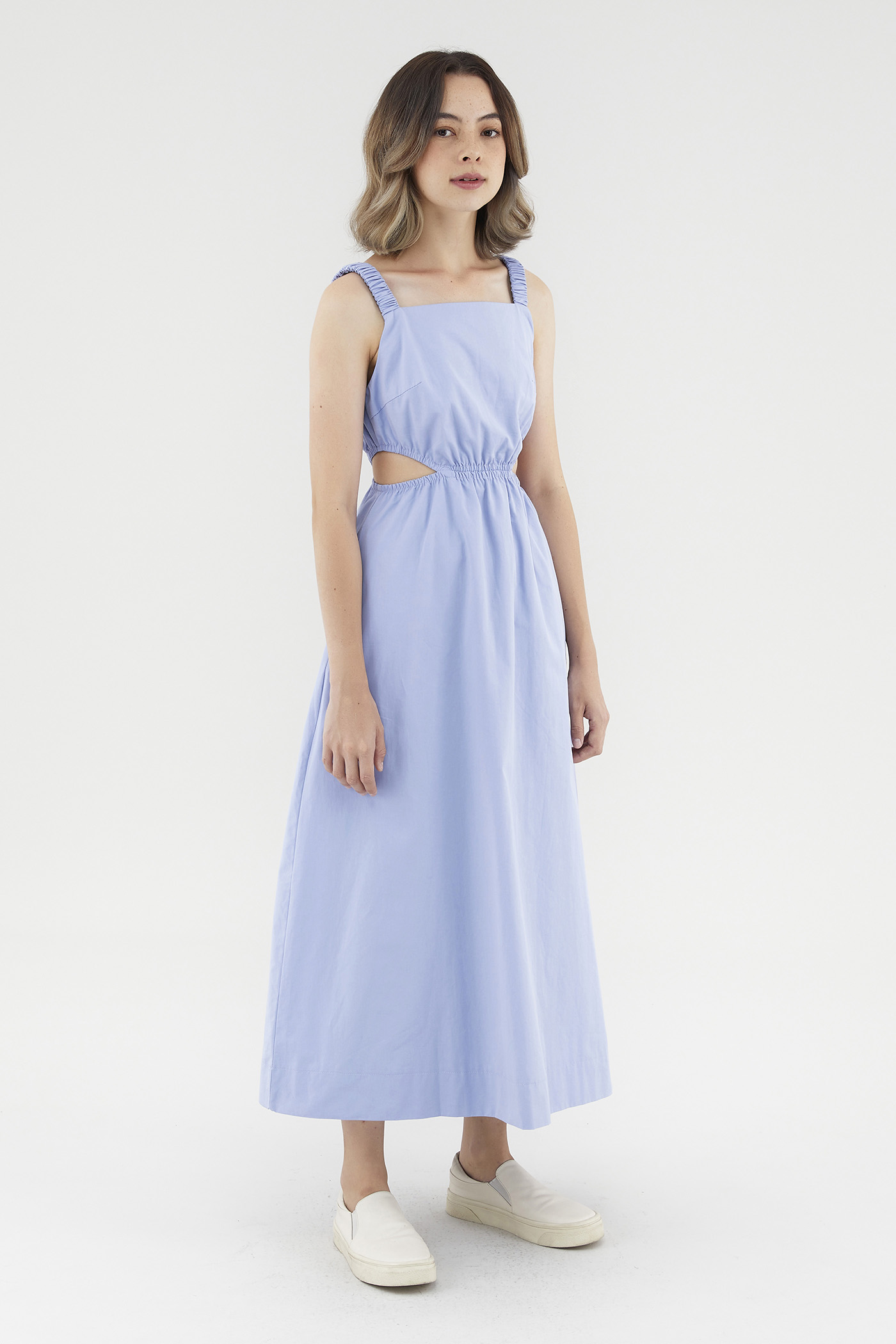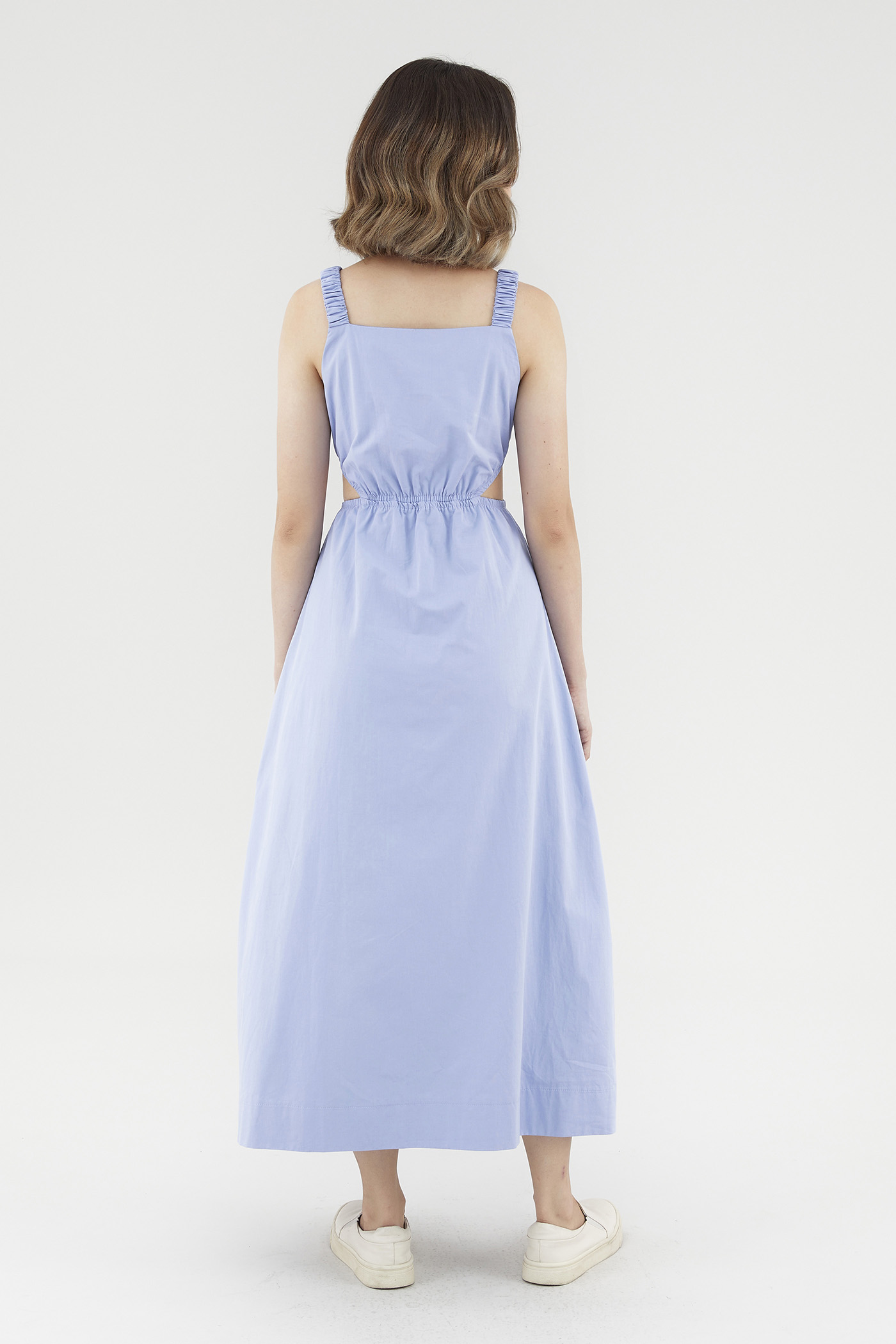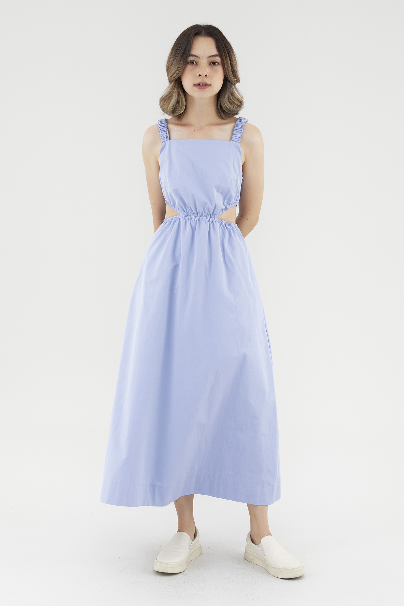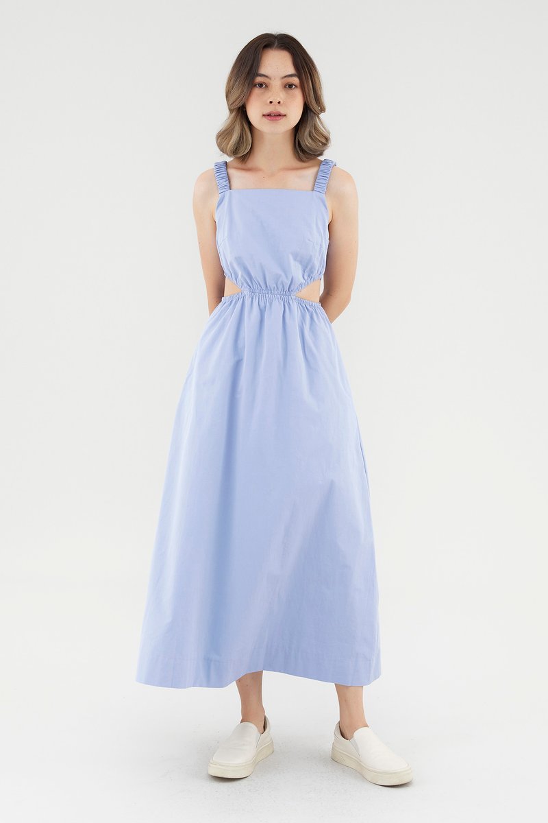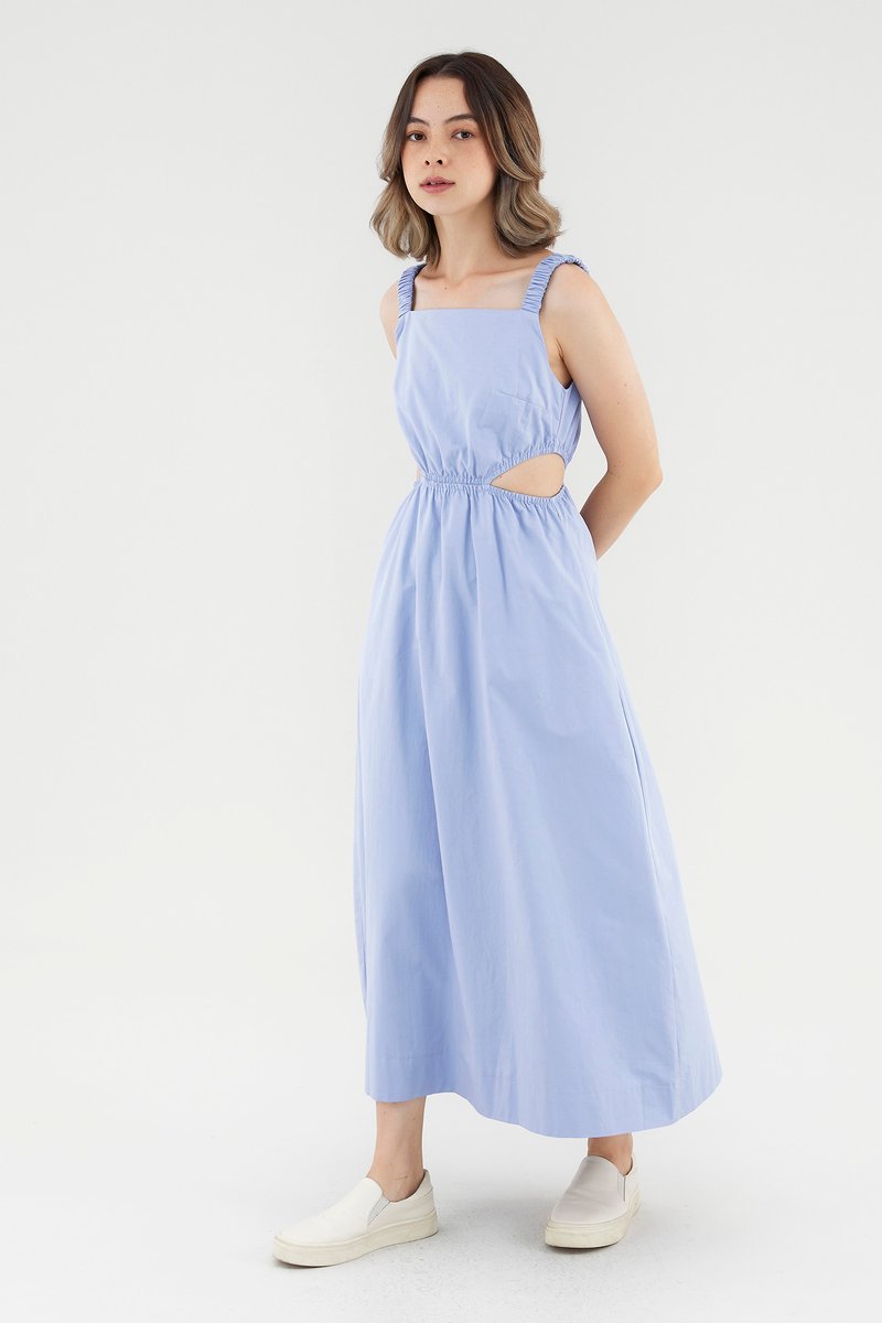 <p><span style="font-weight: 400;">Fabric Composition: 100% Cotton</span></p> <p><span style="font-weight: 400;">Lining: Full</span></p> <p><span style="font-weight: 400;">Sheerness: Opaque</span></p> <p><span style="font-weight: 400;">Pockets: Two pockets on the side</span></p> <p><span style="font-weight: 400;">Peek-a-boo. Cut from crisp and non-stretch cotton, this sleeveless dress features a square neckline, ruched, elasticated shoulder straps and an elasticated waist with side cut-outs. Fits slim in a maxi length. </span></p> <p><span style="font-weight: 400;">Care Instructions: Do not soak / Do not bleach / Handwash or Machine wash on gentle mode / Do not machine dry / Iron using low heat</span></p>