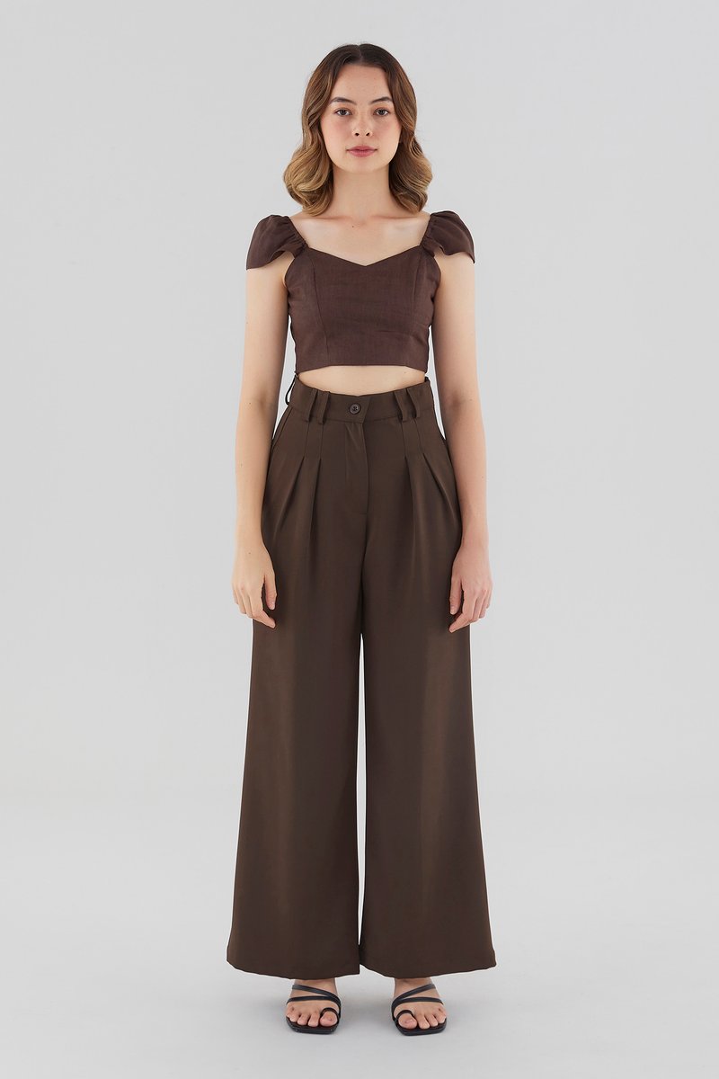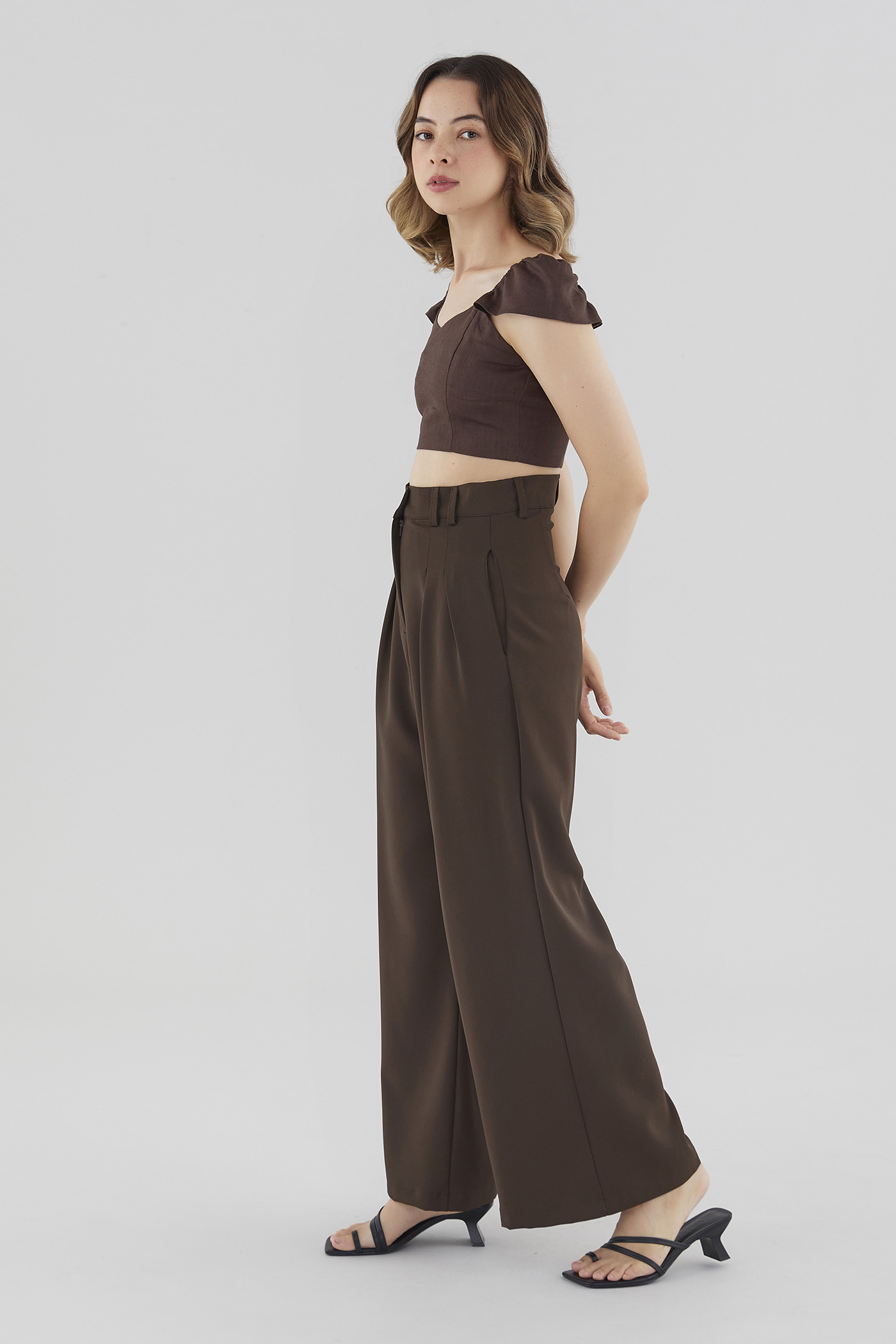 Make way for soft and slouchy suiting. Cut from smooth and flowy fabric, these pants feature a flattering high waist with belt loops, front pleats and wide, fluid legs. Fits relaxed with a zip and button closure on the front.