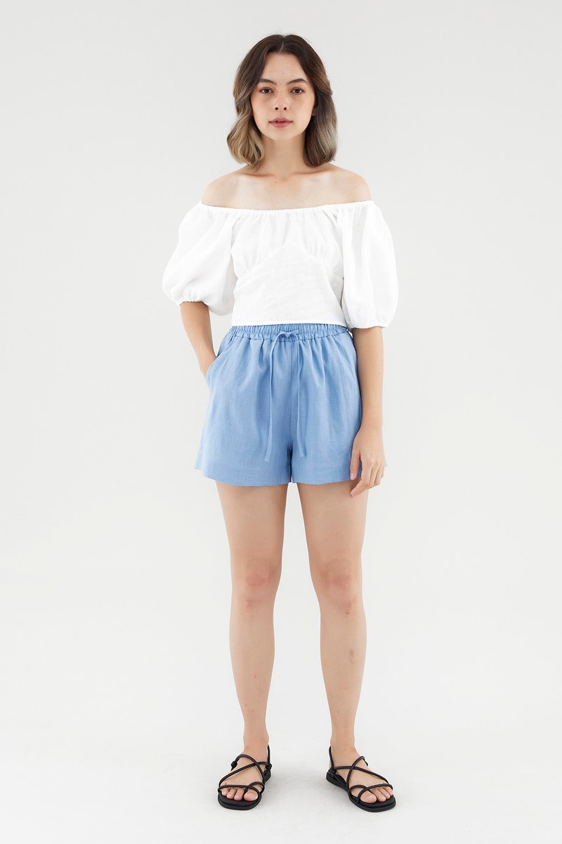 <p><span style="font-weight: 400;">Fabric Composition: 100% Linen</span></p> <p><span style="font-weight: 400;">Lining: Full</span></p> <p><span style="font-weight: 400;">Sheerness: None</span></p> <p><span style="font-weight: 400;">Pockets: Two pockets on the side</span></p> <p><span style="font-weight: 400;">For that cool and comfy look. Cut from airy and non-stretch linen, these shorts feature an elasticated drawstring waistband and slightly flared legs. Worn in a relaxed fit. </span></p> <p><span style="font-weight: 400;">Care Instructions: Do not soak / Do not bleach / Handwash or Machine wash on gentle mode / Do not machine dry / Iron using low heat</span></p>