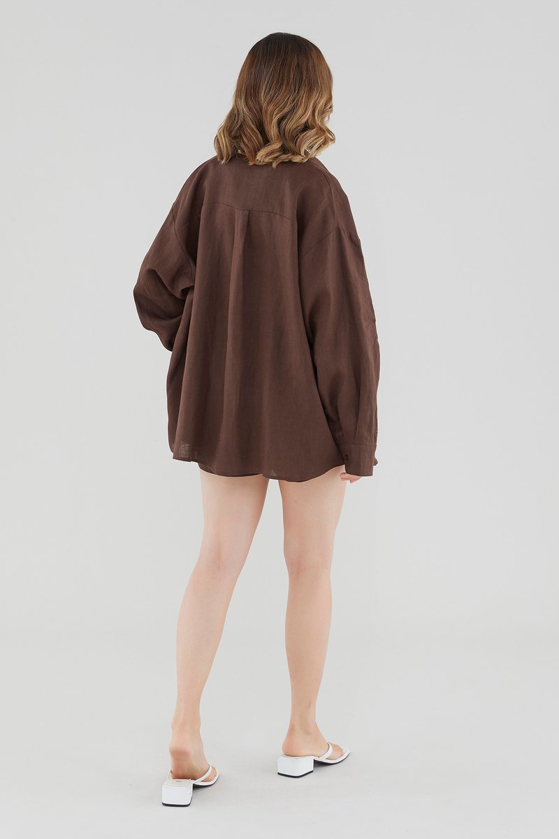 This piece is made from 100% linen, the unsung hero of hot days and one of the least environmentally damaging fabrics. Derived from the unfussy flax plant, not only does its cultivation consume significantly less water, pesticides and arable land — but linen’s excellent durability and biodegradable nature also means your clothes have a longer, more waste-free life cycle.
