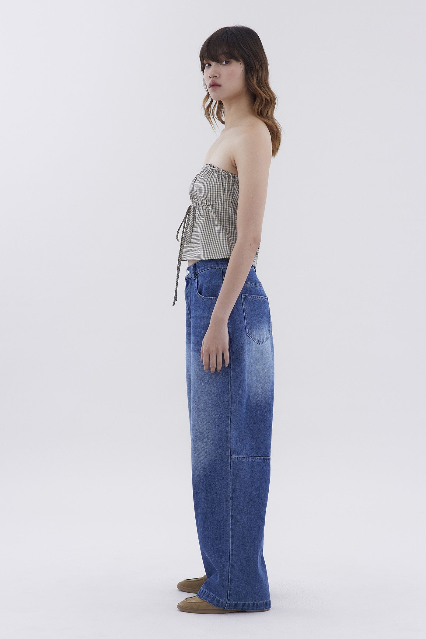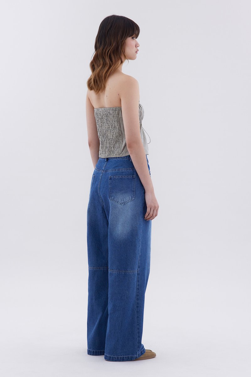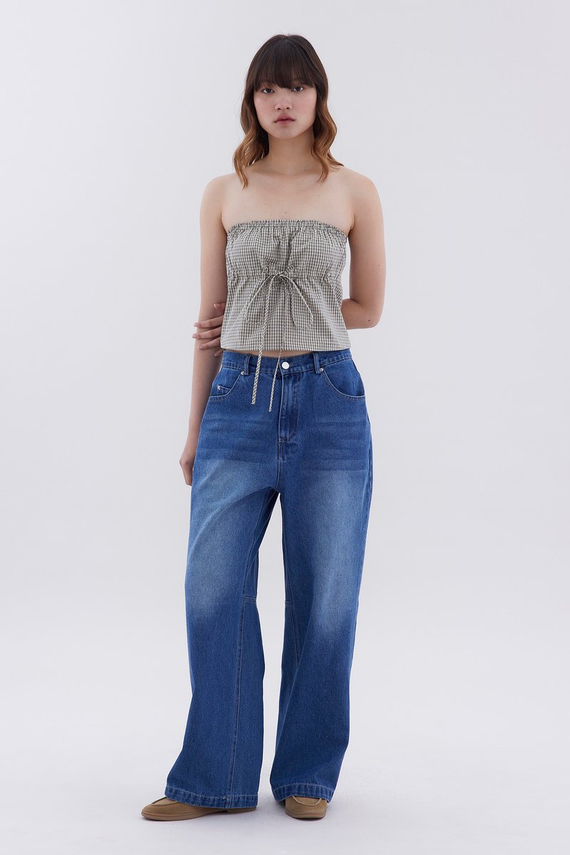 Essential. Made from softly structured and non-sheer cotton denim, these mid-waisted jeans feature relaxed straight legs, belt loops, and a front zip and button closure. Worn in a relaxed fit.