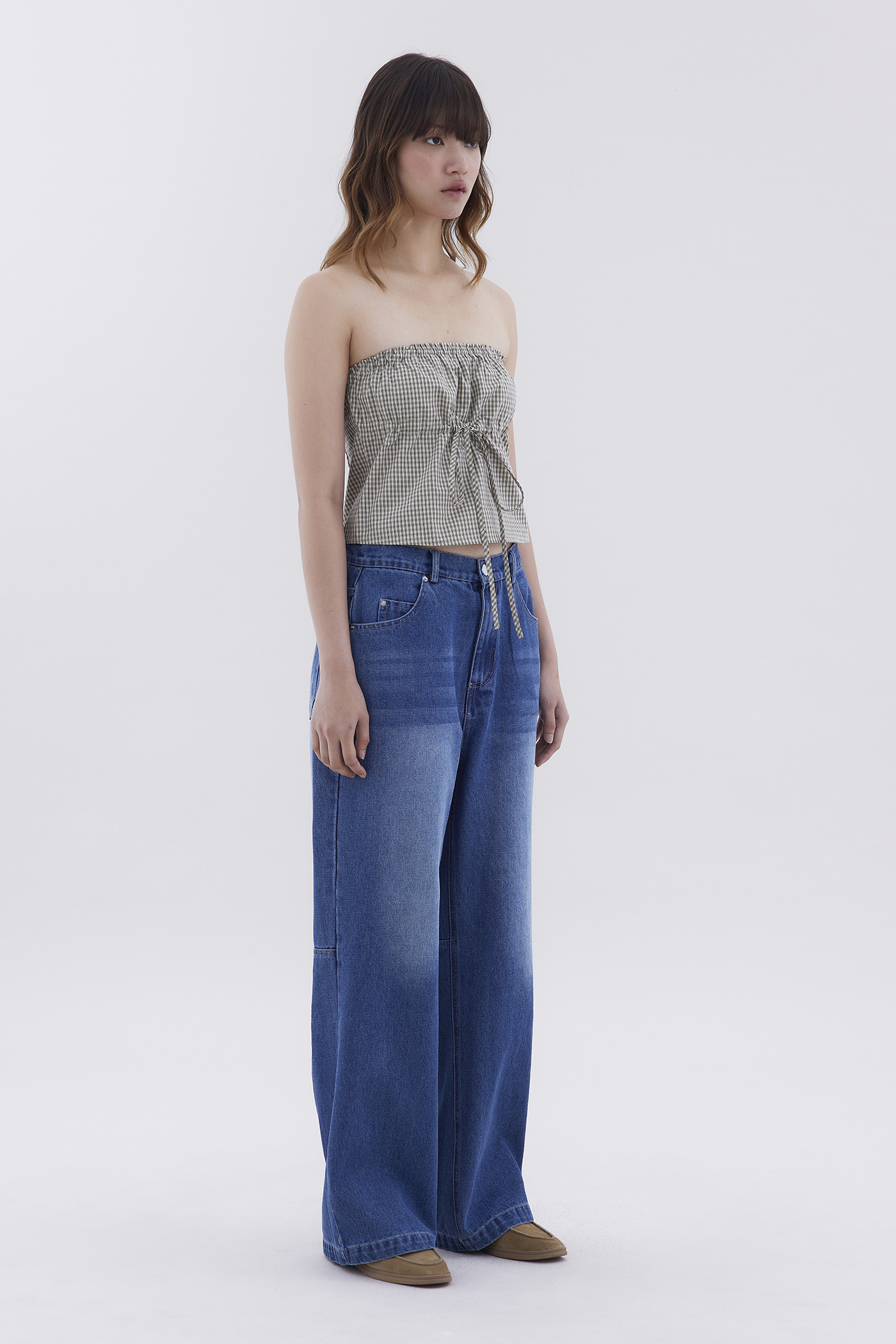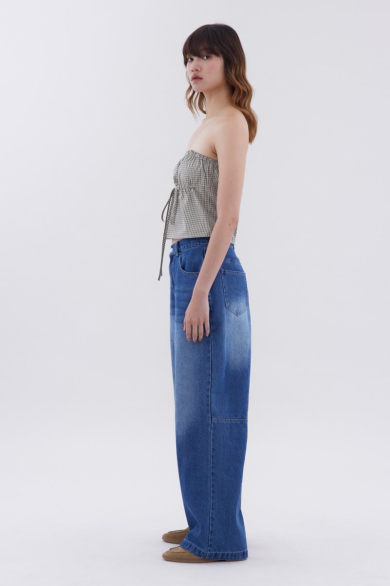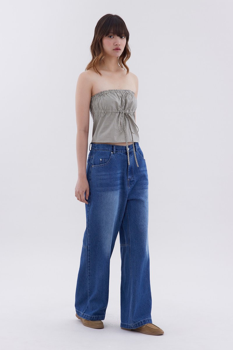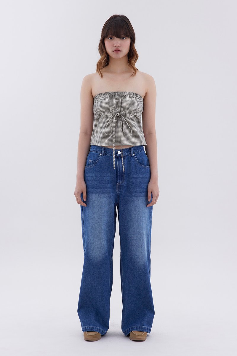 Essential. Made from softly structured and non-sheer cotton denim, these mid-waisted jeans feature relaxed straight legs, belt loops, and a front zip and button closure. Worn in a relaxed fit.