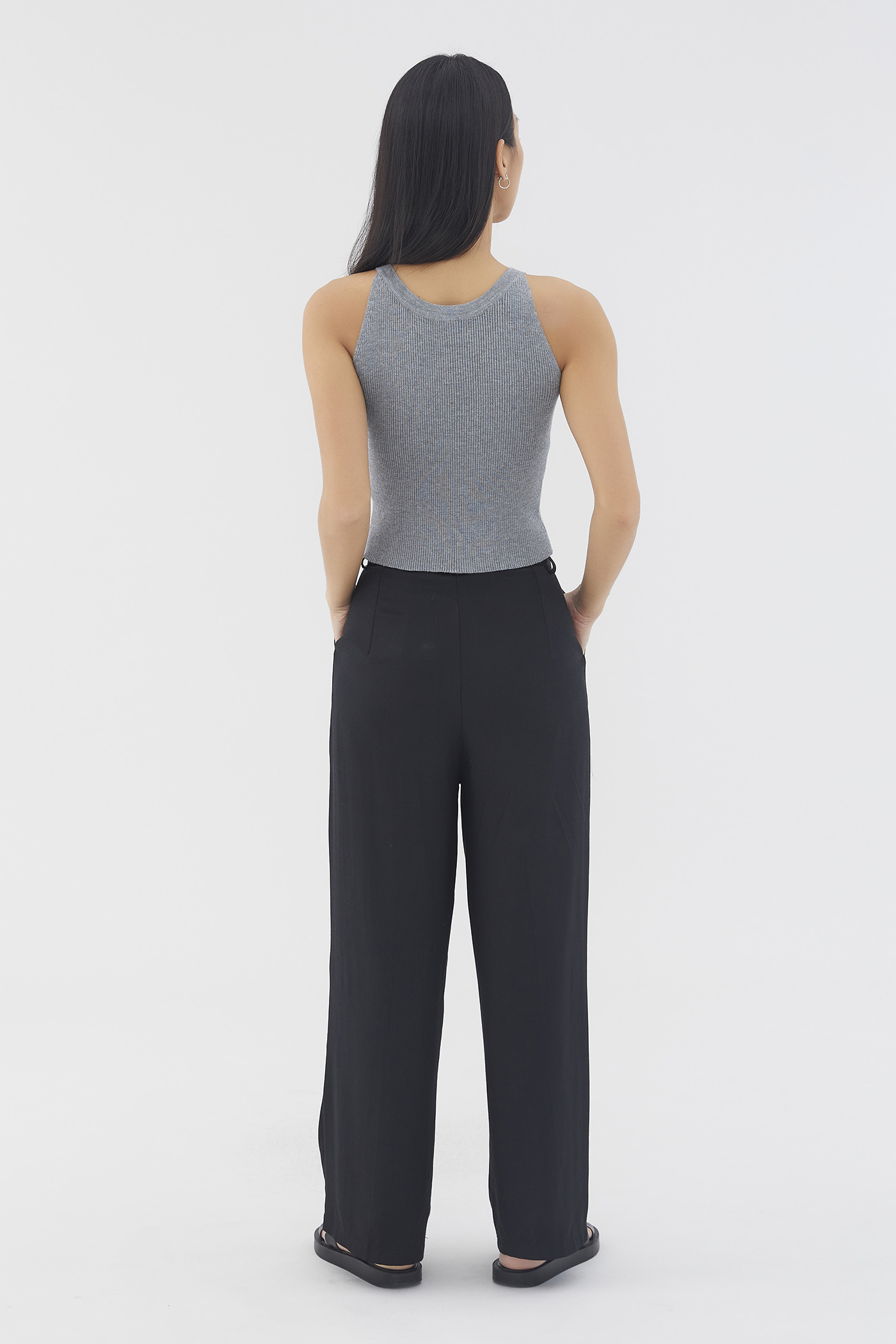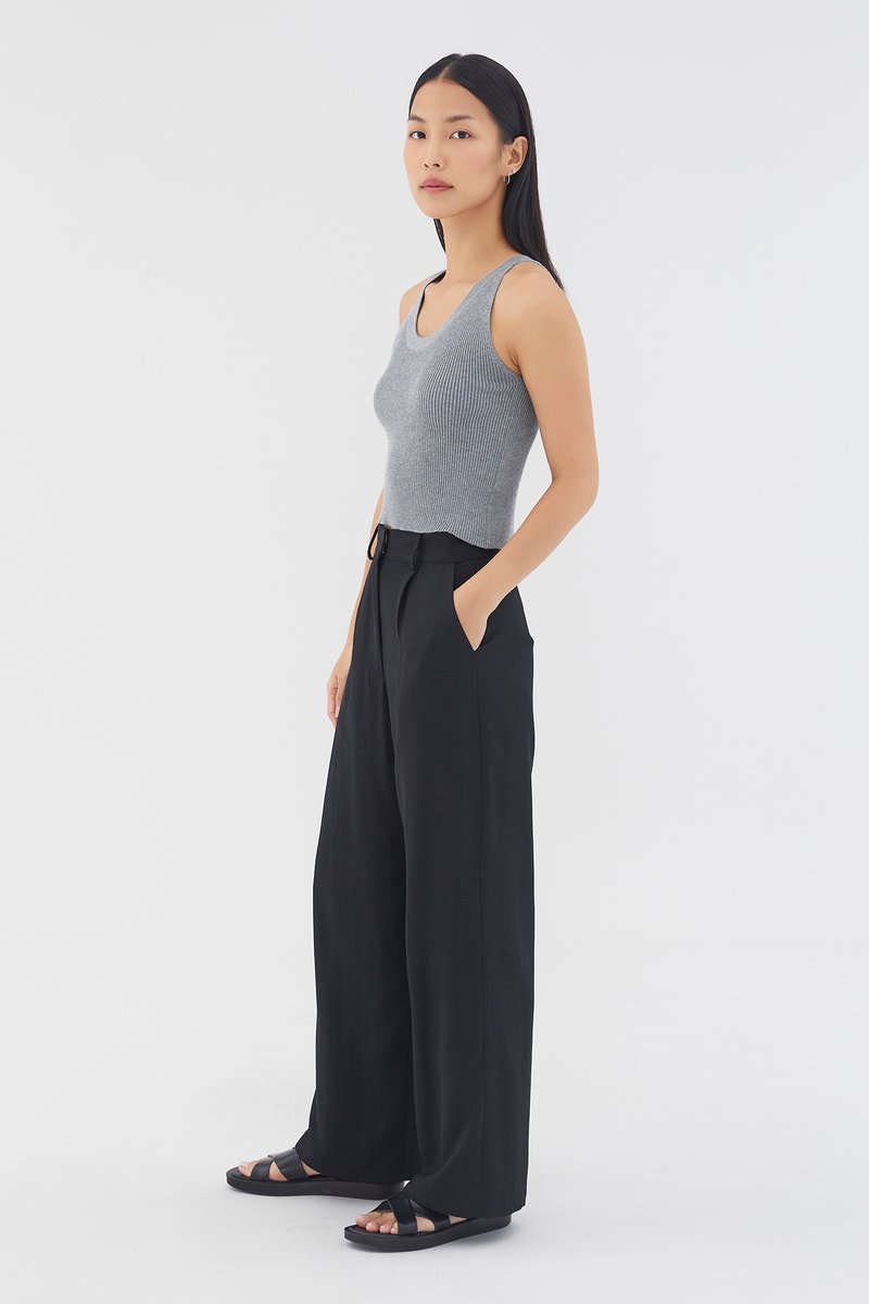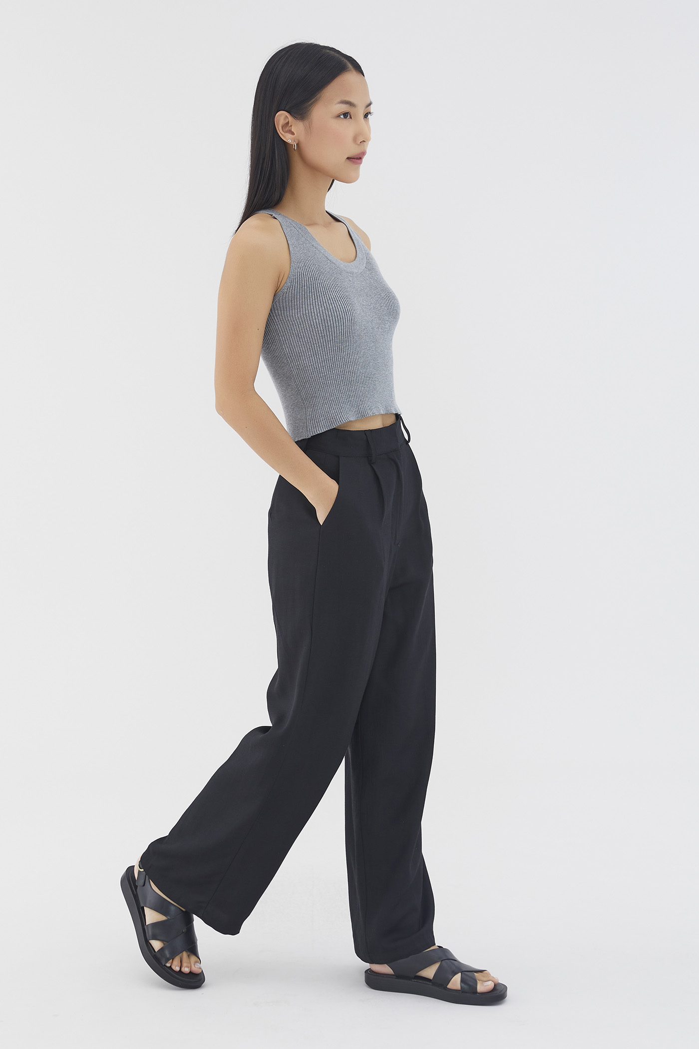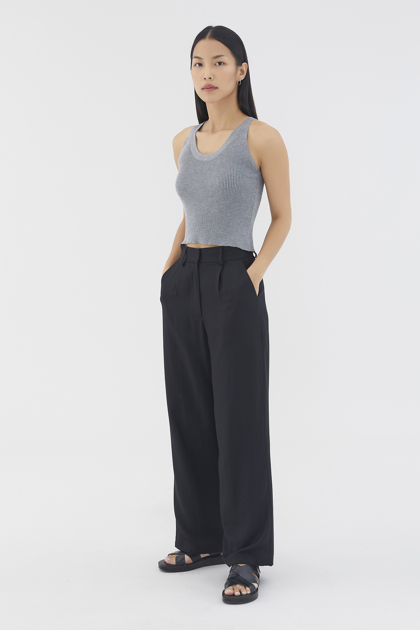 Form flattering. Made from soft and stretchy knit, this sleeveless top features a V-neckline, wide shoulder straps and a slightly cropped length. Worn in a slim fit.
