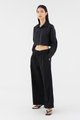 Cool cuts. Made from crisp and gently structured fabric, this shirt features long sleeves, a button-down opening and an oversized, boxy silhouette. Fits relaxed in a cropped length.