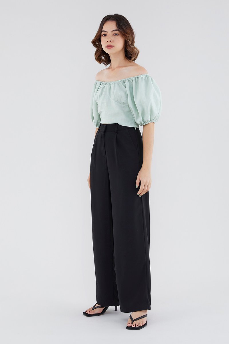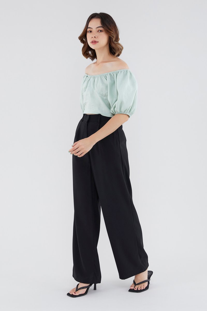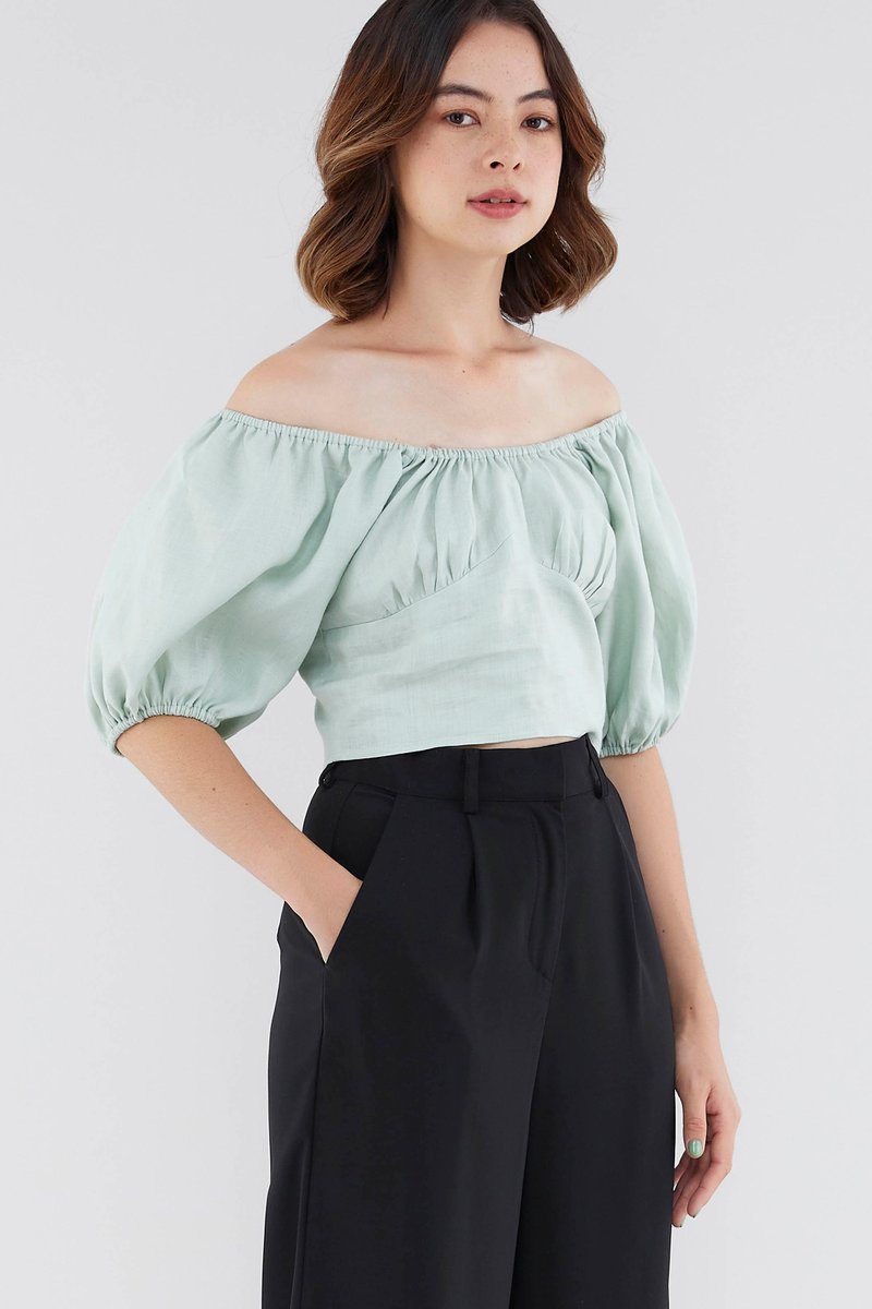 <p><span style="font-weight: 400;">Fabric Composition: 100% Linen</span></p> <p><span style="font-weight: 400;">Lining: None</span></p> <p><span style="font-weight: 400;">Sheerness: Lighter colour options may be slightly sheer. Nude undergarments are recommended. </span></p> <p><span style="font-weight: 400;">Pockets: None</span></p> <p><span style="font-weight: 400;">Ready for warmer days. Cut from airy and non-stretch linen, this blouse features puffed half sleeves, an elasticated neckline that may be worn on or off the shoulder and a panelled bodice for extra polish. Fits relaxed in a cropped length, with a zip closure on the side. </span></p> <p><span style="font-weight: 400;">Care Instructions: Do not soak / Do not bleach / Handwash or Machine wash on gentle mode / Do not machine dry / Iron using low heat</span></p> <p><i><span style="font-weight: 400;">This piece is made from 100% linen, the unsung hero of hot days and one of the least environmentally damaging fabrics. Derived from the unfussy flax plant, not only does its cultivation consume significantly less water, pesticides and arable land — but linen’s excellent durability and biodegradable nature also means your clothes have a longer, more waste-free life cycle.</span></i></p>