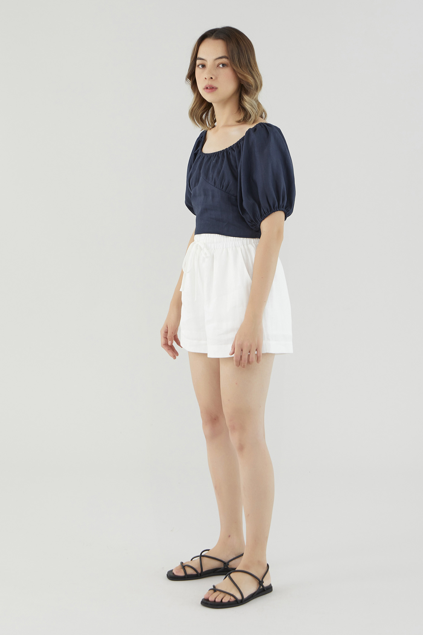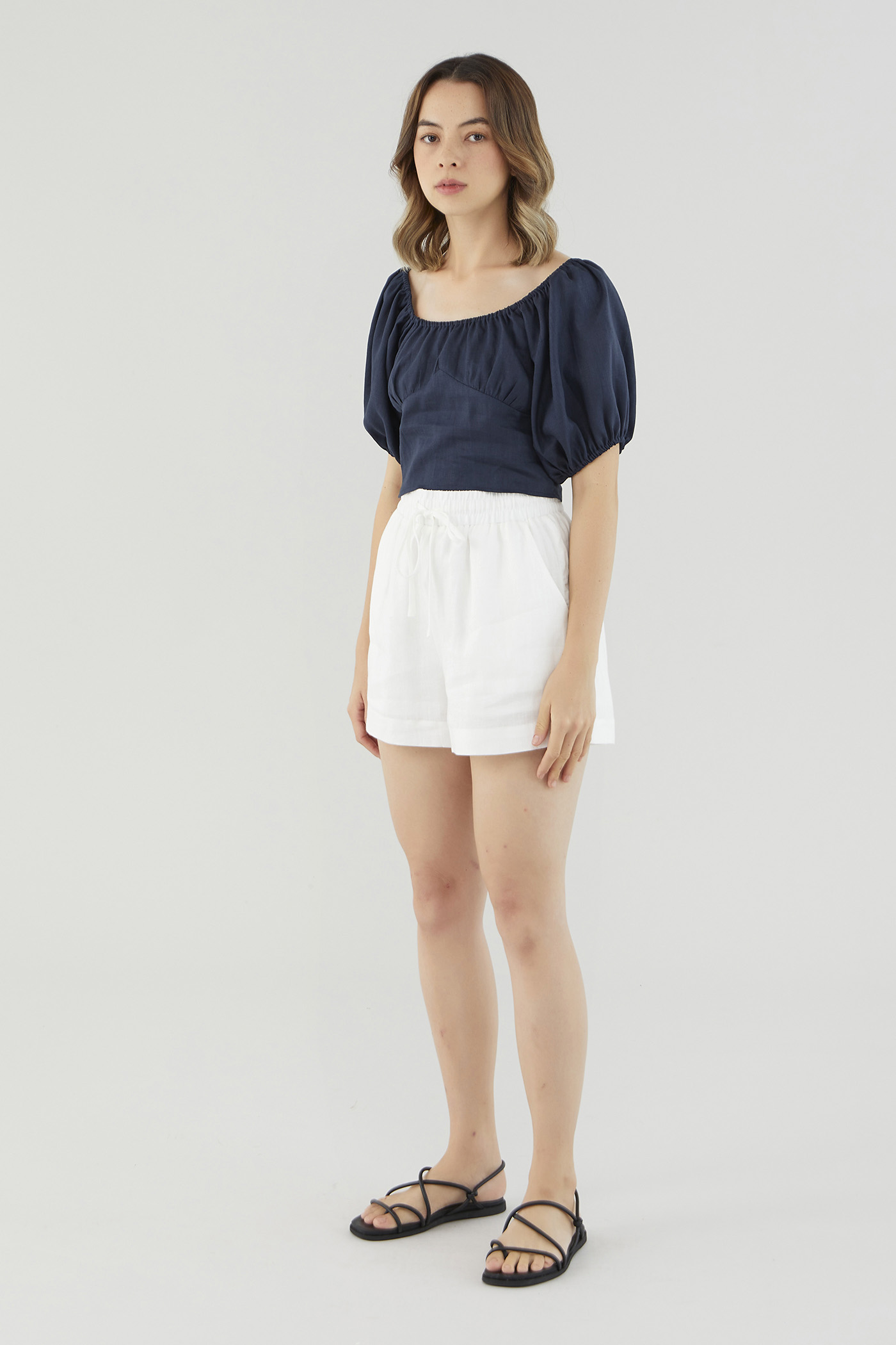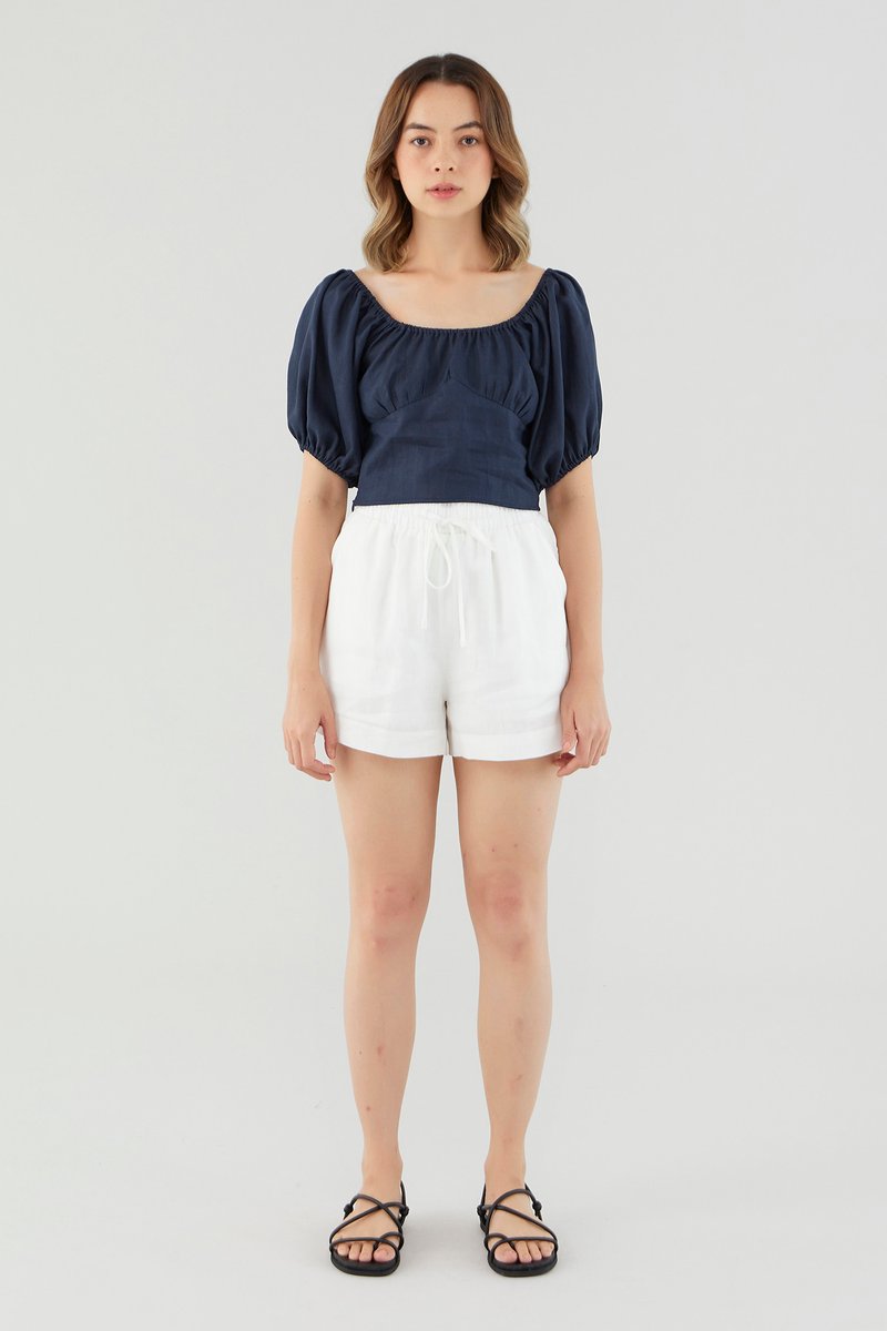 <p><span style="font-weight: 400;">Fabric Composition: 100% Linen</span></p> <p><span style="font-weight: 400;">Lining: None</span></p> <p><span style="font-weight: 400;">Sheerness: Lighter colour options may be slightly sheer. Nude undergarments are recommended. </span></p> <p><span style="font-weight: 400;">Pockets: None</span></p> <p><span style="font-weight: 400;">Ready for warmer days. Cut from airy and non-stretch 100% linen, this blouse features puffed half sleeves, an elasticated neckline that may be worn on or off the shoulder and a panelled bodice for extra polish. Fits relaxed in a cropped length, with a zip closure on the side. </span></p> <p><span style="font-weight: 400;">Care Instructions: Do not soak / Do not bleach / Handwash or Machine wash on gentle mode / Do not machine dry / Iron using low heat</span></p> <p><i><span style="font-weight: 400;">This piece is made from 100% linen, the unsung hero of hot days and one of the least environmentally damaging fabrics. Derived from the unfussy flax plant, not only does its cultivation consume significantly less water, pesticides and arable land — but linen’s excellent durability and biodegradable nature also means your clothes have a longer, more waste-free life cycle.</span></i></p>
