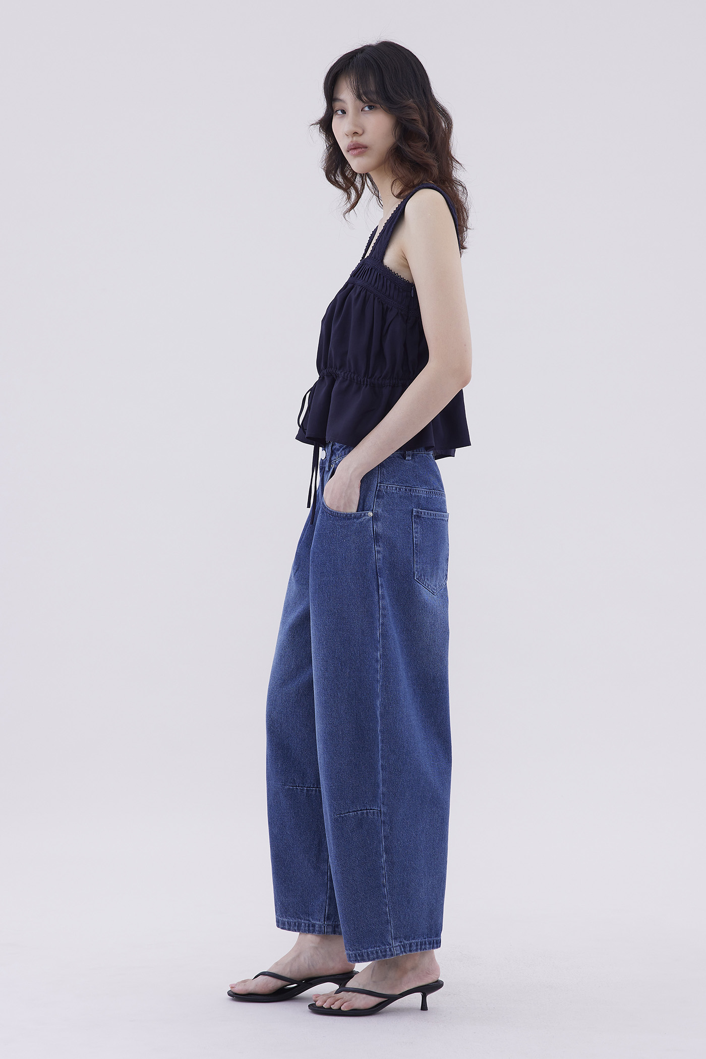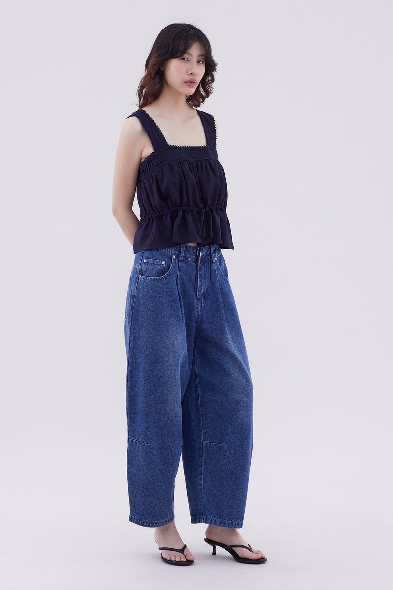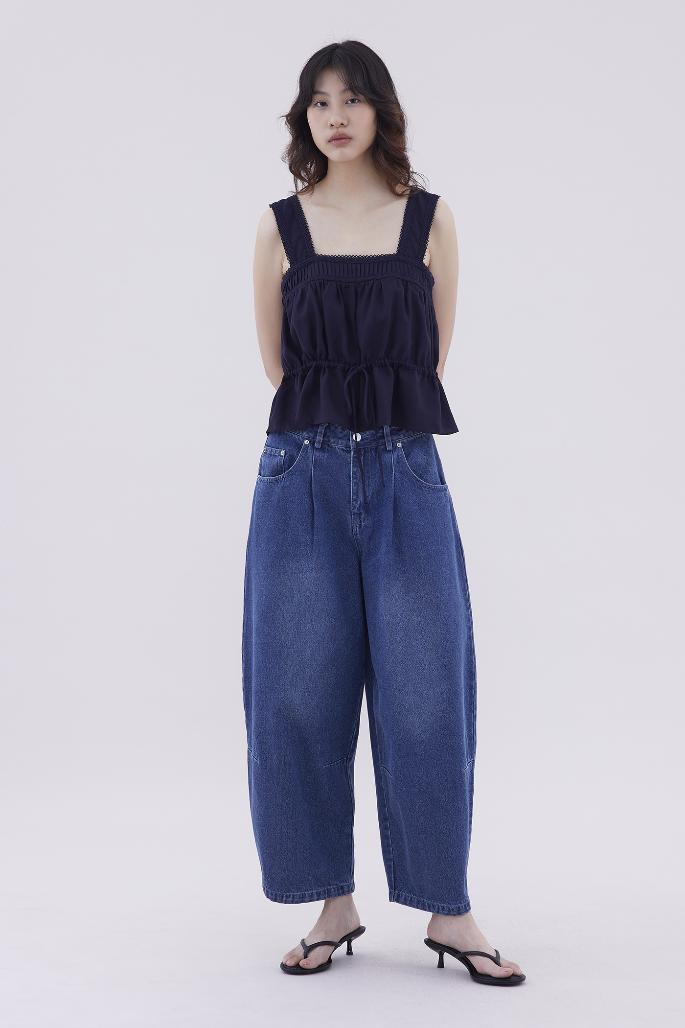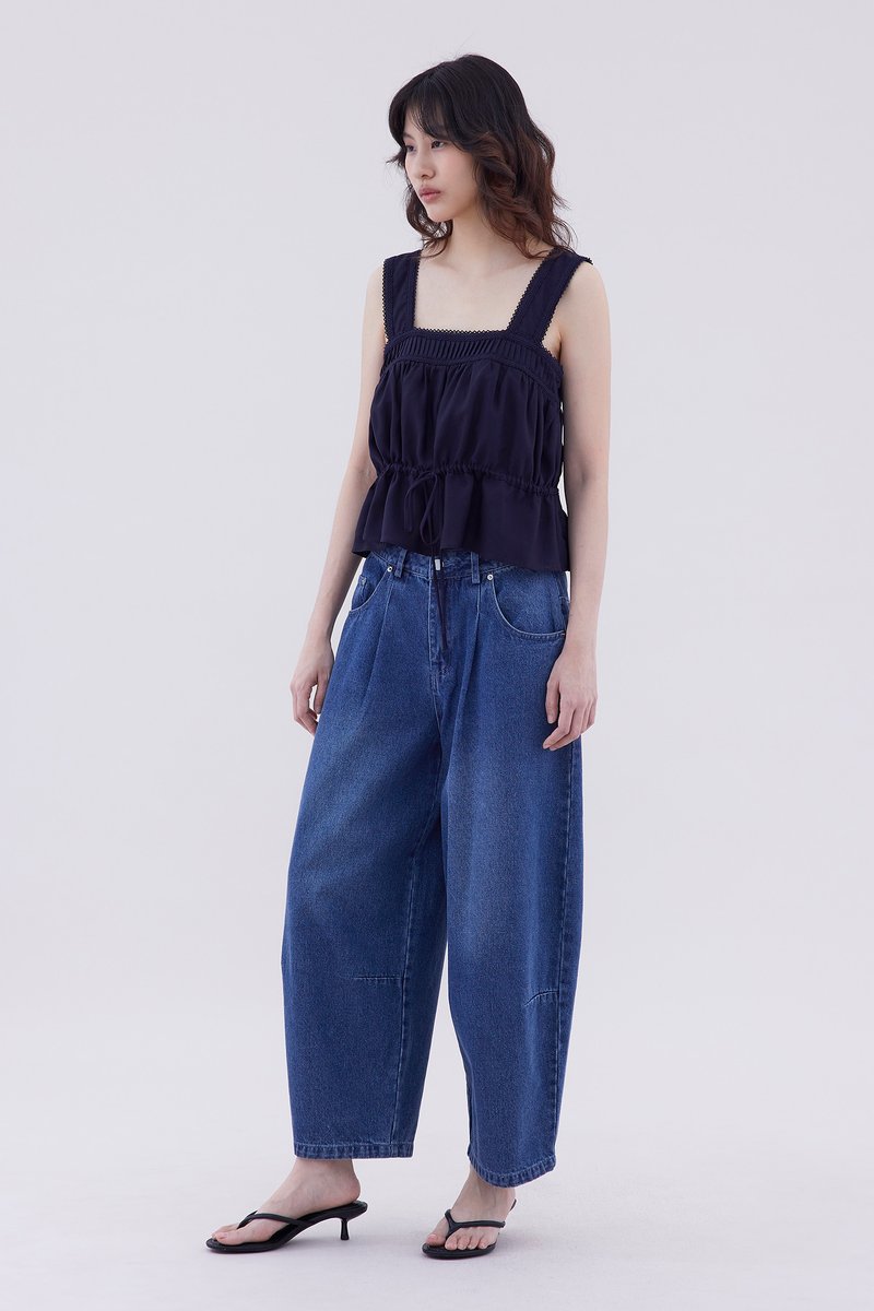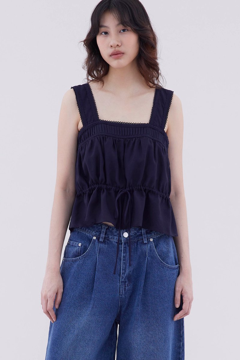 For the love of details. Made from smooth and non-stretch Tencel, this sleeveless top features pleats, lace trimming, a square neckline, wide shoulder straps and a drawstring waist-tie. Worn in a relaxed fit with a side zip closure.