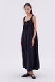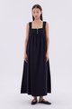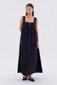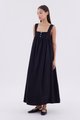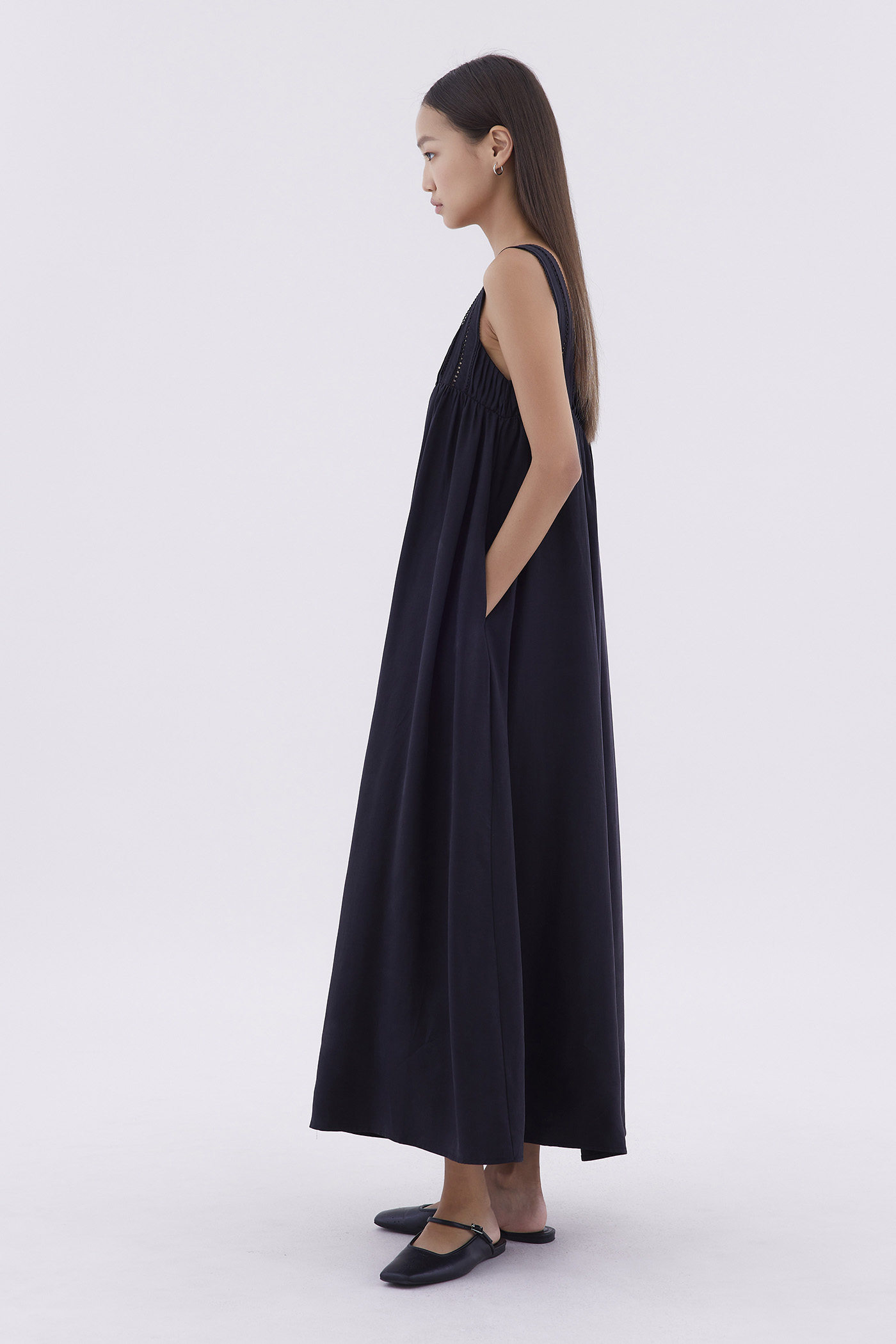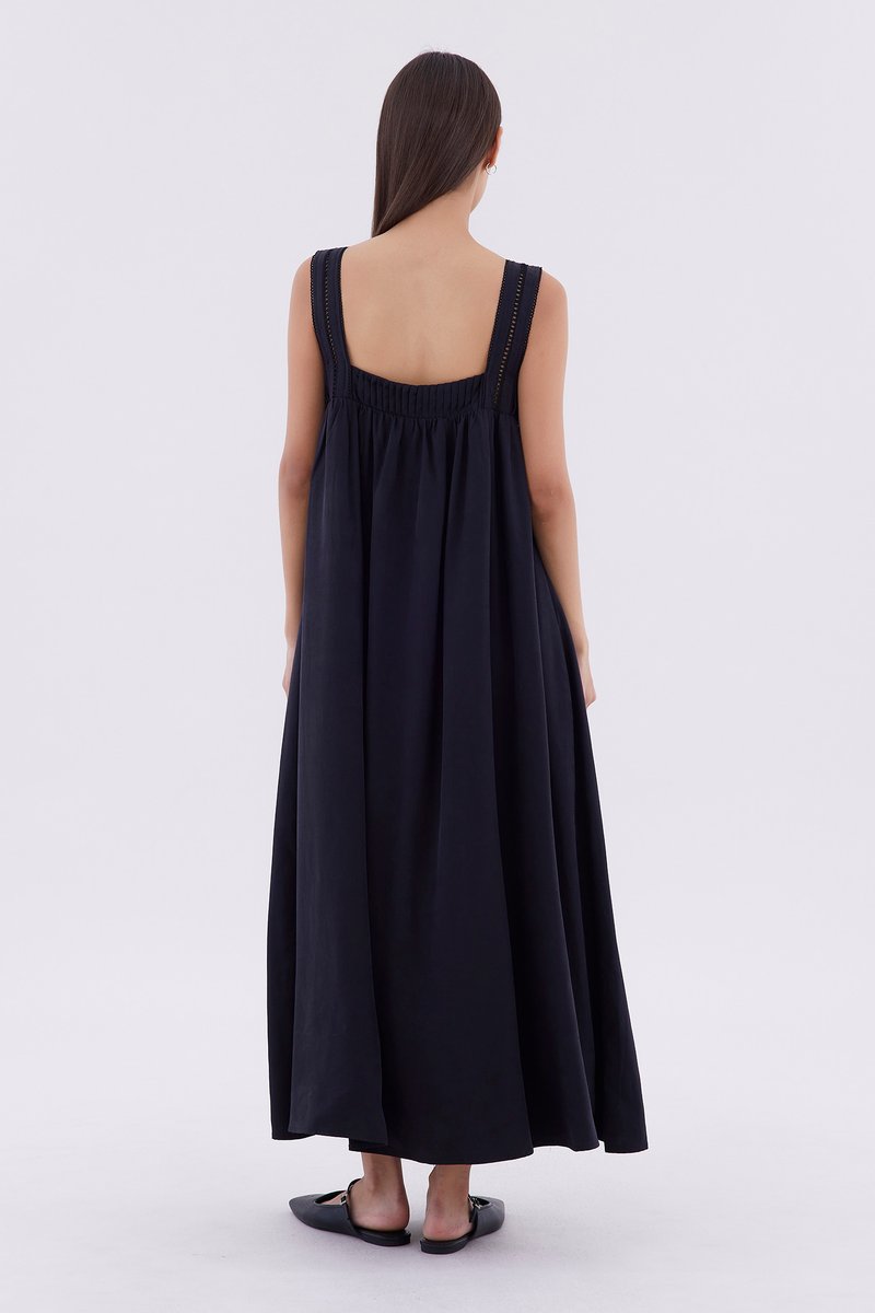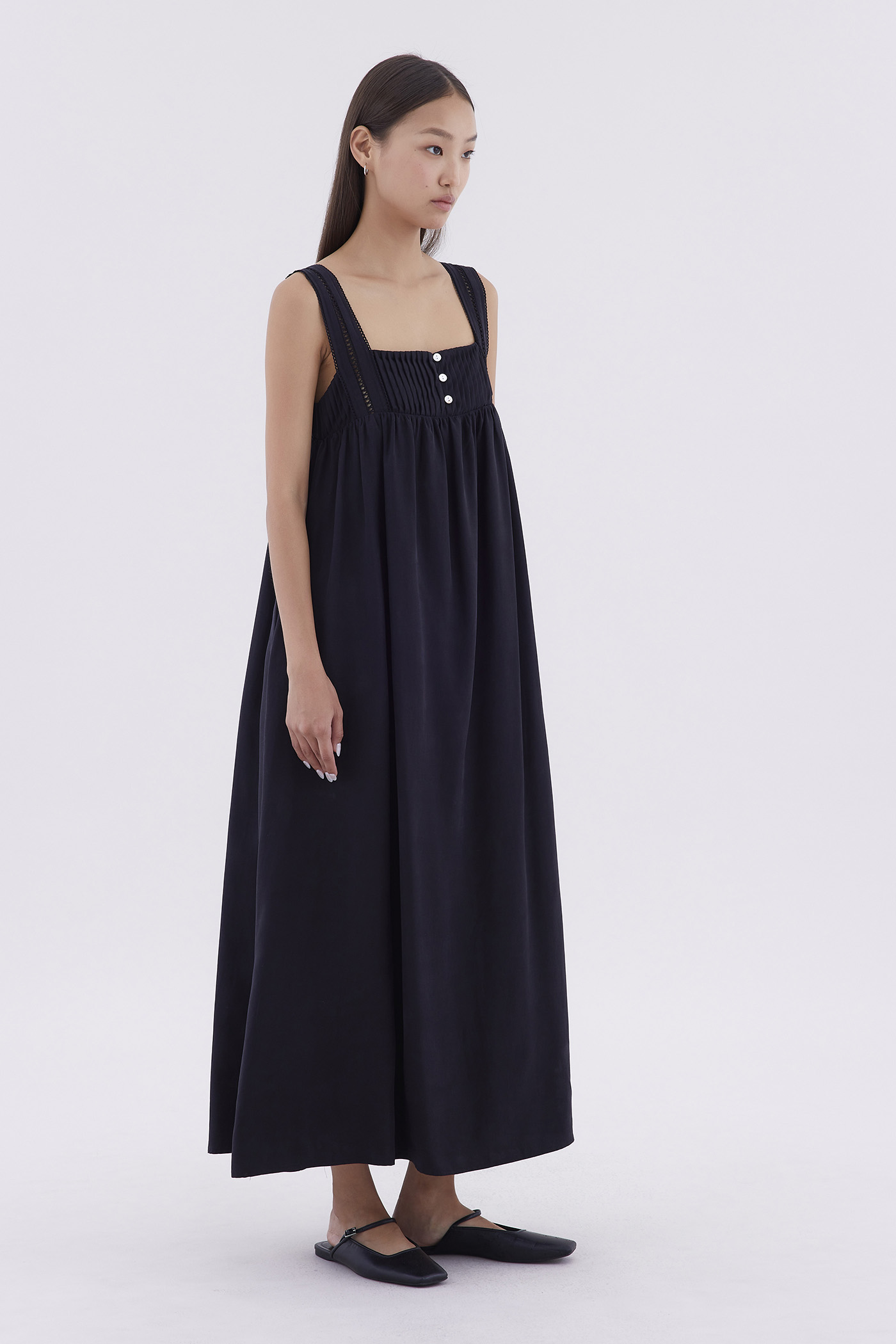 Clean lines. Made from smooth and lightweight fabric, this sleeveless maxi dress features wide lace-trimmed shoulder straps, a square neckline, a pin-tucked bust and front buttons. Fits relaxed in a tent silhouette.
