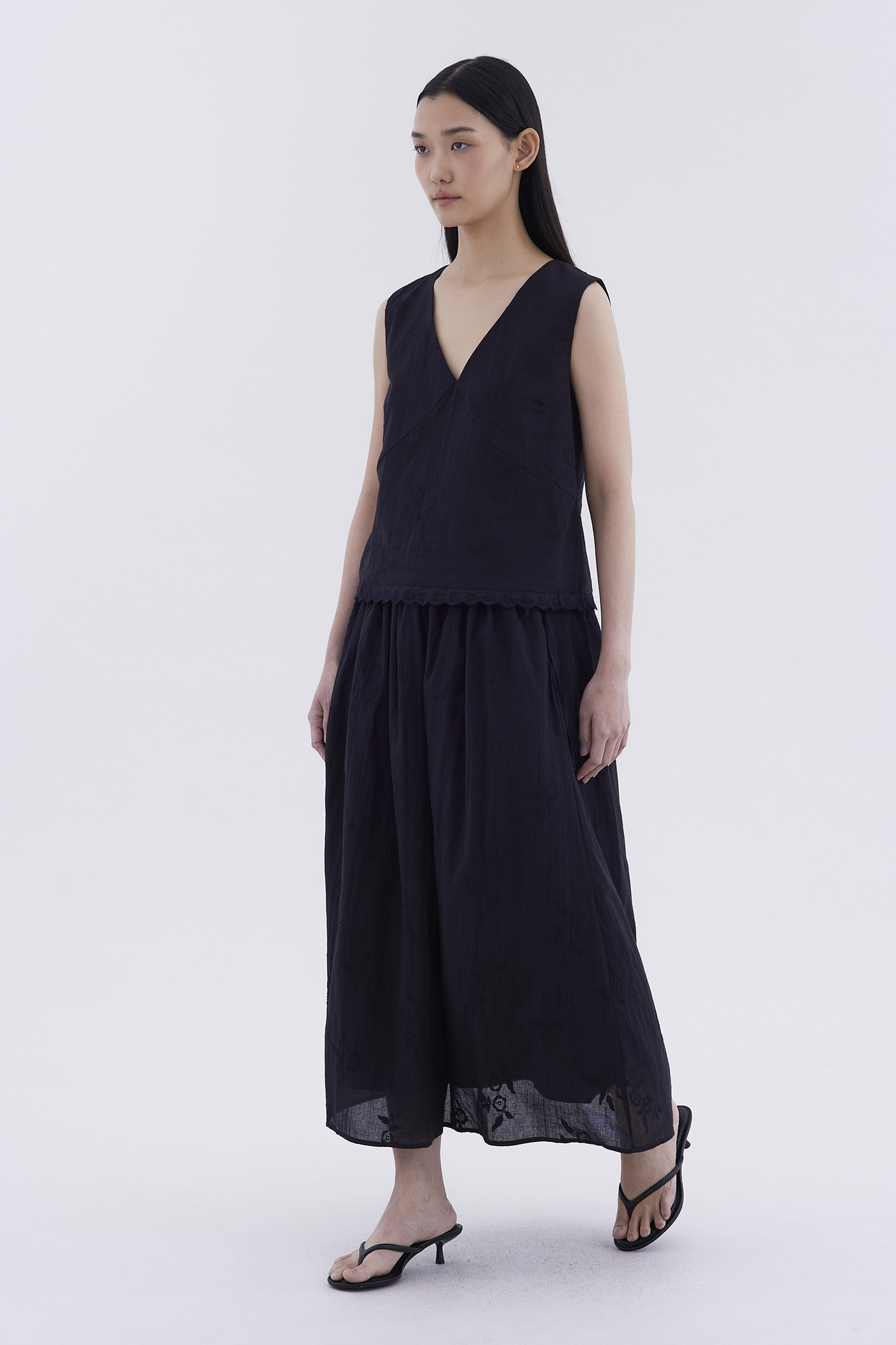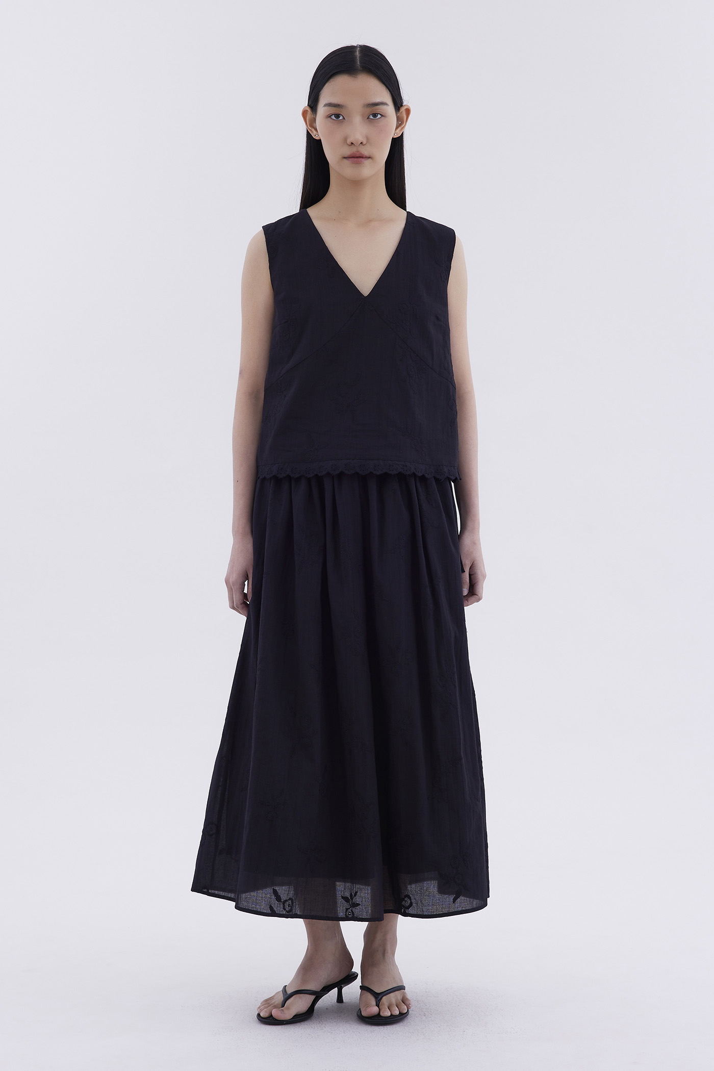 Double the detail. Made from crisp and softly structured cotton broderie, this maxi skirt features a drawstring waistband with side-ties and a flared A-line silhouette.