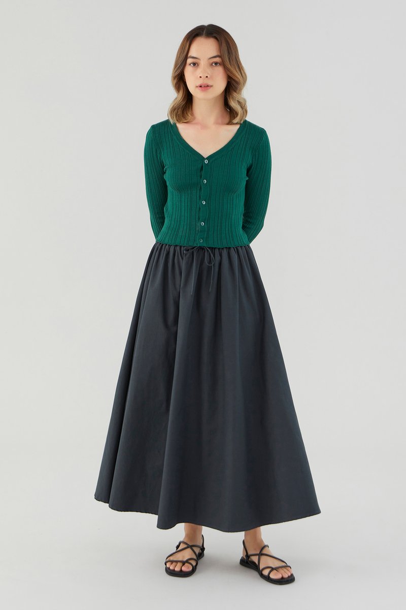 <p><span style="font-weight: 400;">Fabric composition: 65% Cotton 36% Lyocell</span></p> <p><span style="font-weight: 400;">Lining: None</span></p> <p><span style="font-weight: 400;">Sheerness: Not sheer</span></p> <p><span style="font-weight: 400;">Pockets: None</span></p> <p><span style="font-weight: 400;">Easy-wearing volume. Cut from sturdy and non-stretch fabric, this midi-to-maxi skirt features a softly structured silhouette and an elastic drawstring waist. Worn in a relaxed fit. </span></p> <p><span style="font-weight: 400;">Care Instructions: Do not soak / Do not bleach / Handwash or Machine wash on gentle mode / Do not machine dry / Iron using low heat</span></p>