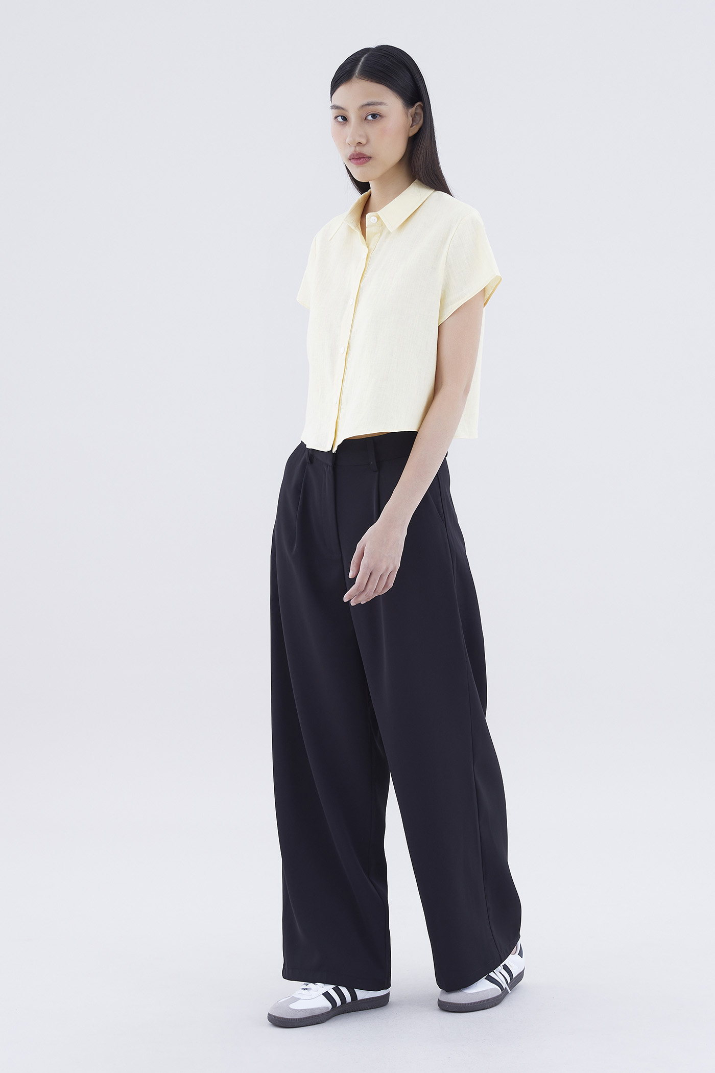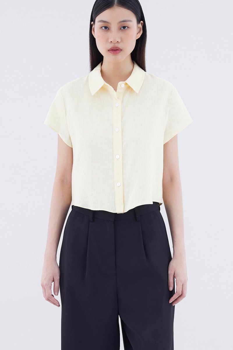 Cooler than most. Cut from light and airy 100% linen, this cropped shirt features short, wide sleeves, a button-down front and a boxy silhouette. Worn in a relaxed fit.