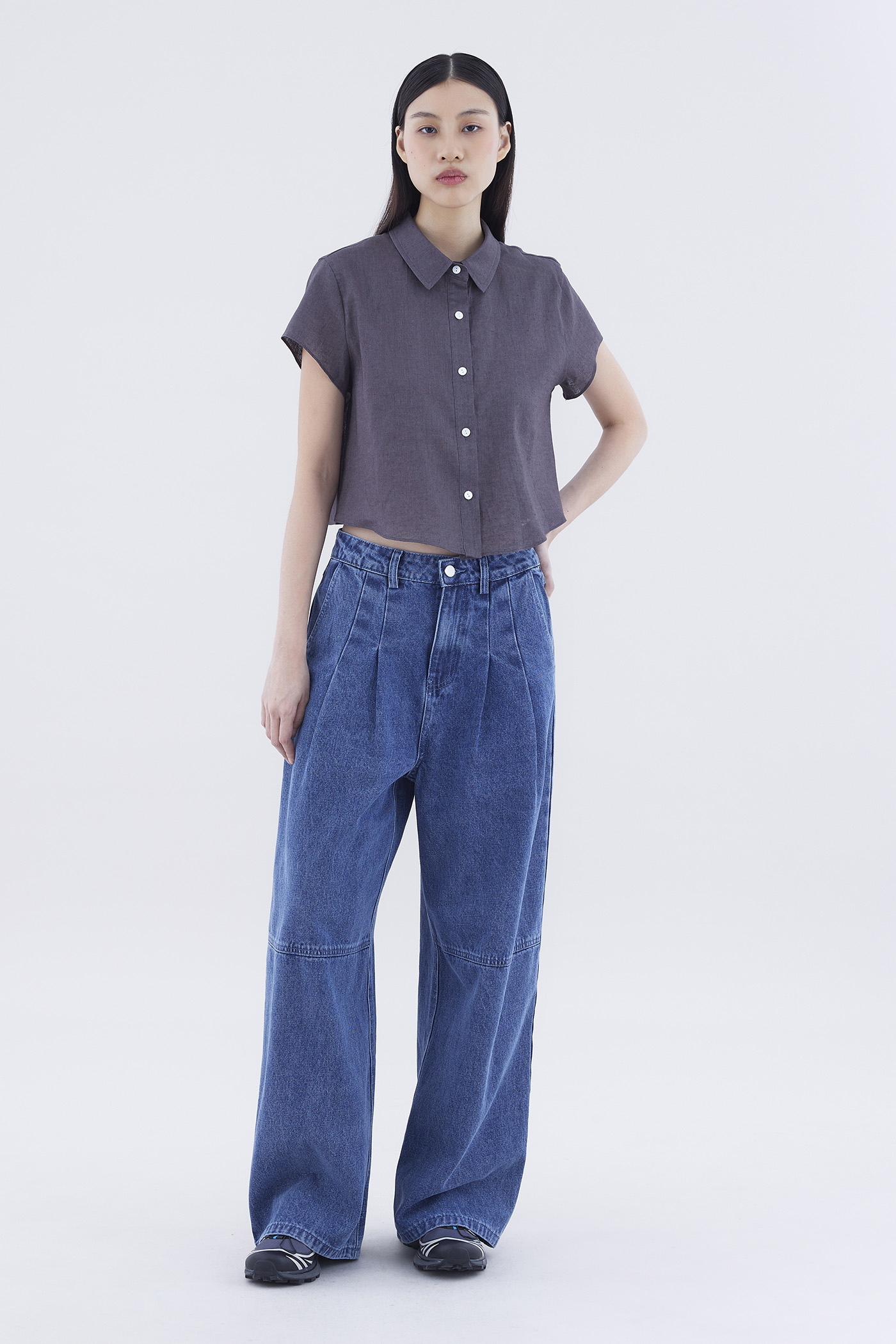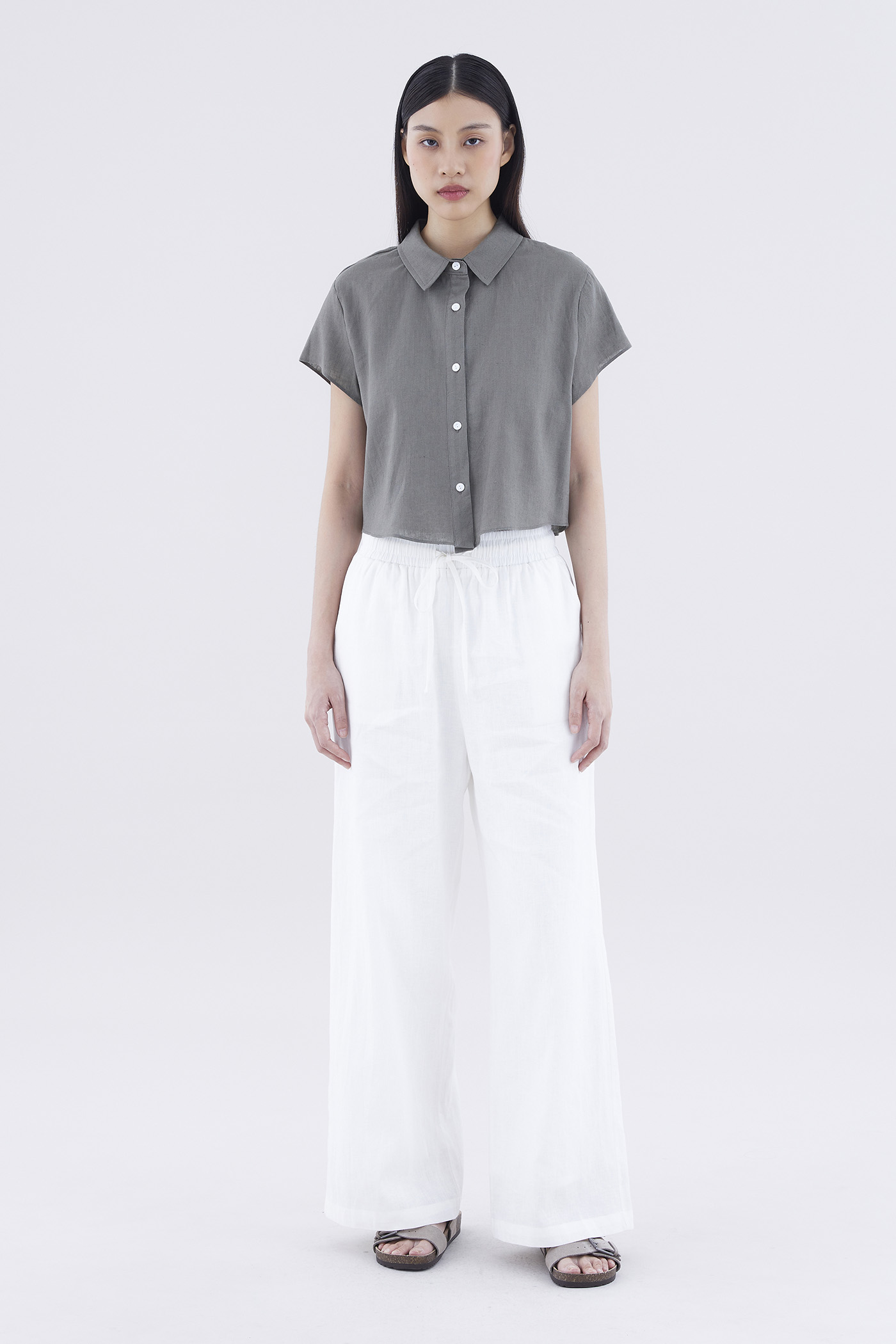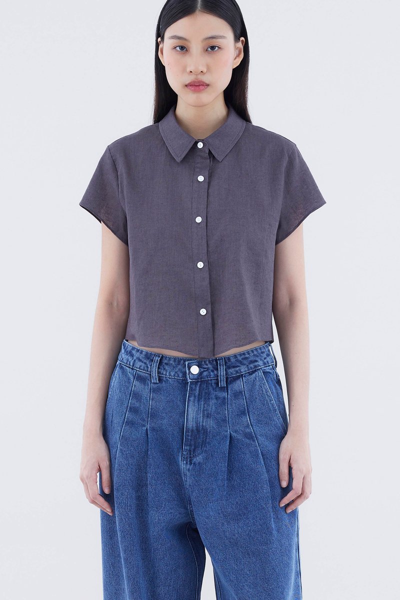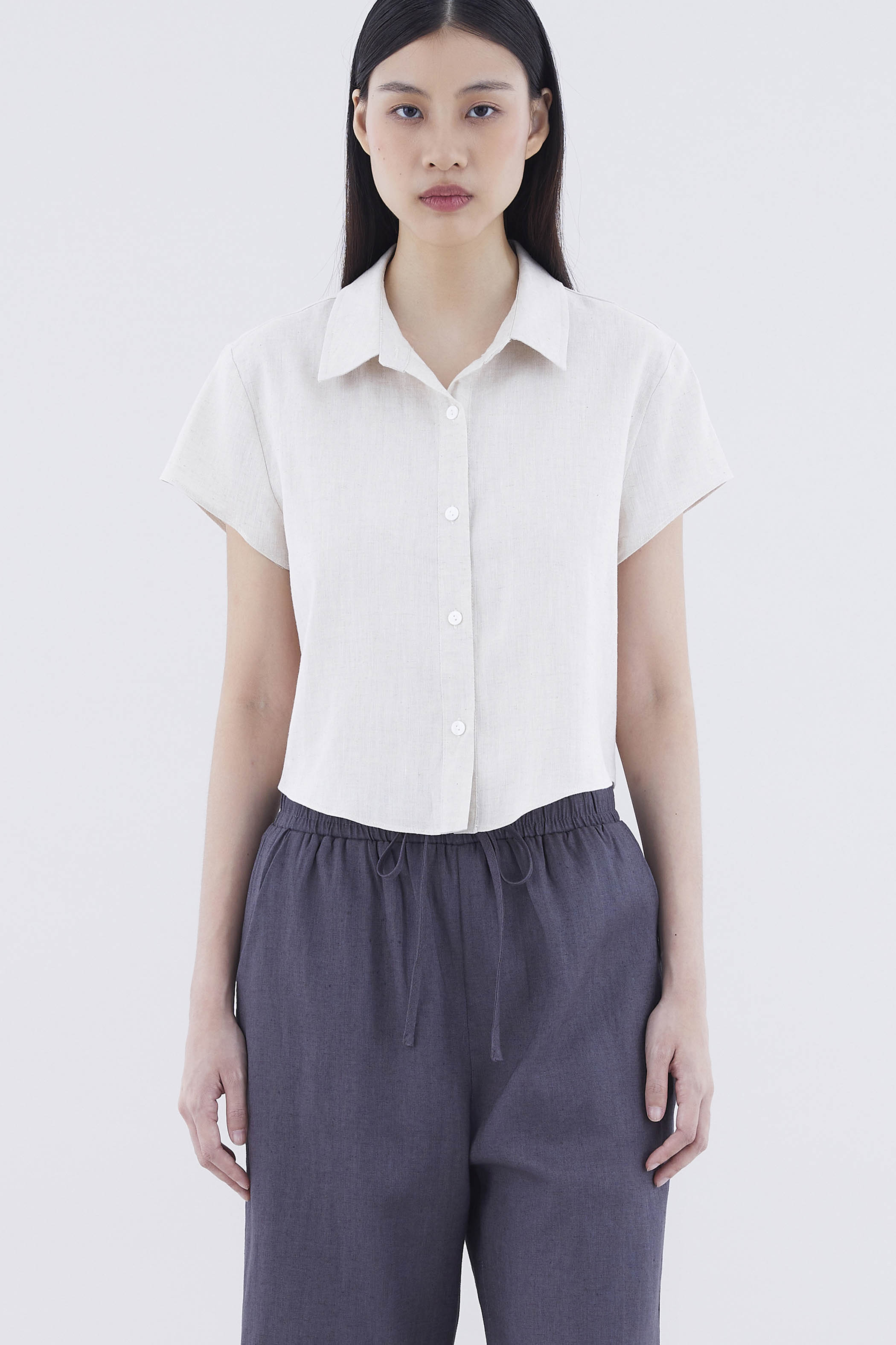 Cooler than most. Cut from light and airy 100% linen, this cropped shirt features short, wide sleeves, a button-down front and a boxy silhouette. Worn in a relaxed fit.