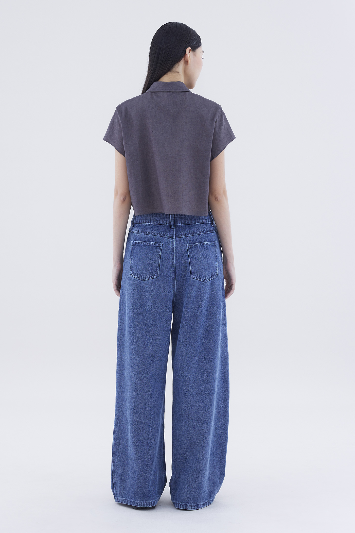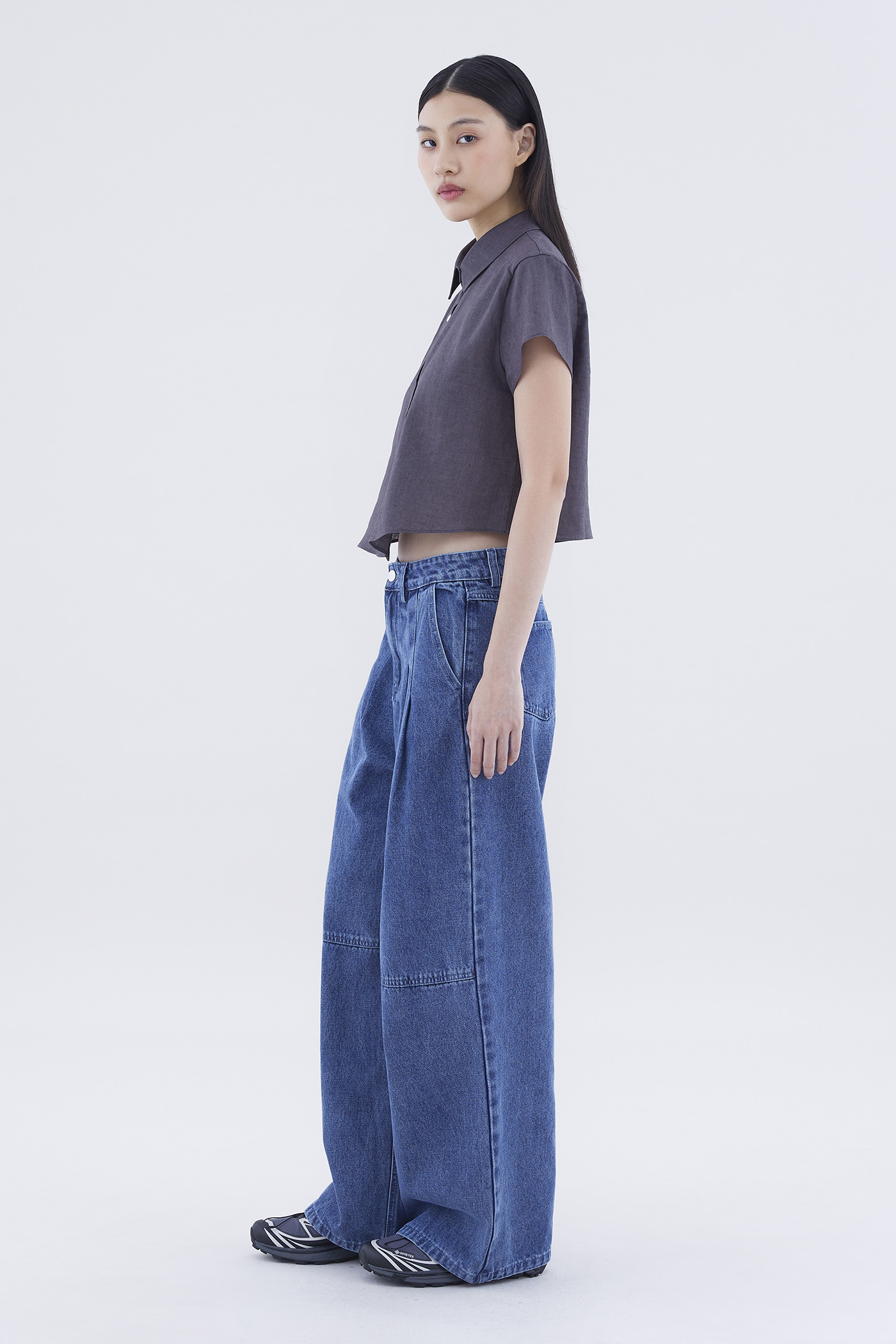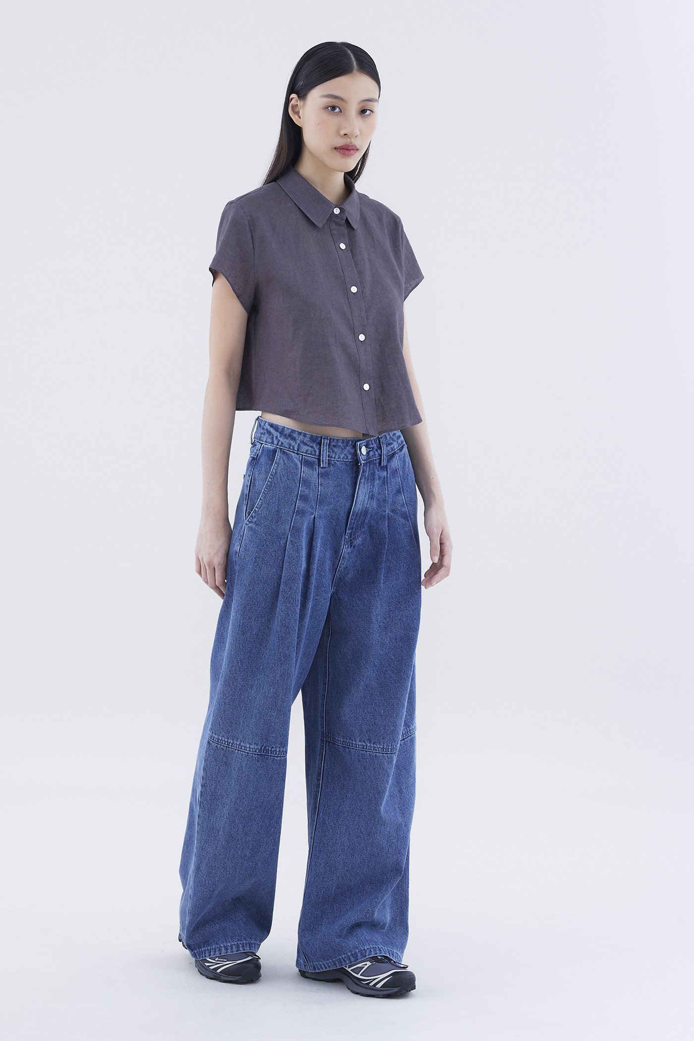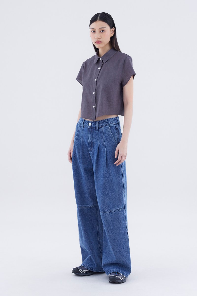 Cooler than most. Cut from light and airy 100% linen, this cropped shirt features short, wide sleeves, a button-down front and a boxy silhouette. Worn in a relaxed fit.