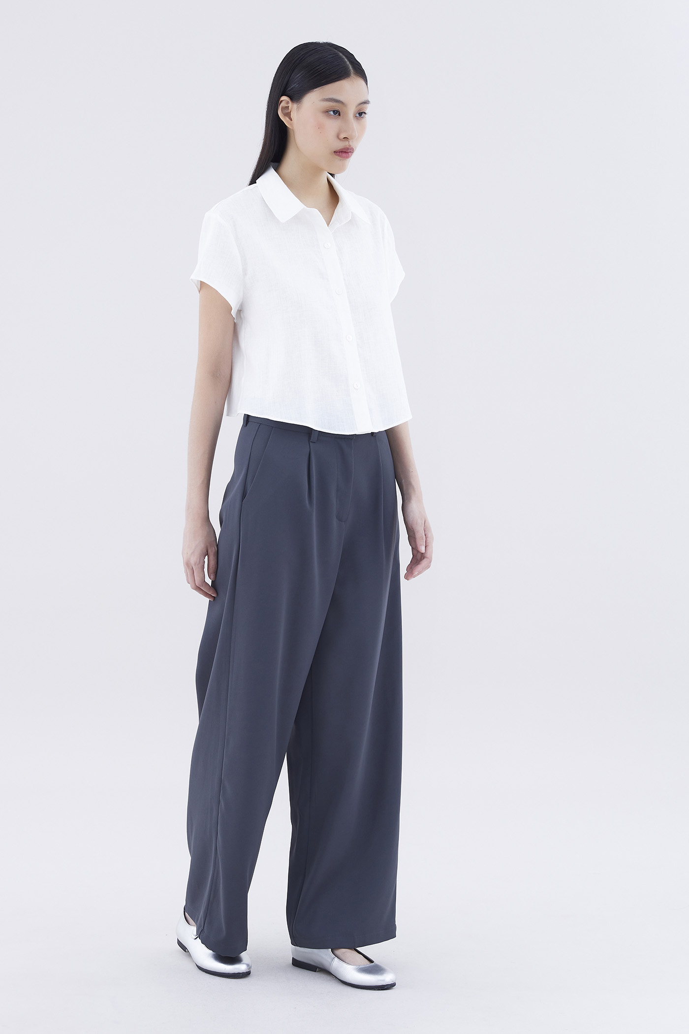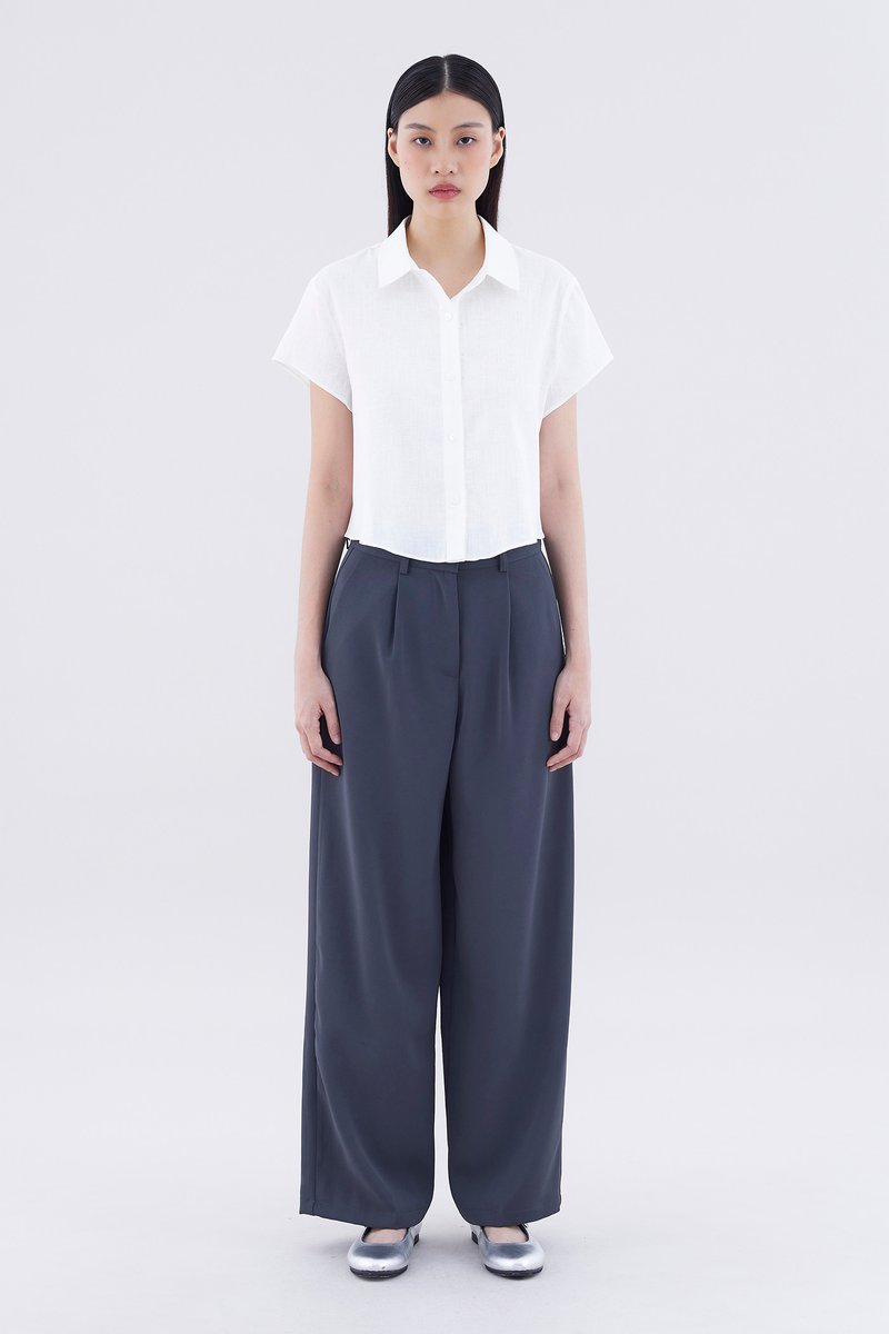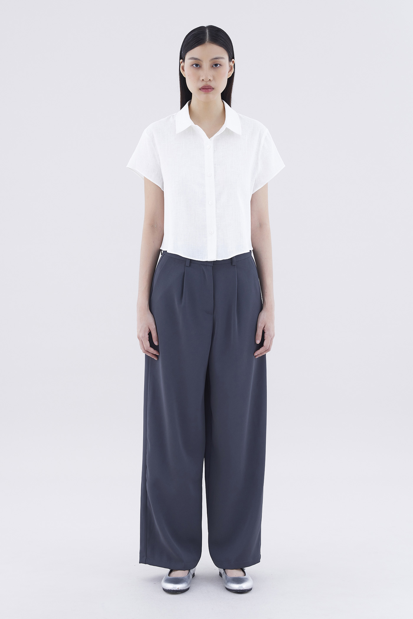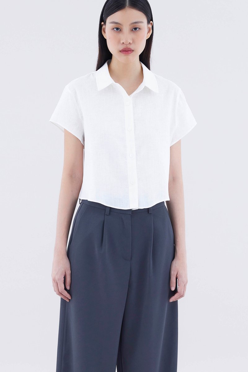 Cooler than most. Cut from light and airy 100% linen, this cropped shirt features short, wide sleeves, a button-down front and a boxy silhouette. Worn in a relaxed fit.