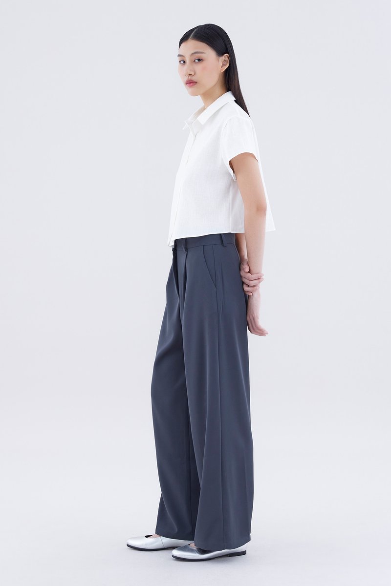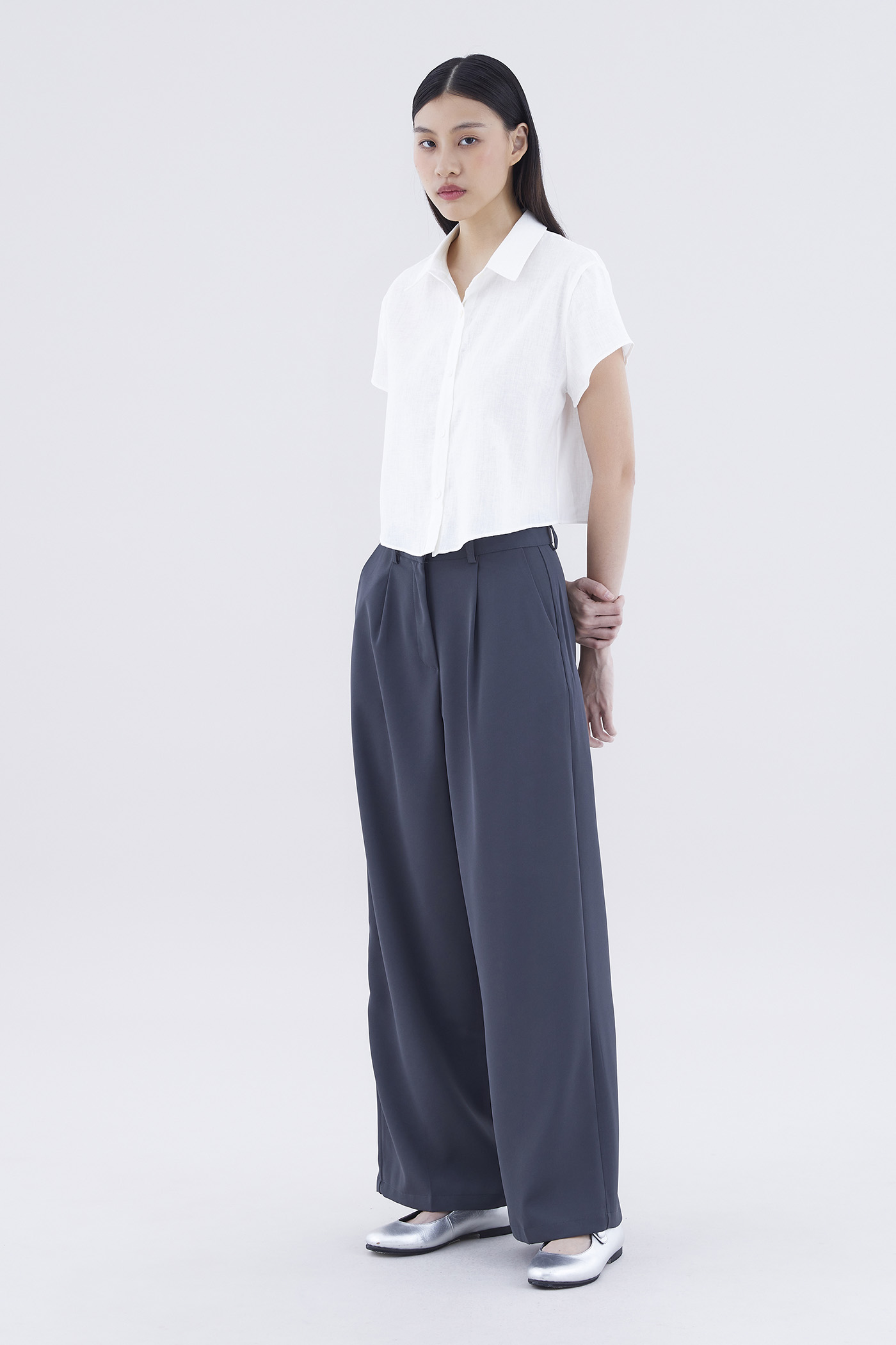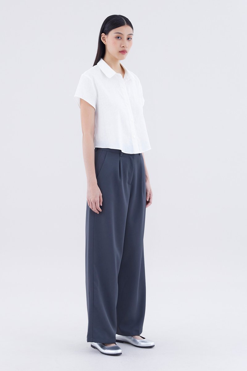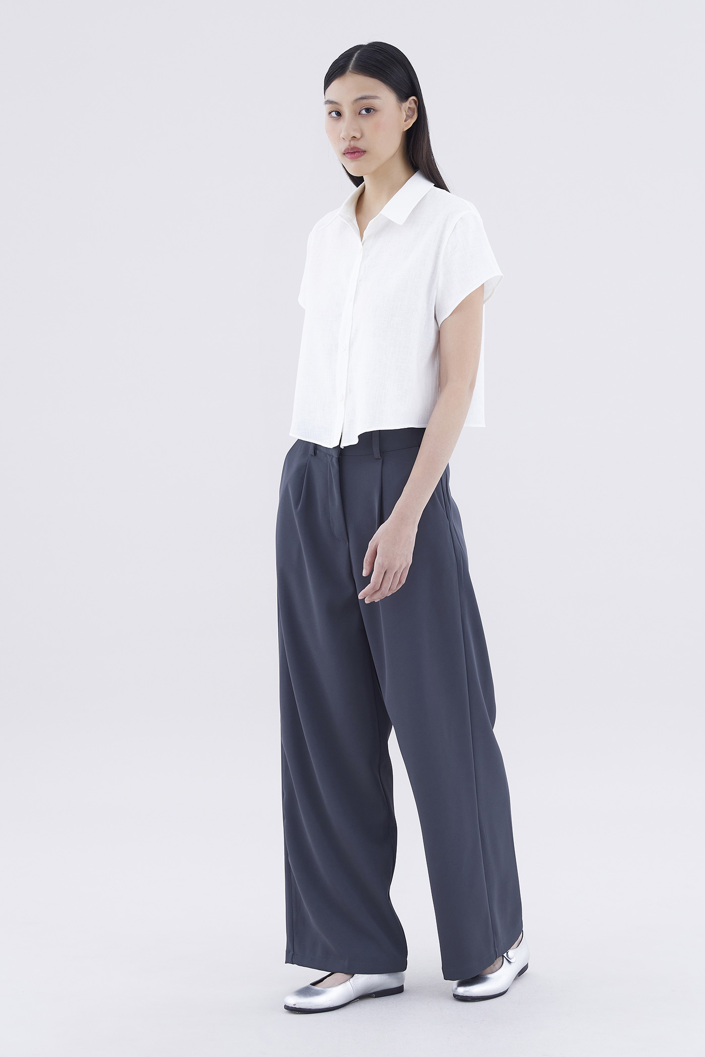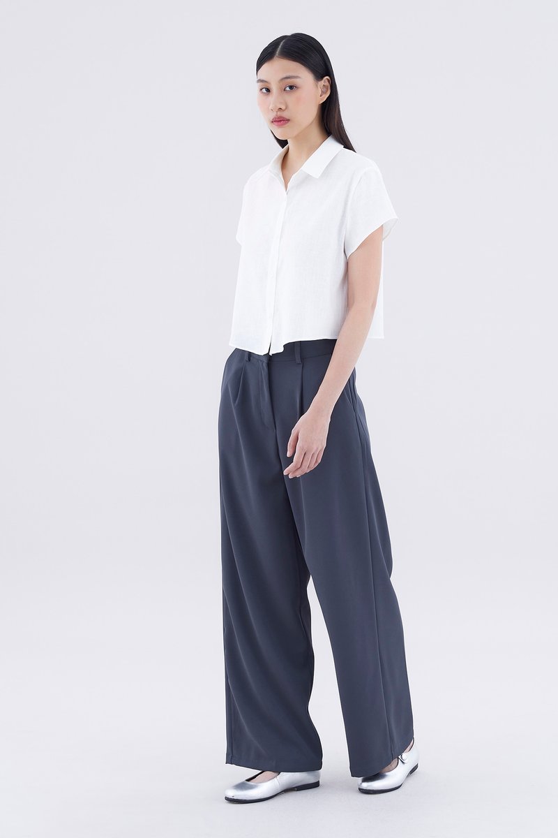 Cooler than most. Cut from light and airy 100% linen, this cropped shirt features short, wide sleeves, a button-down front and a boxy silhouette. Worn in a relaxed fit.