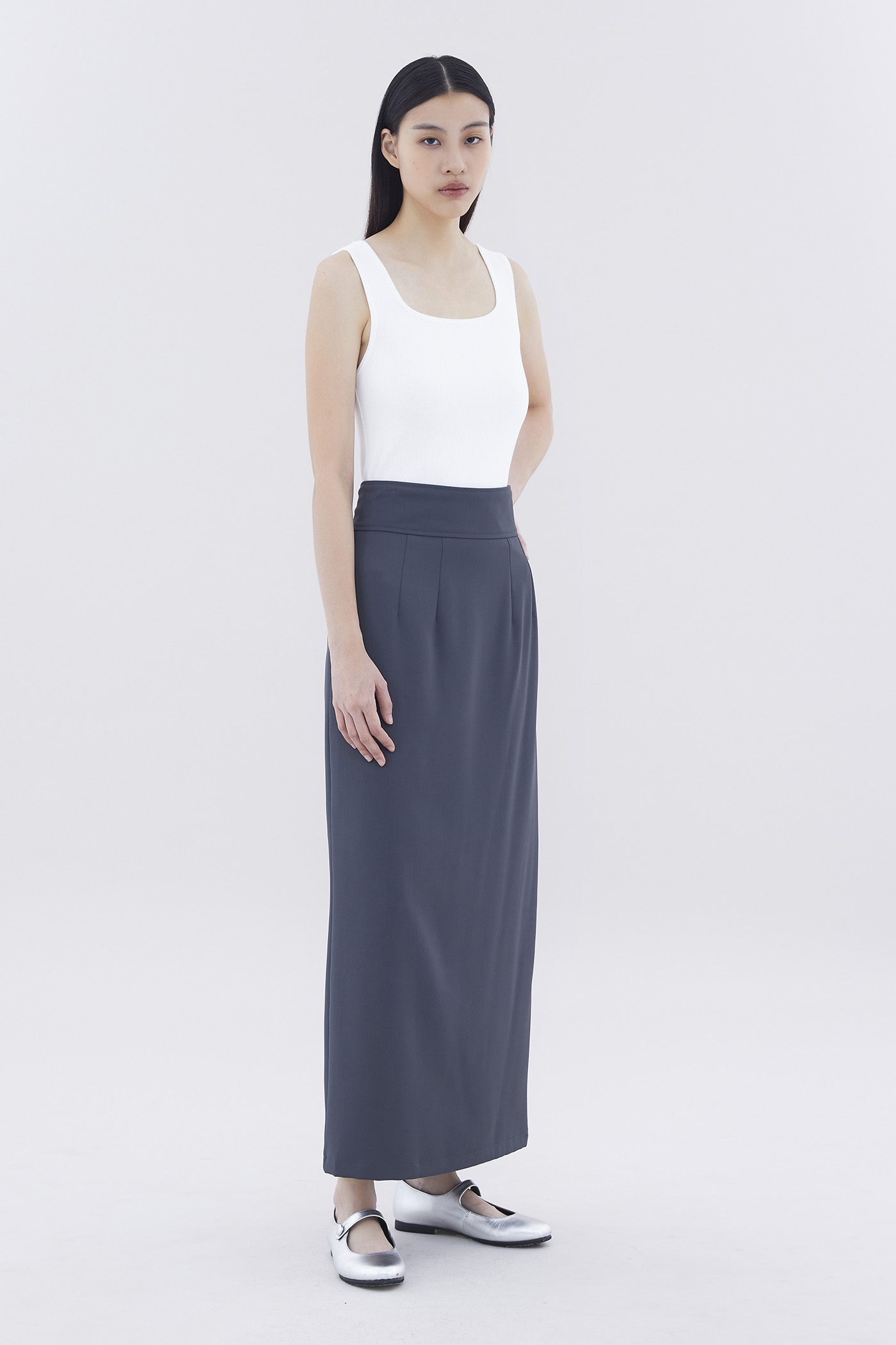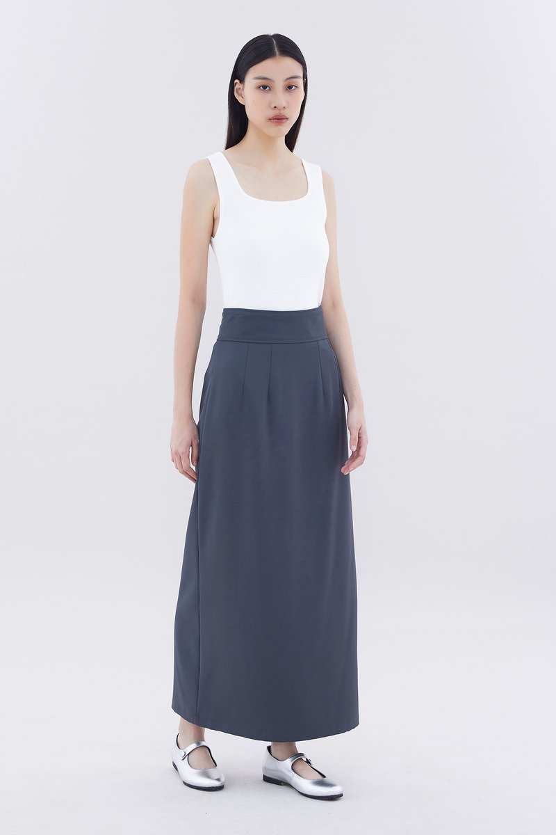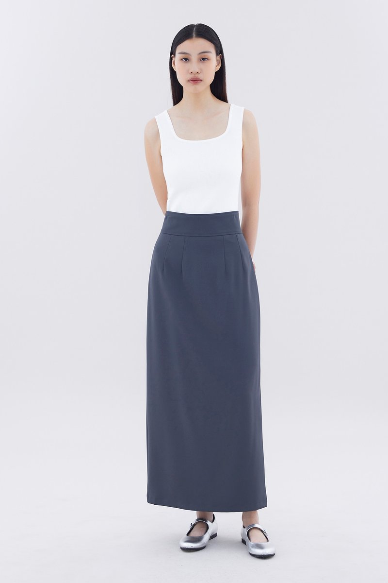 Form-flattering. Made from smooth and gently tailored fabric, this high-rise maxi skirt features a straight silhouette, a wide waistband as well as a slit and decorative pockets at the back. Worn in a slim fit with a back zip closure.
