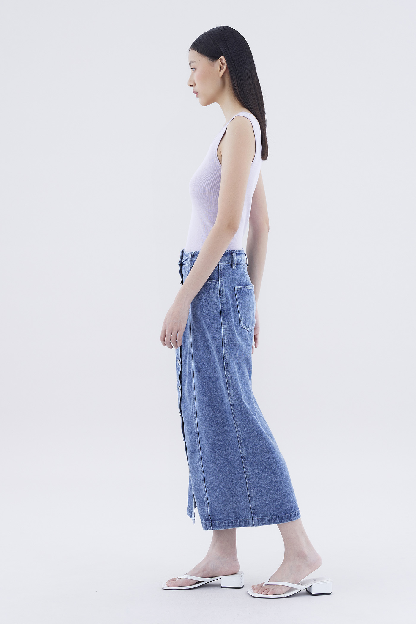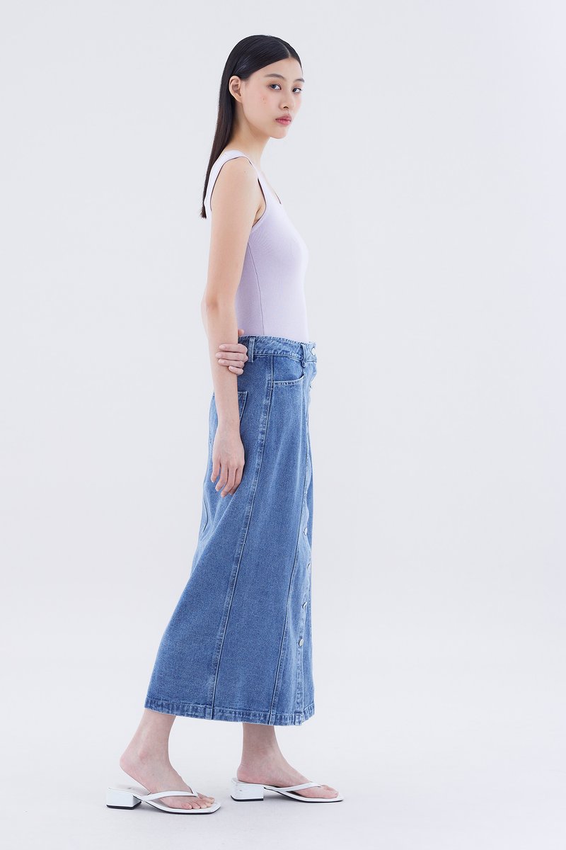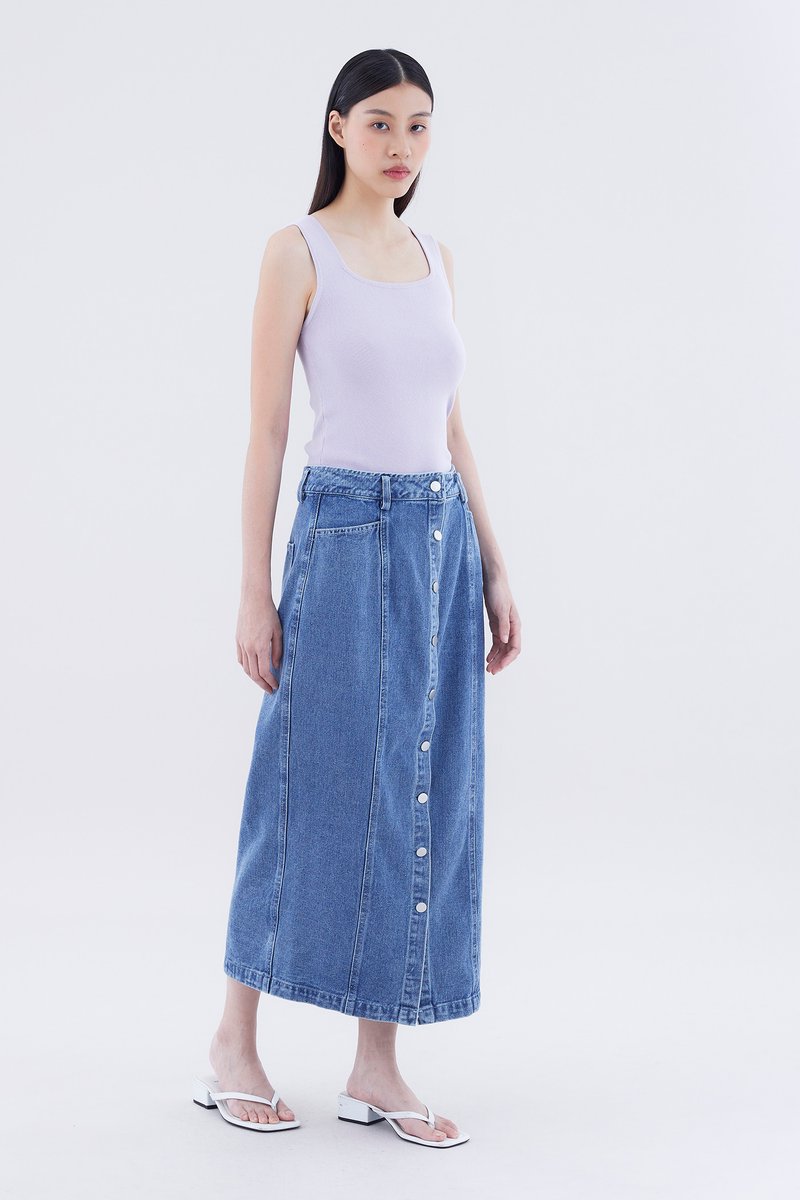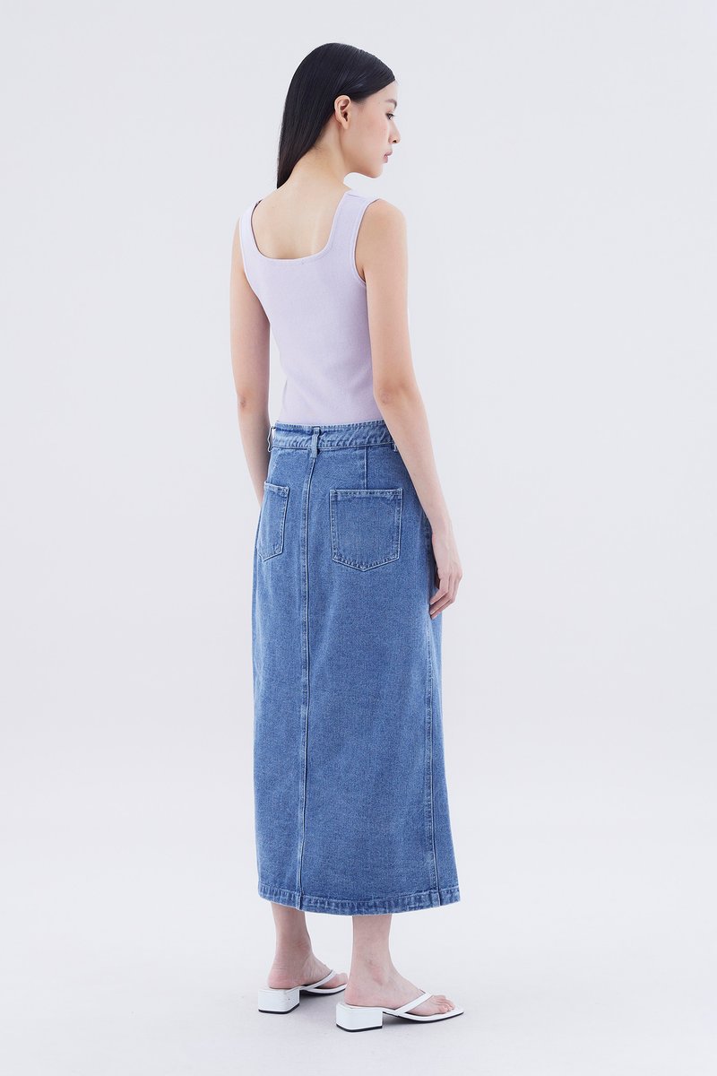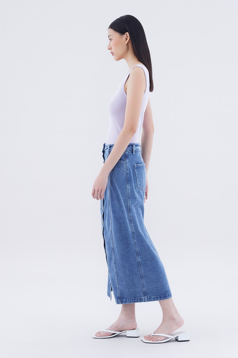 Dreya High-Rise Button-Down Denim Straight Skirt