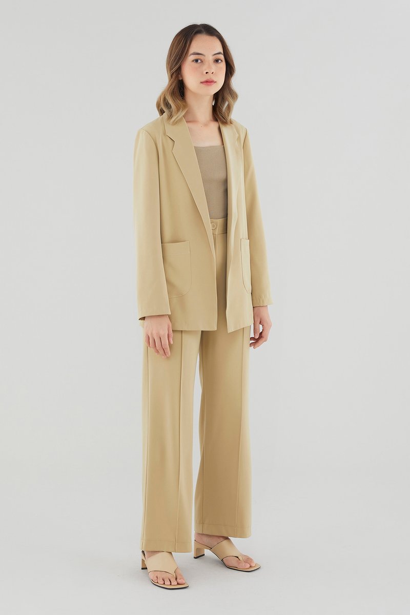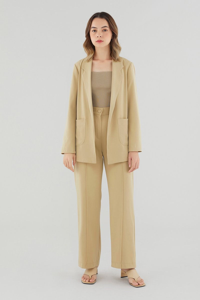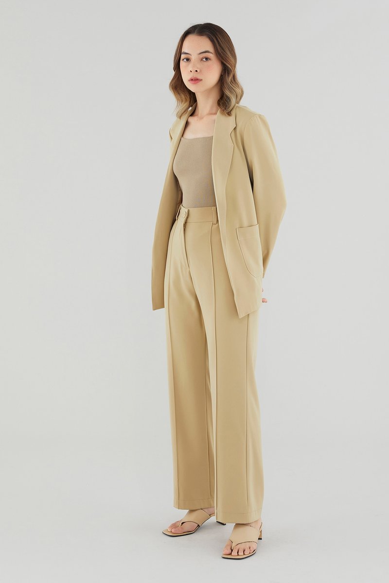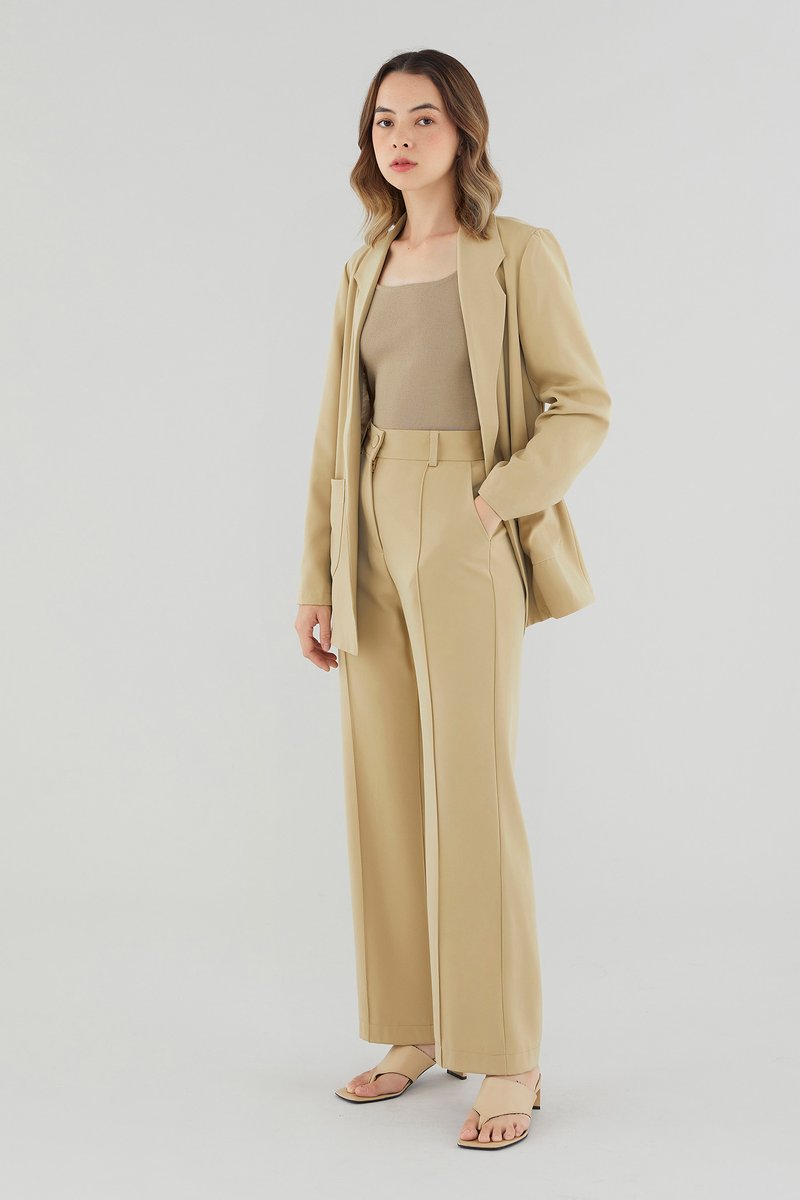 Trousers in summer? Yes please when they look like this. Crafted from smooth and non-stretch fabric, these straight-legged pants feature a high waist, enlarged belt loops, and a raised seam down the centre of each leg for a dash of sophistication. Fits slim with a zip and button closure on the front.
