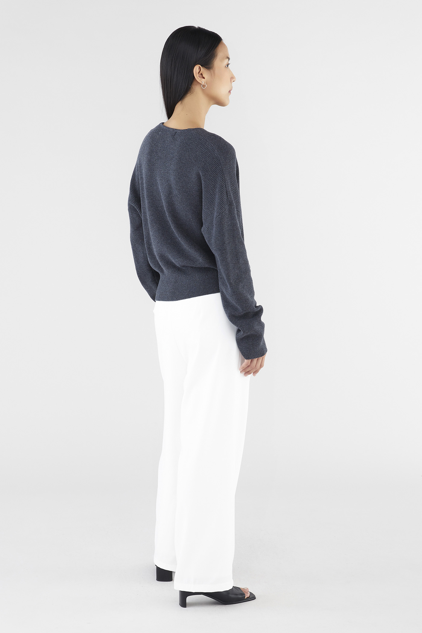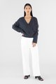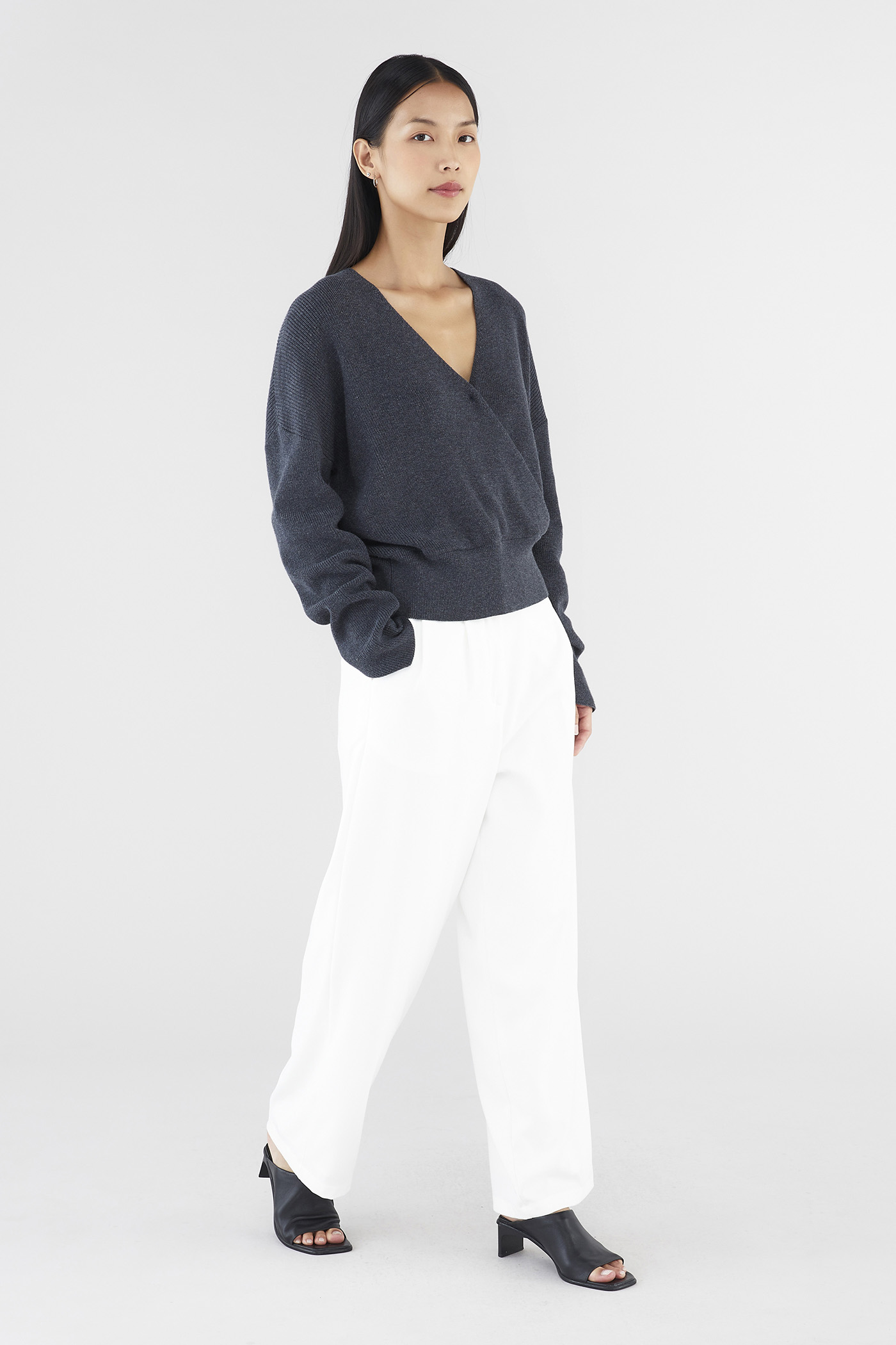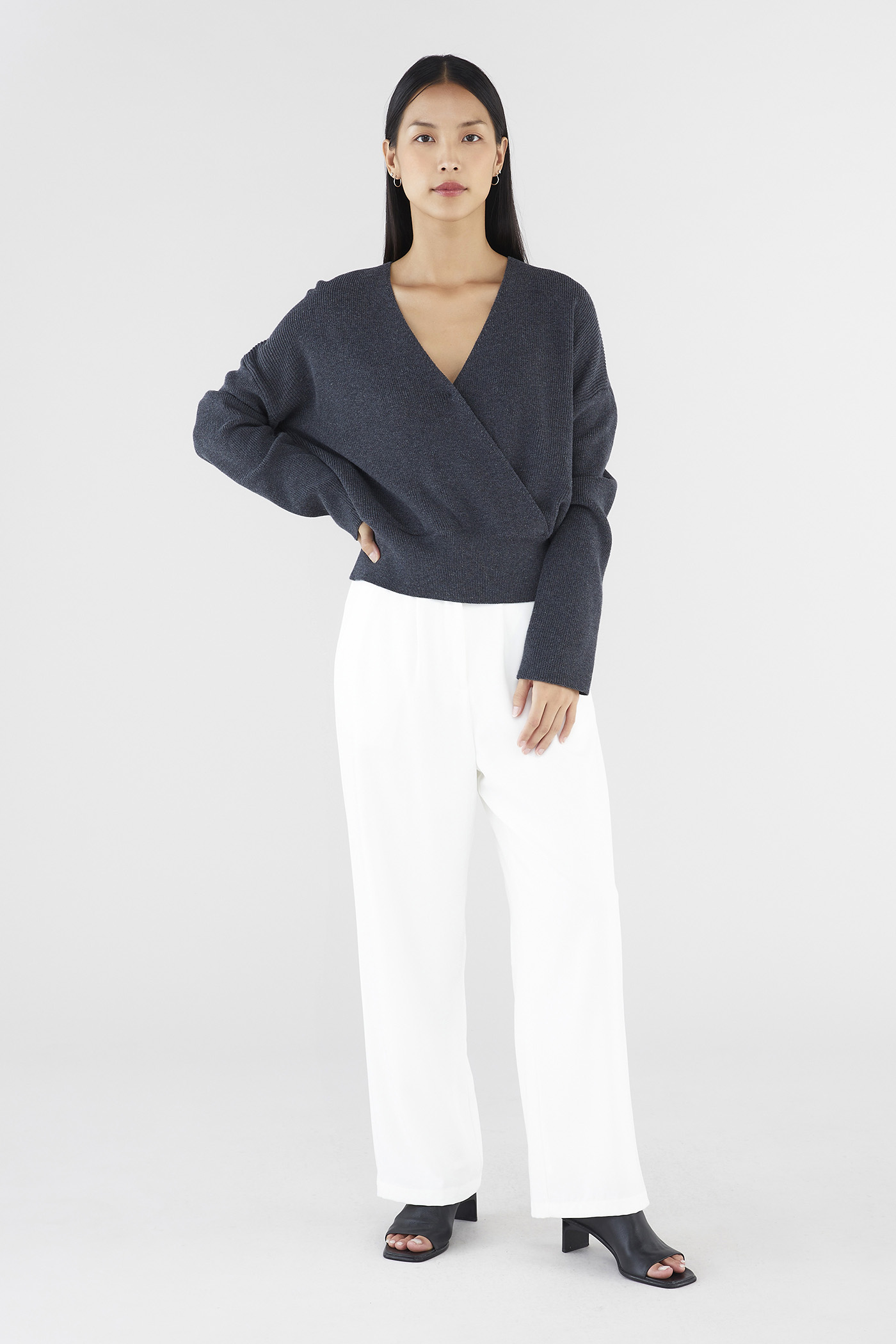 Layers, but make them cosy. Made from soft and cosy knit, this top features extra-long sleeves, a deep, wrap-over neckline and a wide hemline. Worn in a slouchy, oversized fit and slightly cropped length.