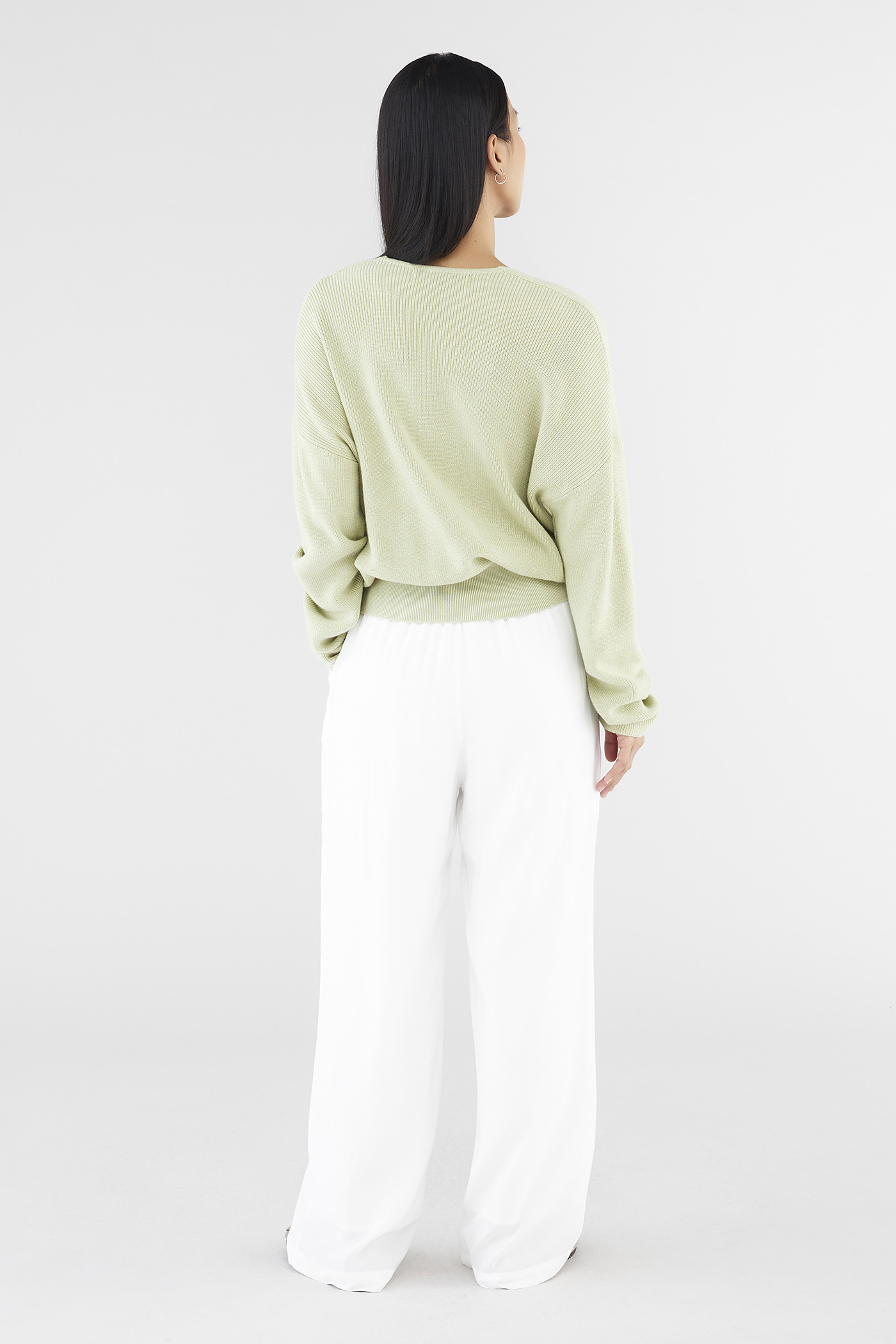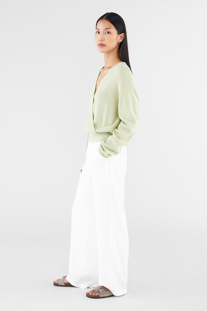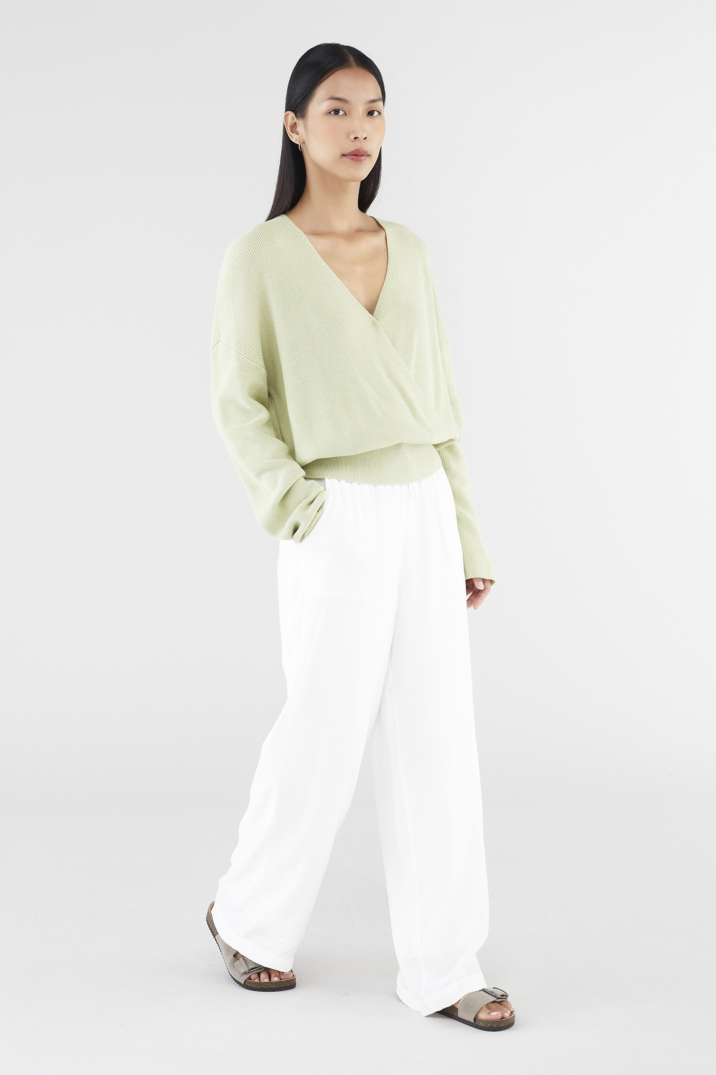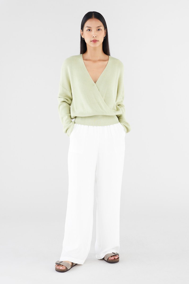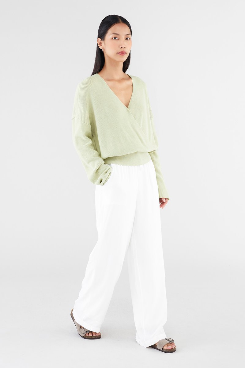 Layers, but make them cosy. Made from soft and cosy knit, this top features extra-long sleeves, a deep, wrap-over neckline and a wide hemline. Worn in a slouchy, oversized fit and slightly cropped length.