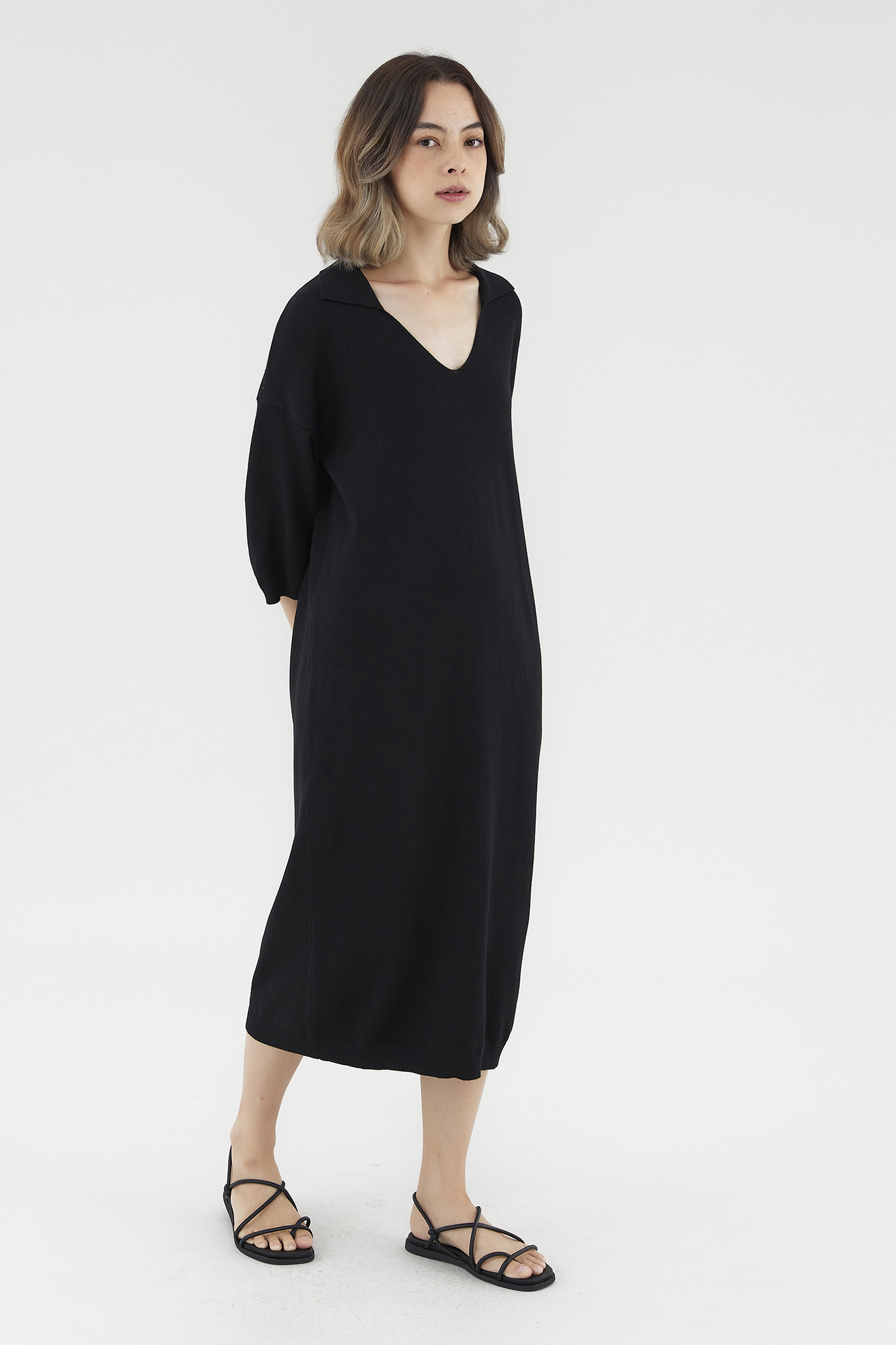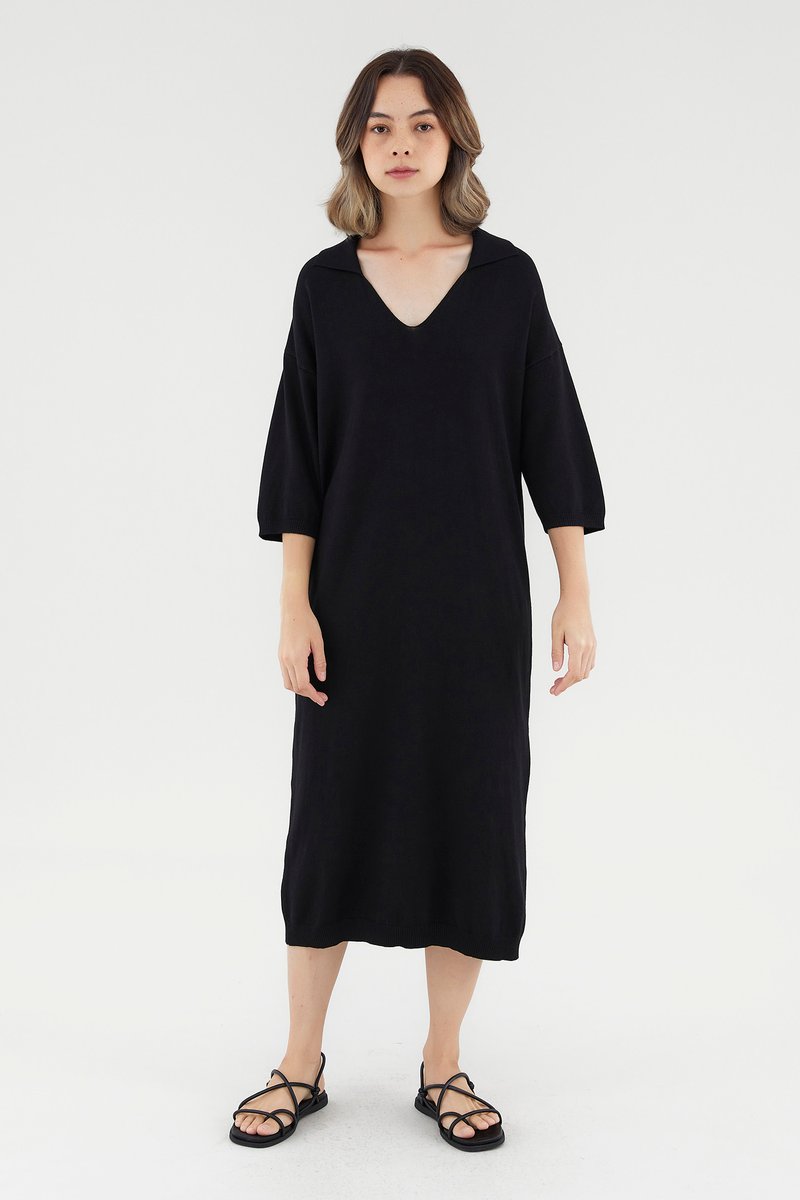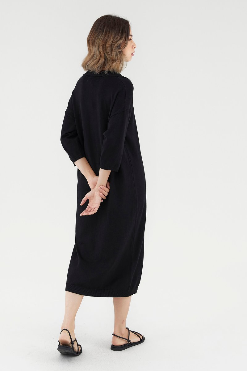 <p><span style="font-weight: 400;">Fabric Composition: 100% Viscose</span></p> <p><span style="font-weight: 400;">Lining: None</span></p> <p><span style="font-weight: 400;">Sheerness: Opaque</span></p> <p><span style="font-weight: 400;">Pockets: None</span></p> <p><span style="font-weight: 400;">Comfort first. Made from soft and stretchy knit fabric, this midi dress features half sleeves, dropped shoulders, a collared V-neckline and a ribbed hemline. Worn in a relaxed, oversized fit. </span></p> <p><span style="font-weight: 400;">Care Instructions: Do not soak / Do not bleach / Handwash or Machine wash on gentle mode / Do not machine dry / Iron using low heat</span></p>