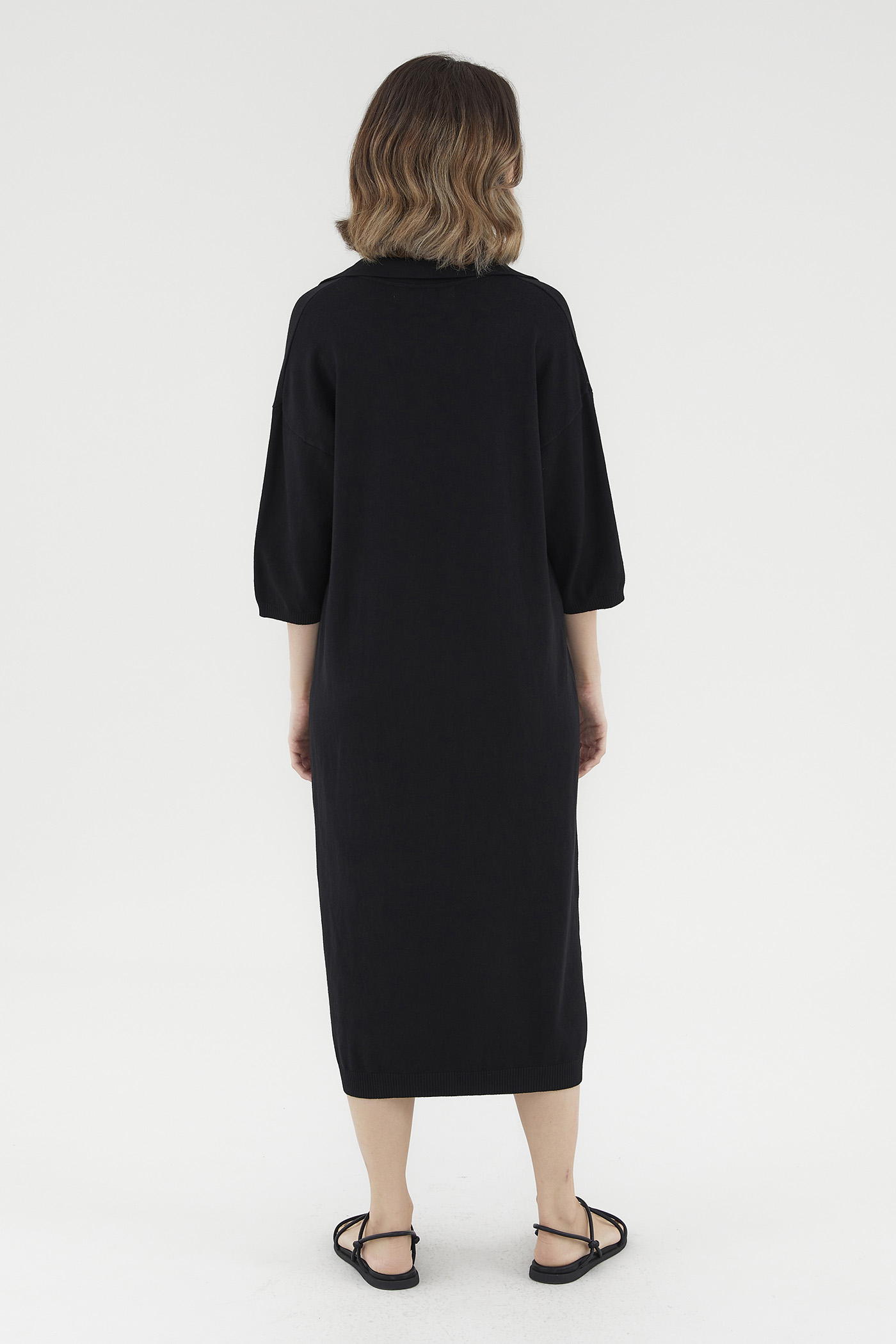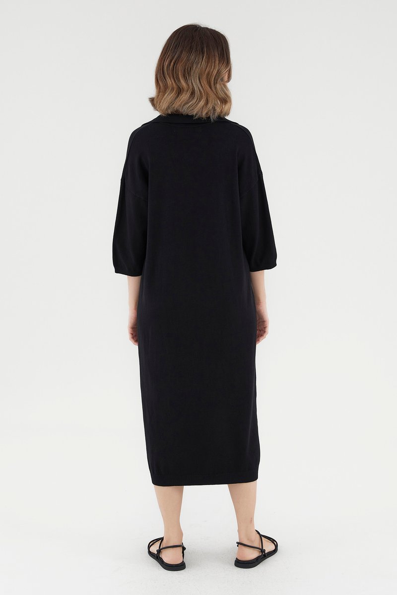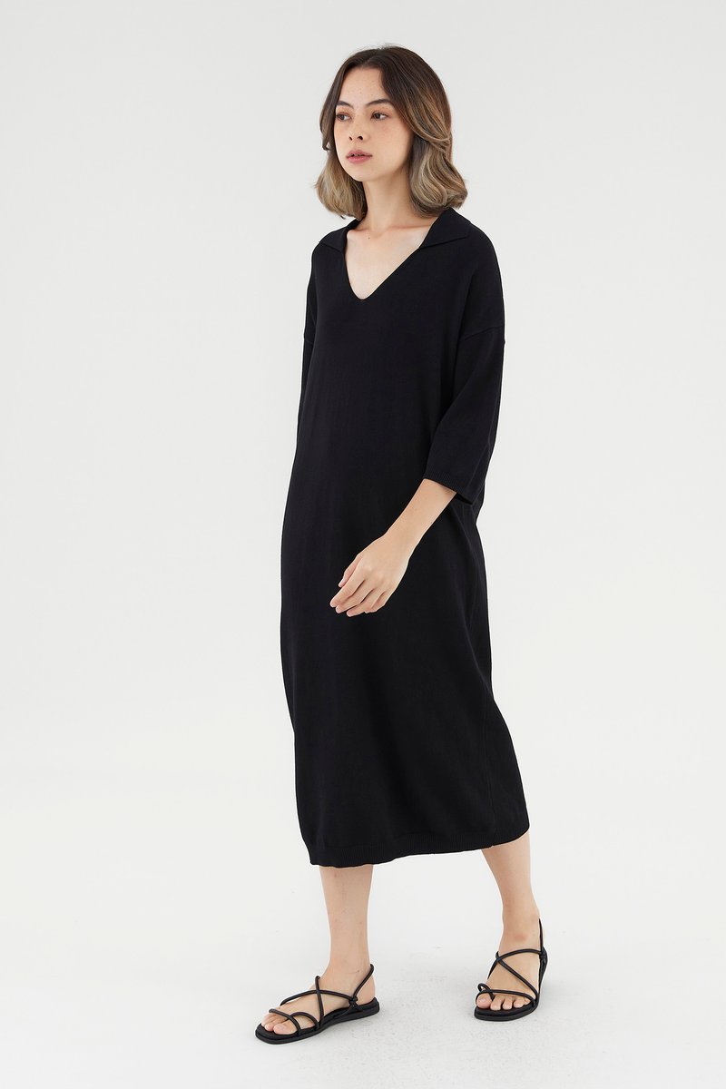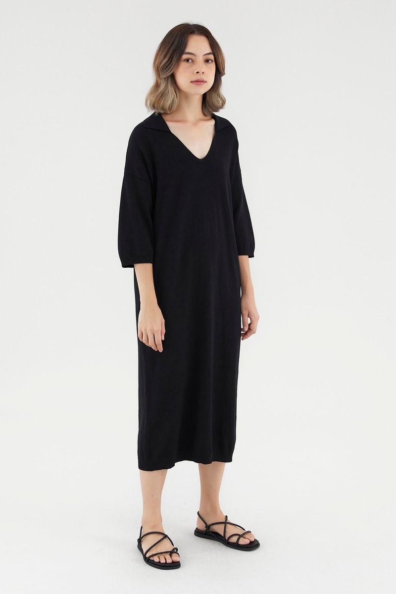 <p><span style="font-weight: 400;">Fabric Composition: 100% Viscose</span></p> <p><span style="font-weight: 400;">Lining: None</span></p> <p><span style="font-weight: 400;">Sheerness: Opaque</span></p> <p><span style="font-weight: 400;">Pockets: None</span></p> <p><span style="font-weight: 400;">Comfort first. Made from soft and stretchy knit fabric, this midi dress features half sleeves, dropped shoulders, a collared V-neckline and a ribbed hemline. Worn in a relaxed, oversized fit. </span></p> <p><span style="font-weight: 400;">Care Instructions: Do not soak / Do not bleach / Handwash or Machine wash on gentle mode / Do not machine dry / Iron using low heat</span></p>