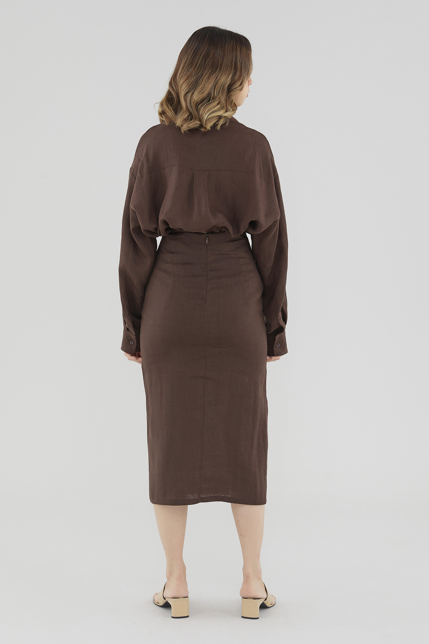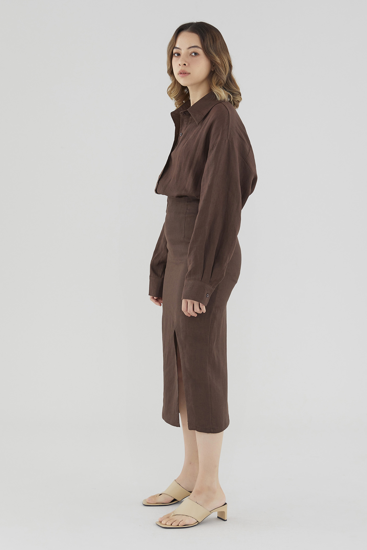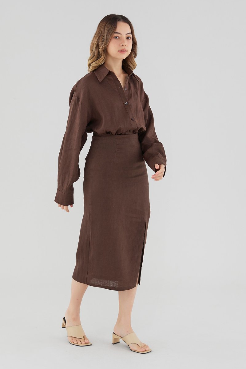 Minimalist-approved. Cut from airy and lightweight 100% linen, this midi skirt features a flattering high waist, slit on the front and zip closure on the back. Fits slim in a sleek slip silhouette.