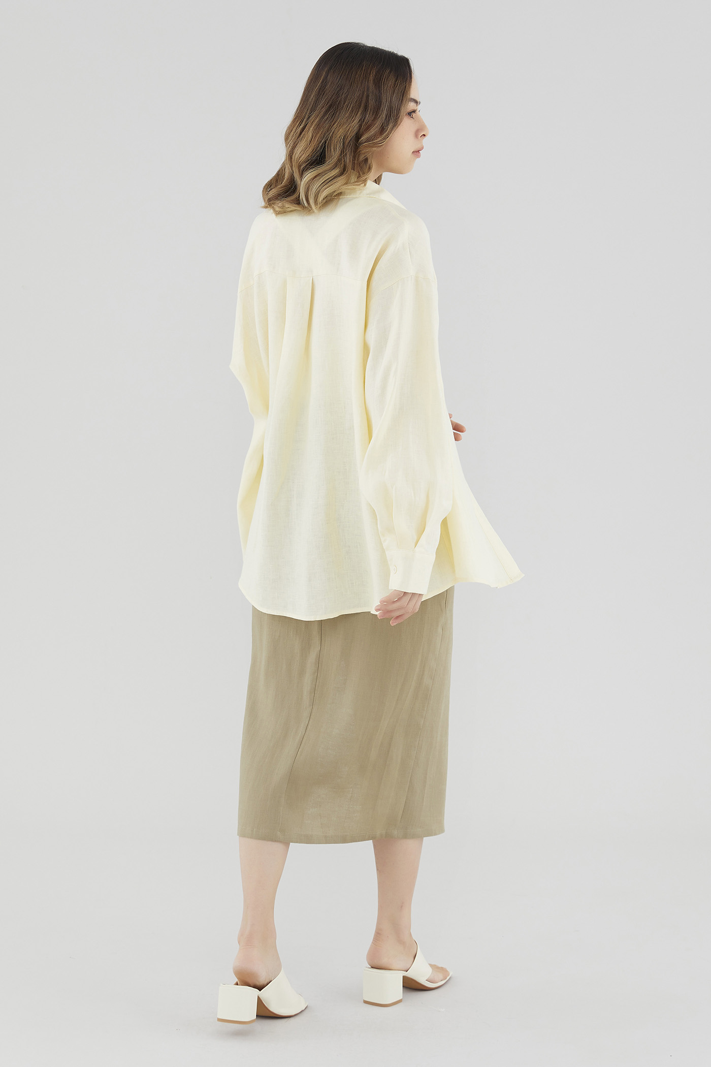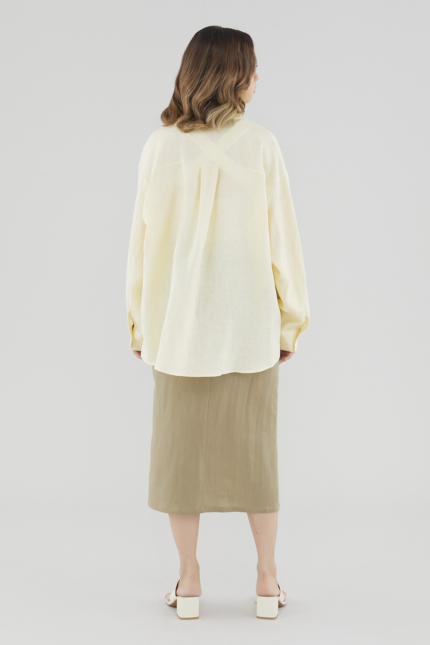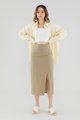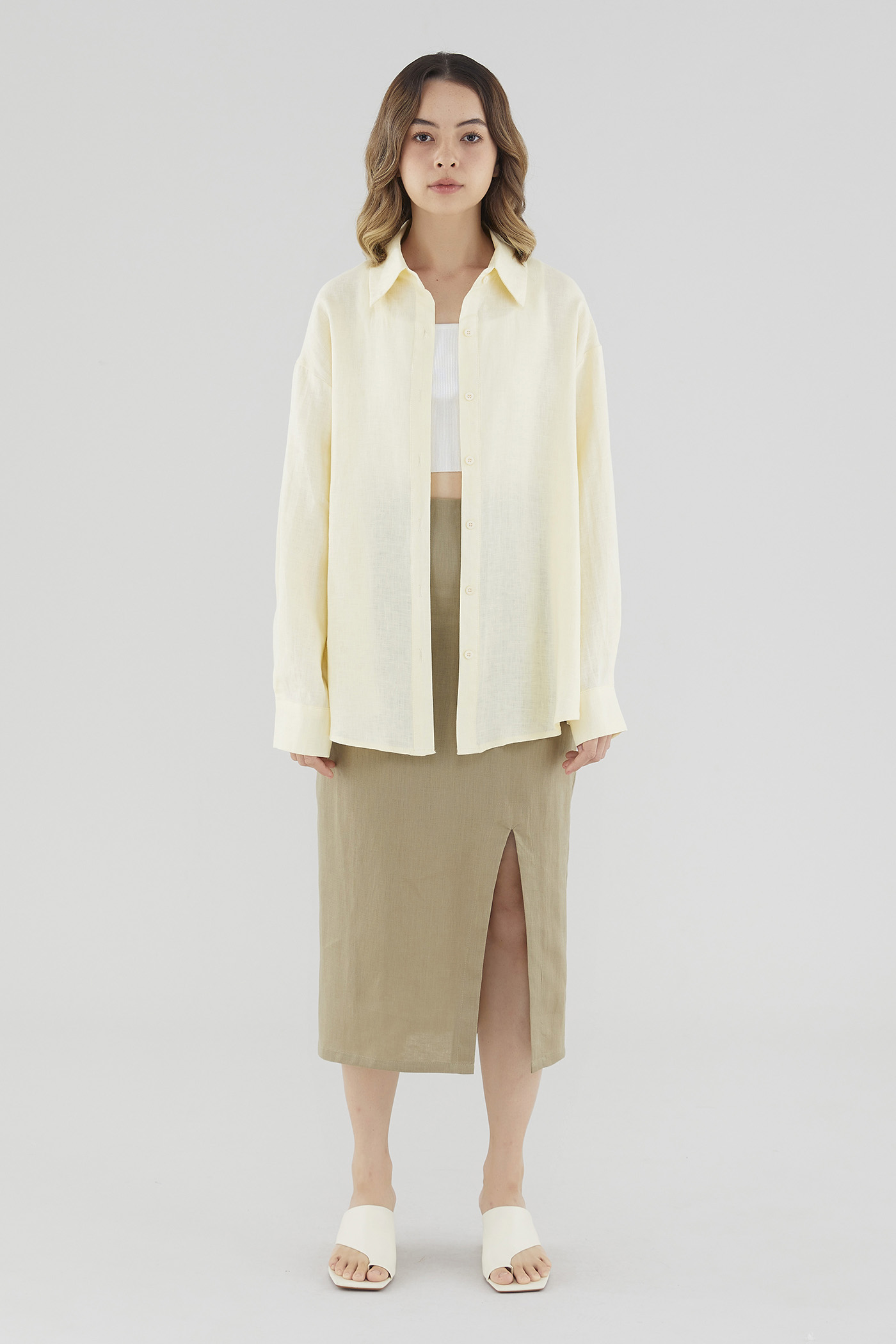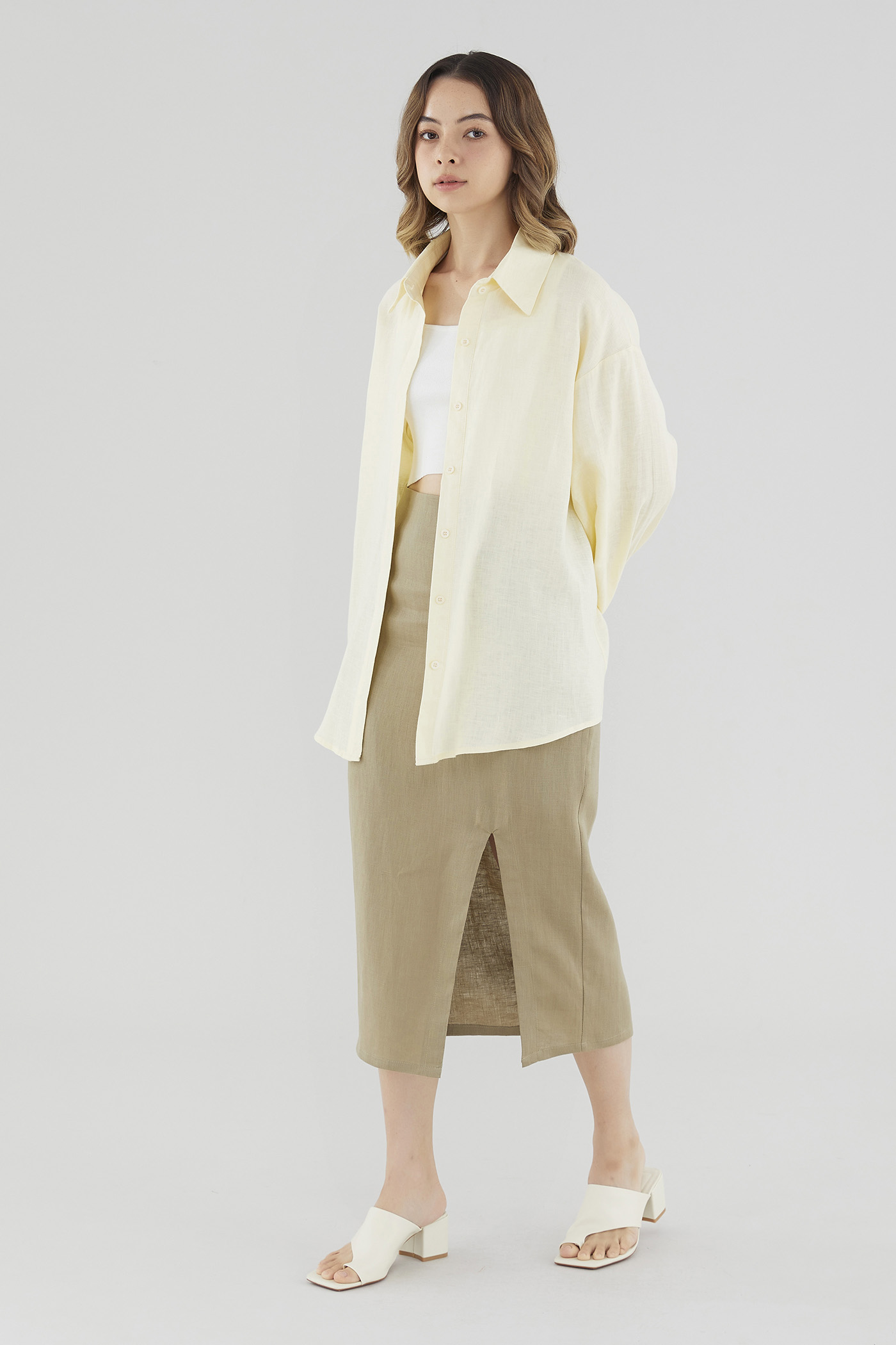 Minimalist-approved. Cut from airy and lightweight 100% linen, this midi skirt features a flattering high waist, slit on the front and zip closure on the back. Fits slim in a sleek slip silhouette.