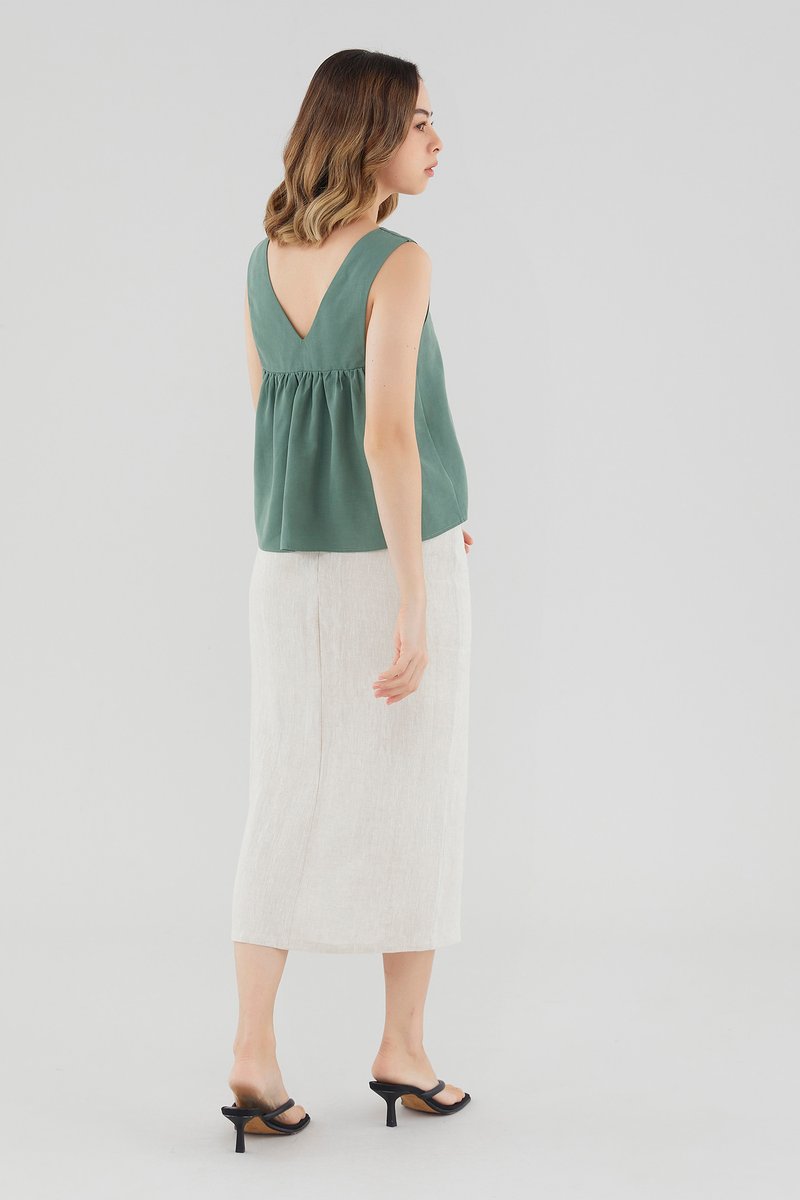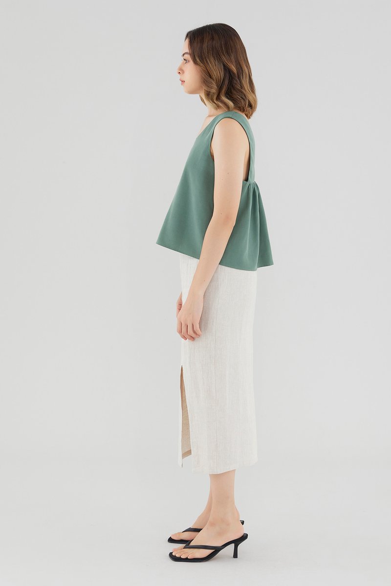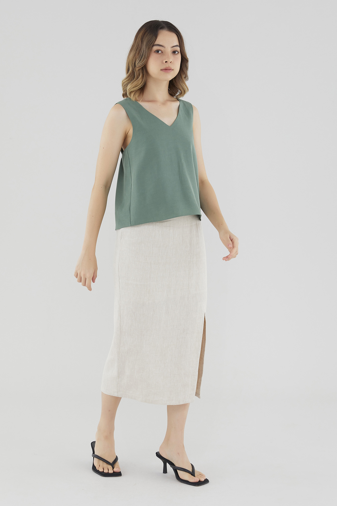 Minimalist-approved. Cut from airy and lightweight 100% linen, this midi skirt features a flattering high waist, slit on the front and zip closure on the back. Fits slim in a sleek slip silhouette.
