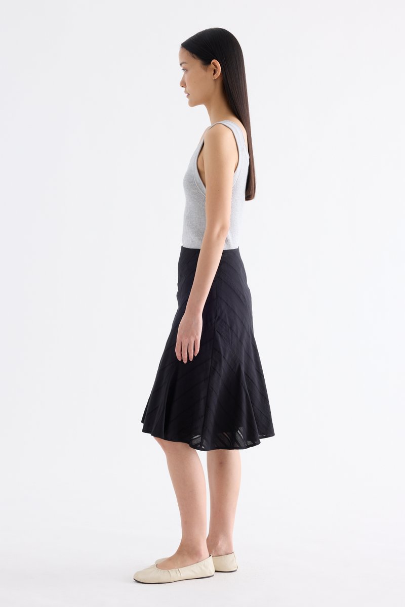 Textural. Made from airy and striped cotton, this knee-length skirt features a flared hem and side zip closure. Fits slim in an A-line silhouette.