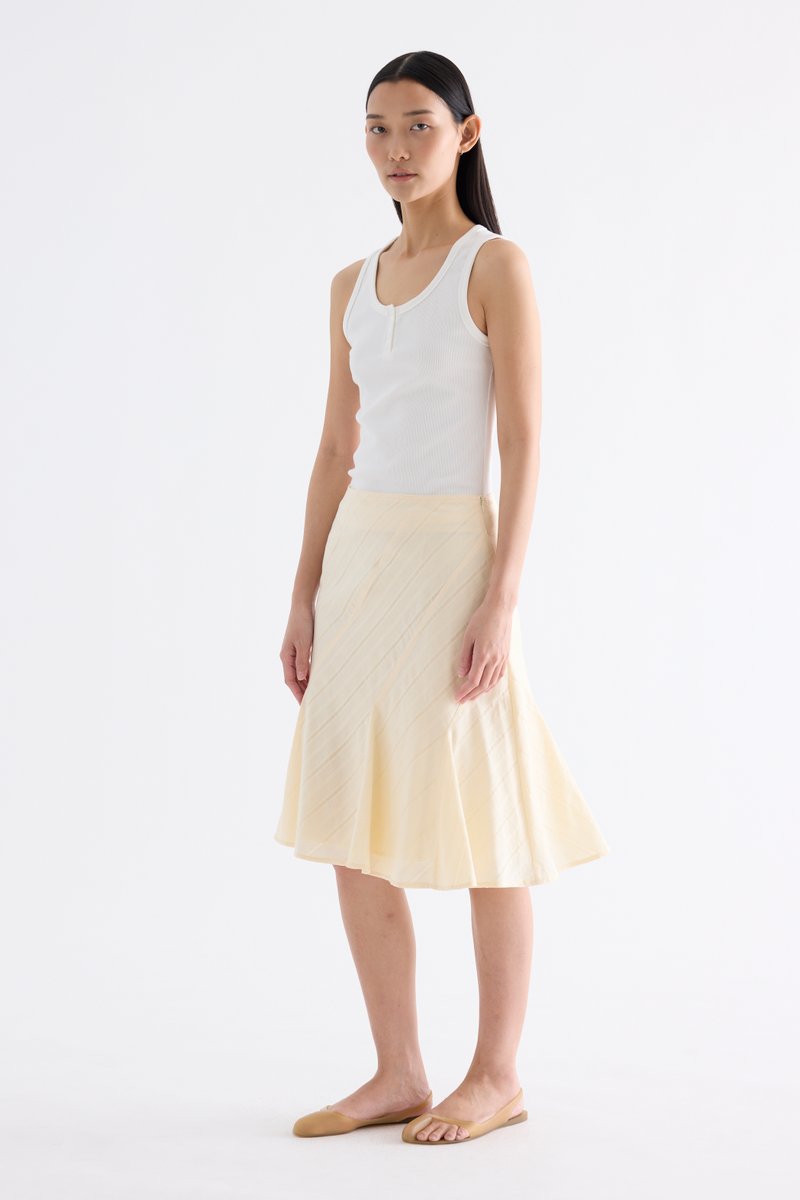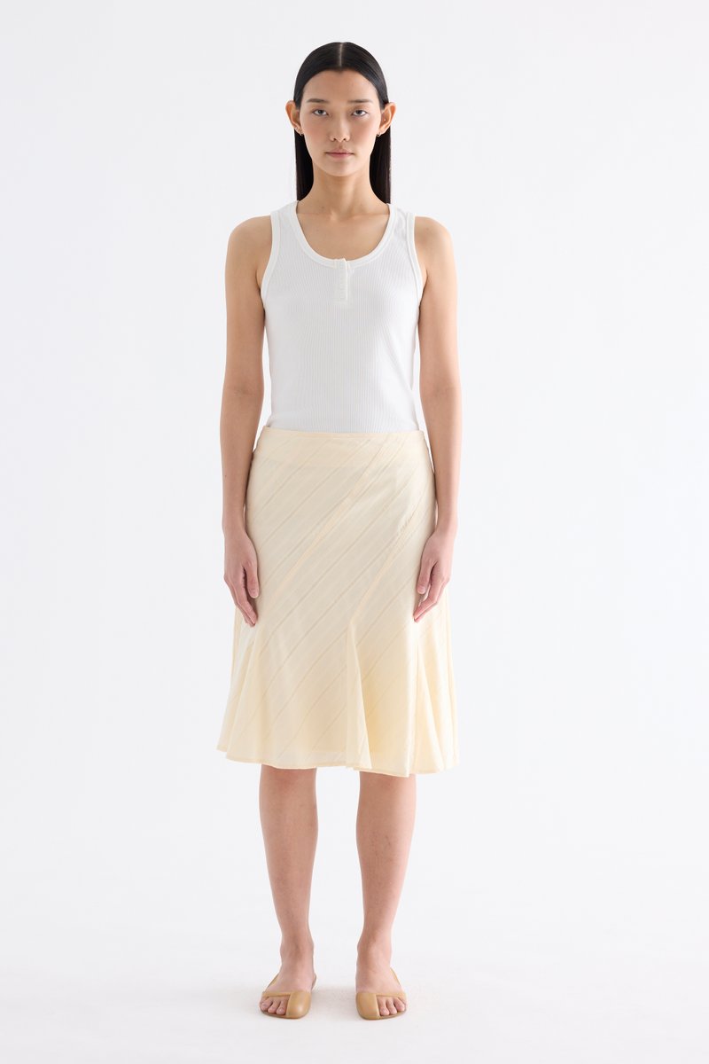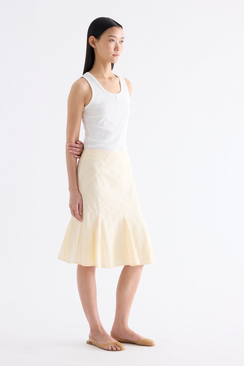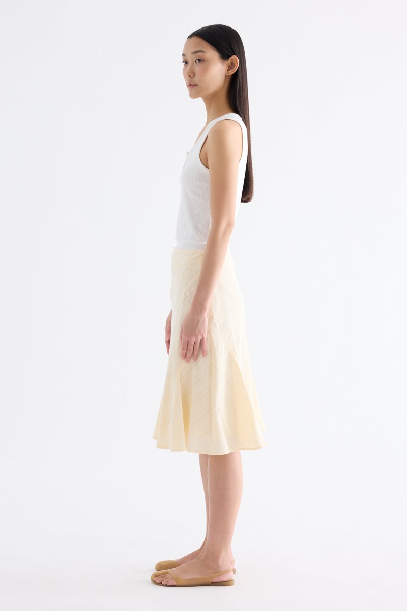 Textural. Made from airy and striped cotton, this knee-length skirt features a flared hem and side zip closure. Fits slim in an A-line silhouette.