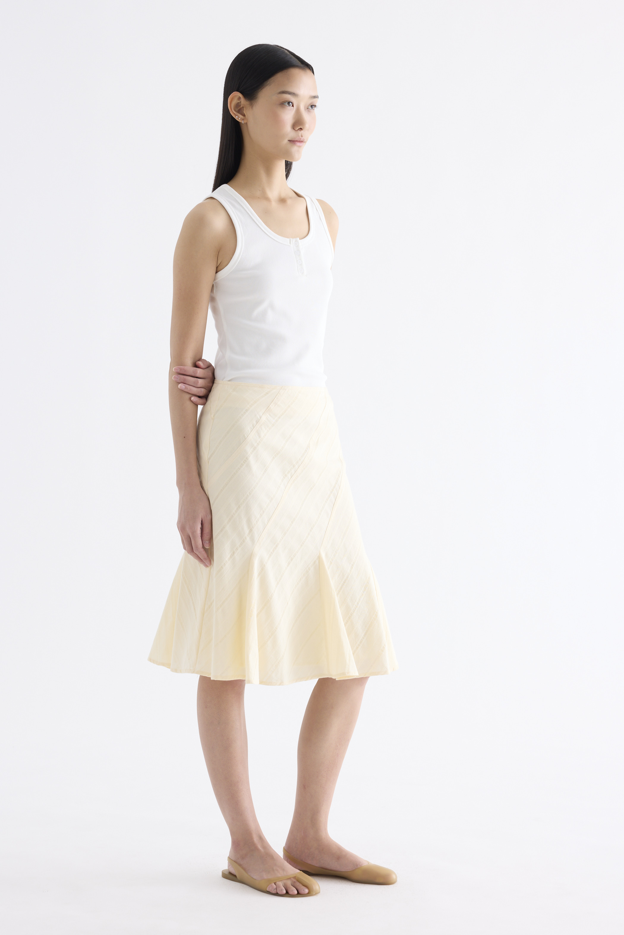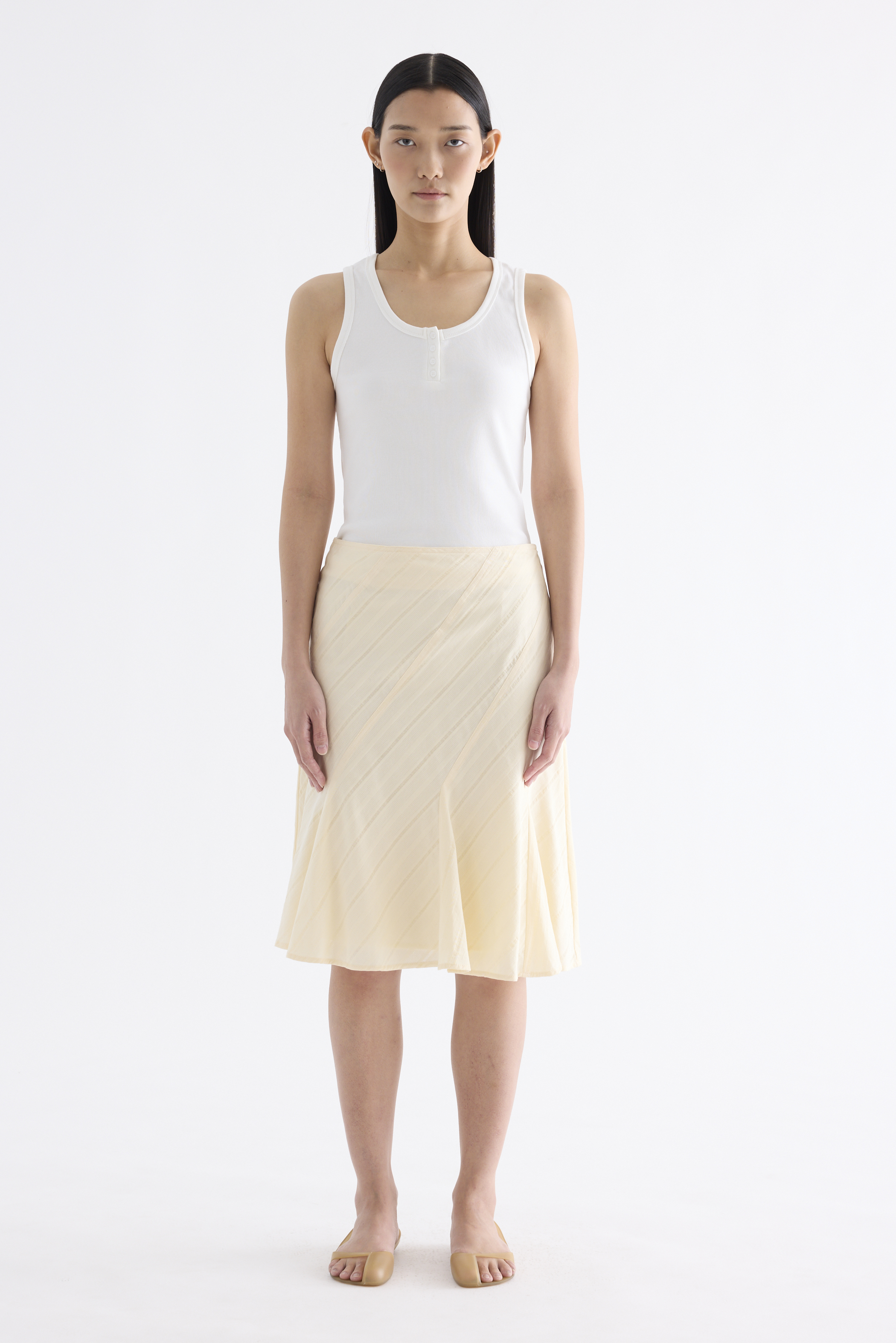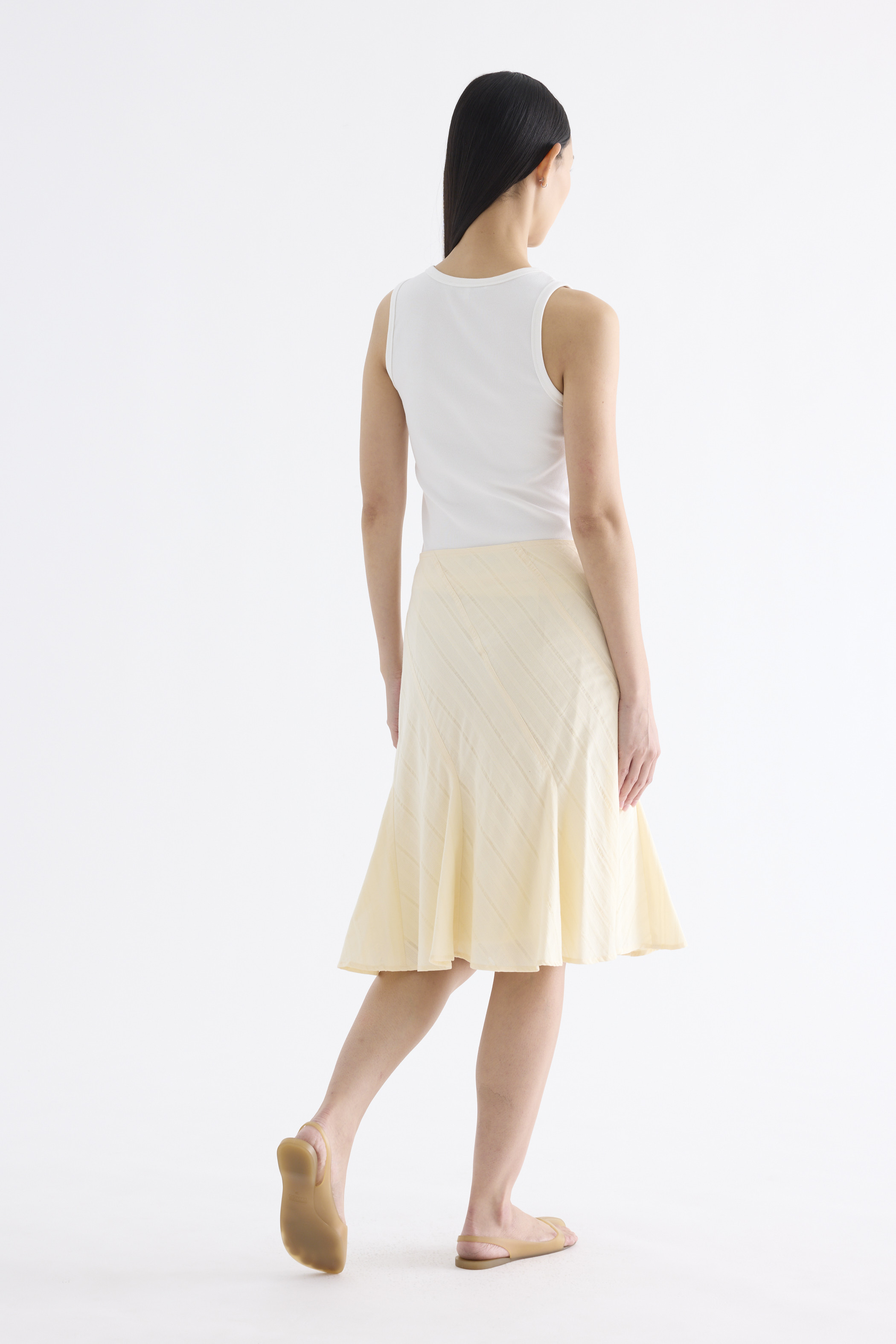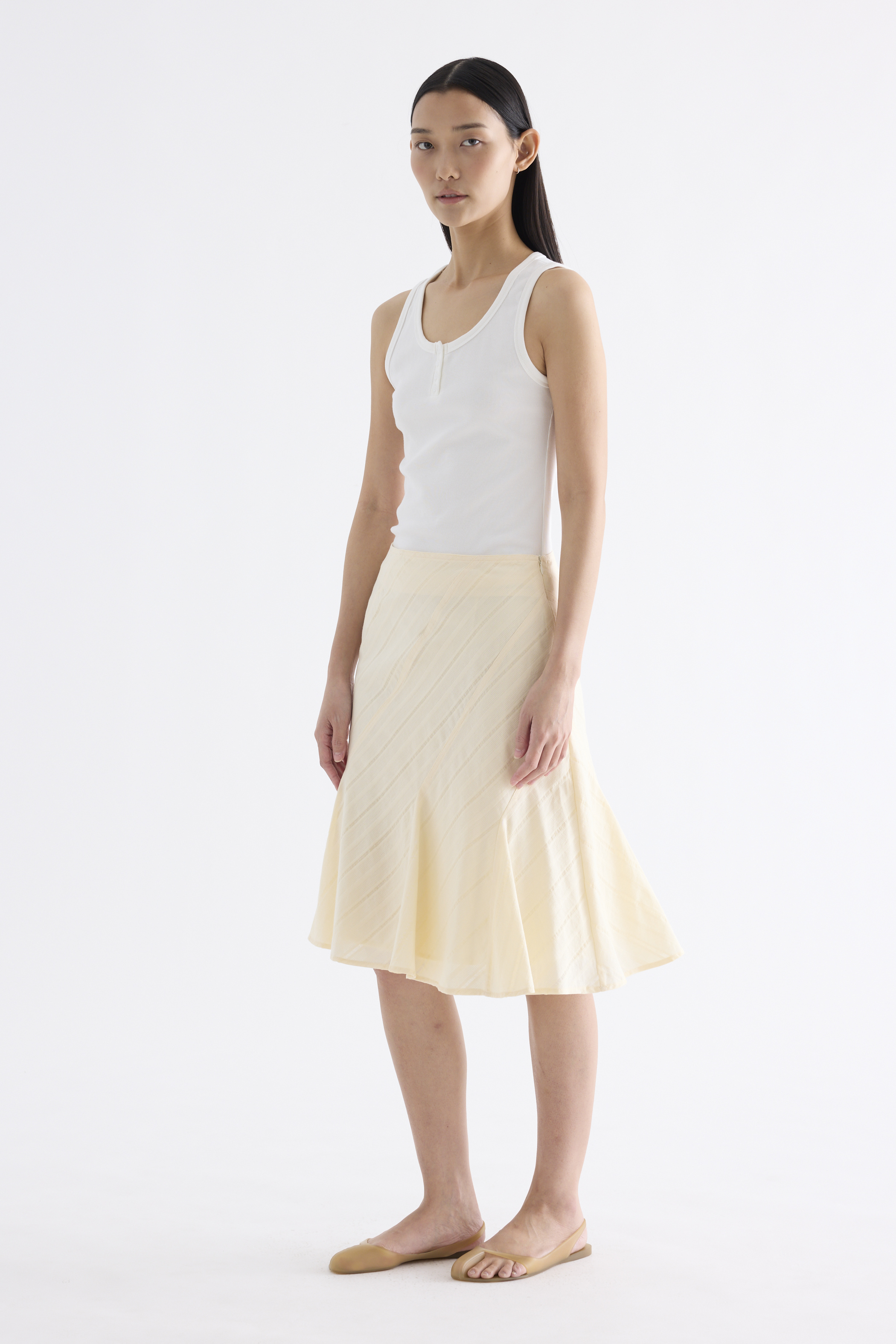 Textural. Made from airy and striped cotton, this knee-length skirt features a flared hem and side zip closure. Fits slim in an A-line silhouette.