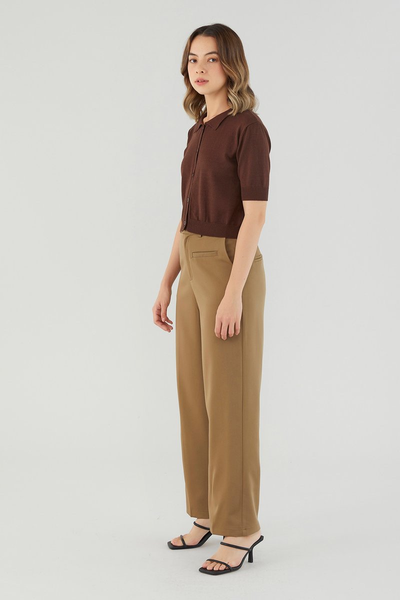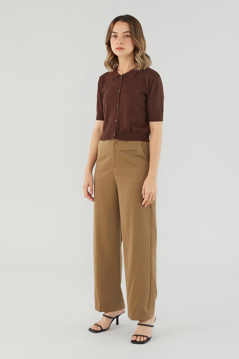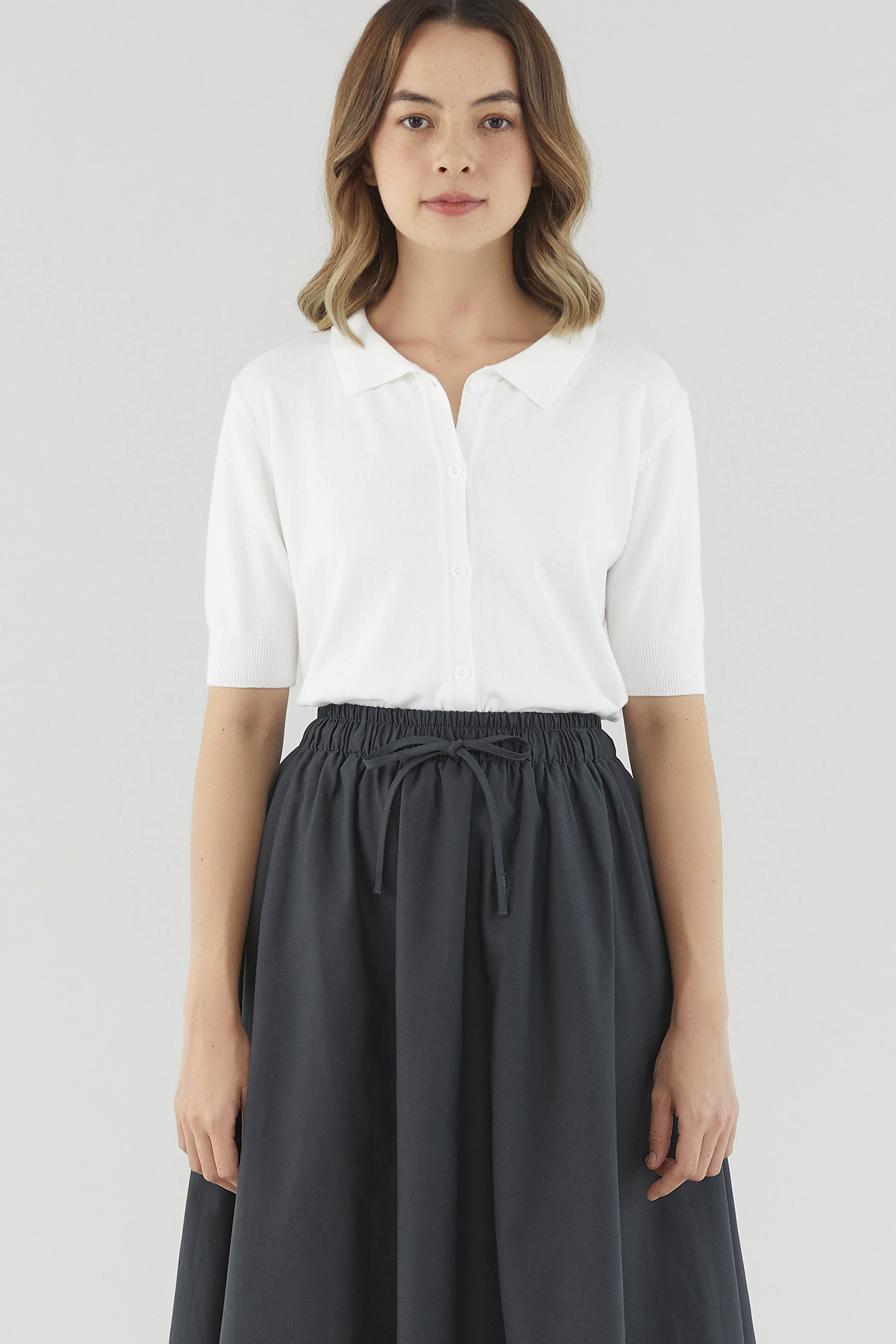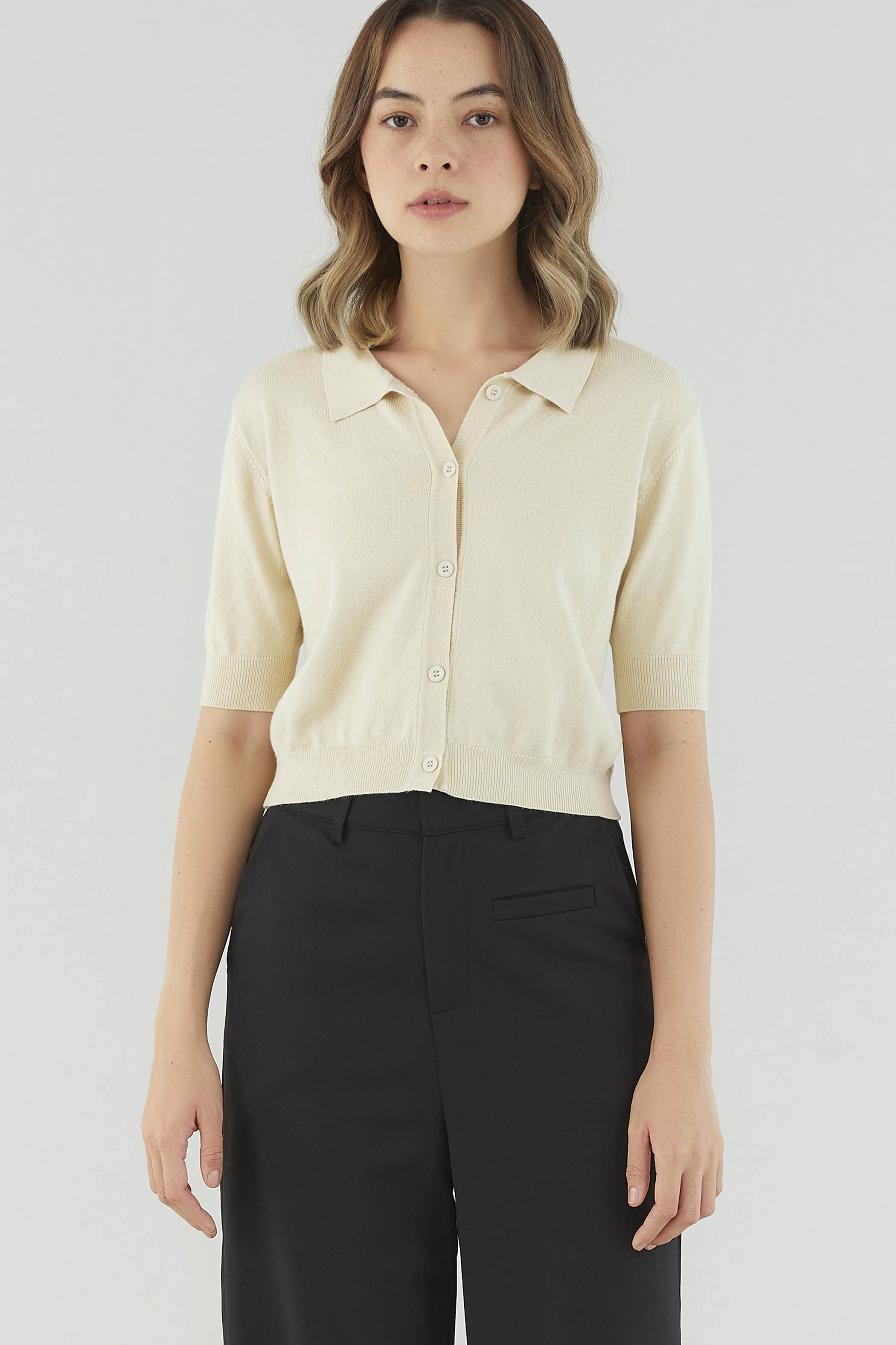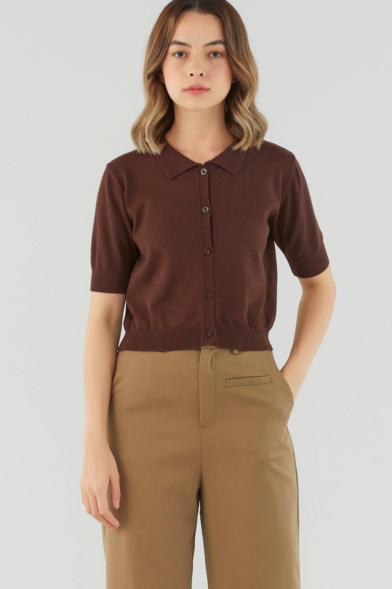 <p><span style="font-weight: 400;">Fabric Composition: 100% Viscose</span></p> <p><span style="font-weight: 400;">Lining: Unlined</span></p> <p><span style="font-weight: 400;">Sheerness: Not sheer</span></p> <p><span style="font-weight: 400;">Pockets: None</span></p> <p><span style="font-weight: 400;">The polo tee, reimagined. Made from soft and stretchy knit fabric, this top flaunts a round, collared neckline, short sleeves, a ribbed hem and a front button-down closure. Fits slim in a cropped length. </span></p> <p><span style="font-weight: 400;">Care Instructions: Do not soak / Do not bleach / Handwash or Machine wash on gentle mode / Do not machine dry / Iron using low heat</span></p>
