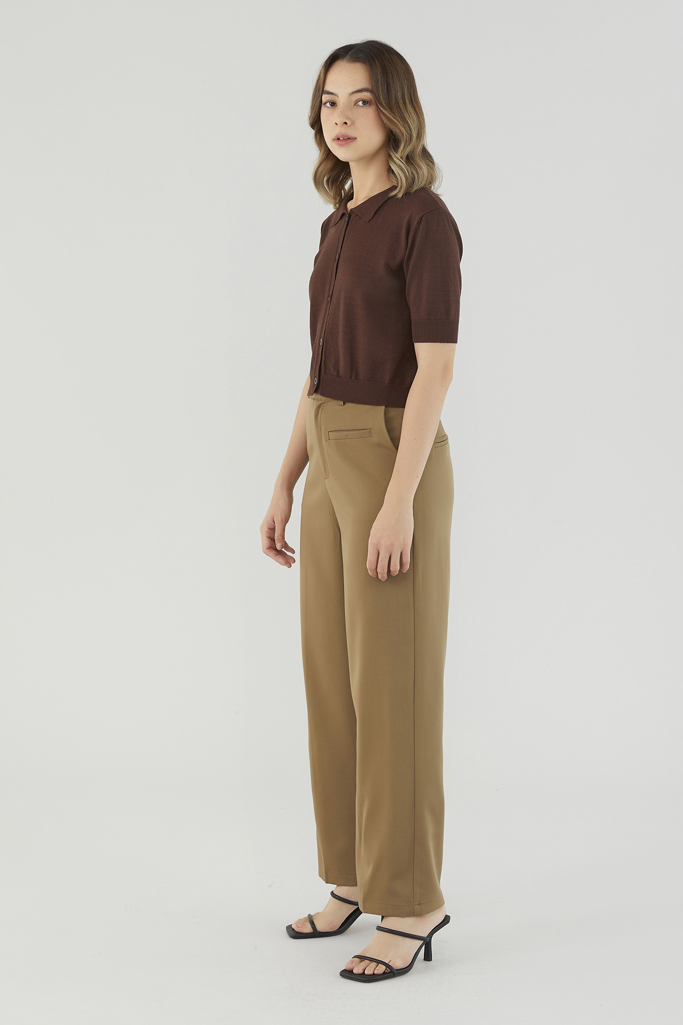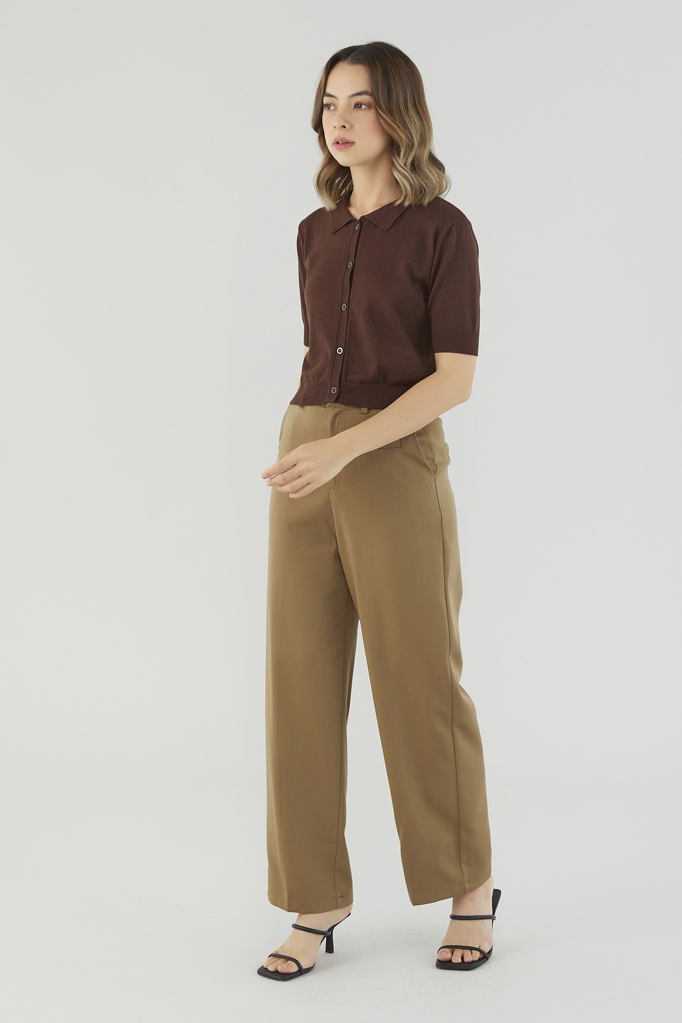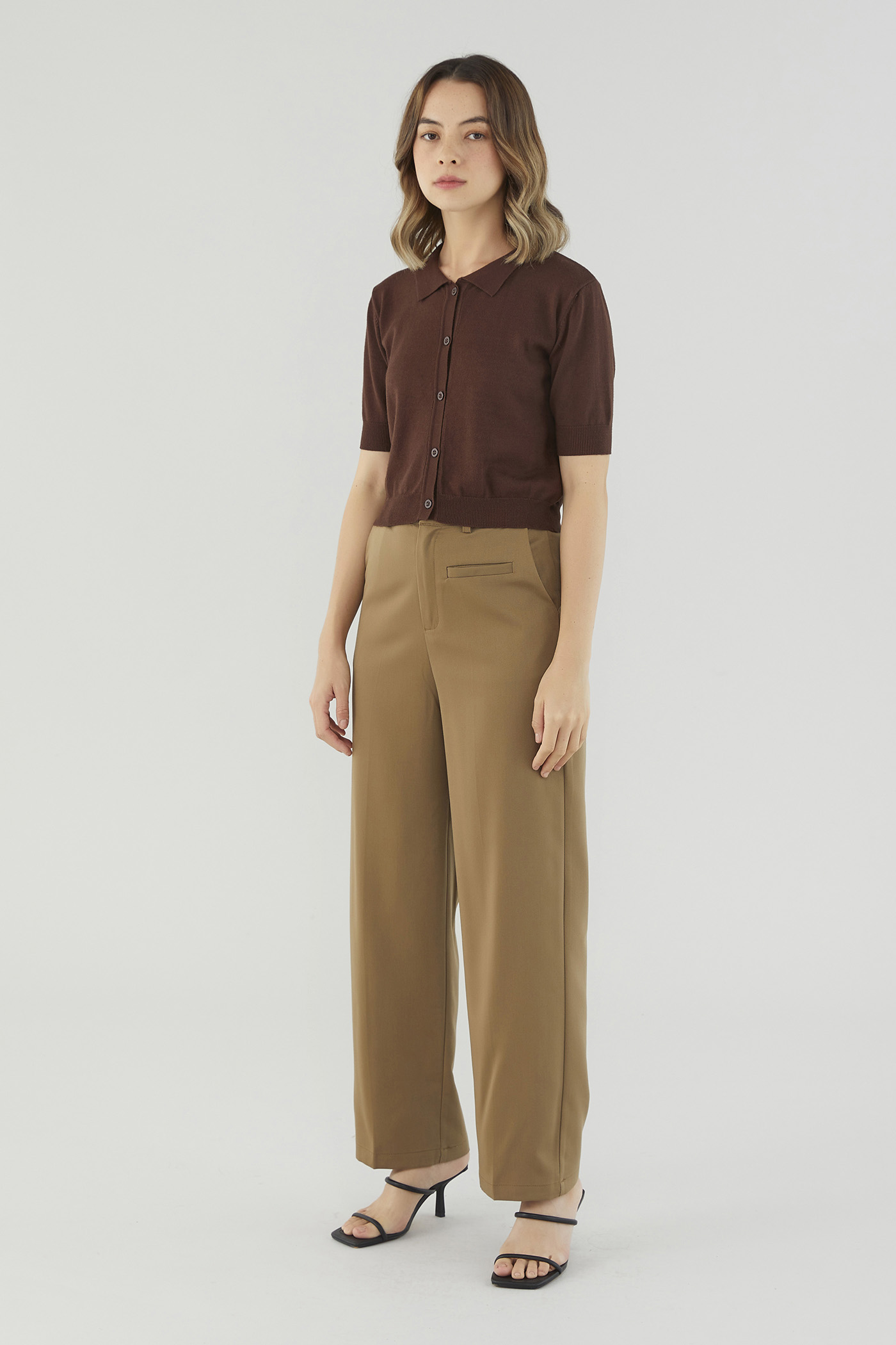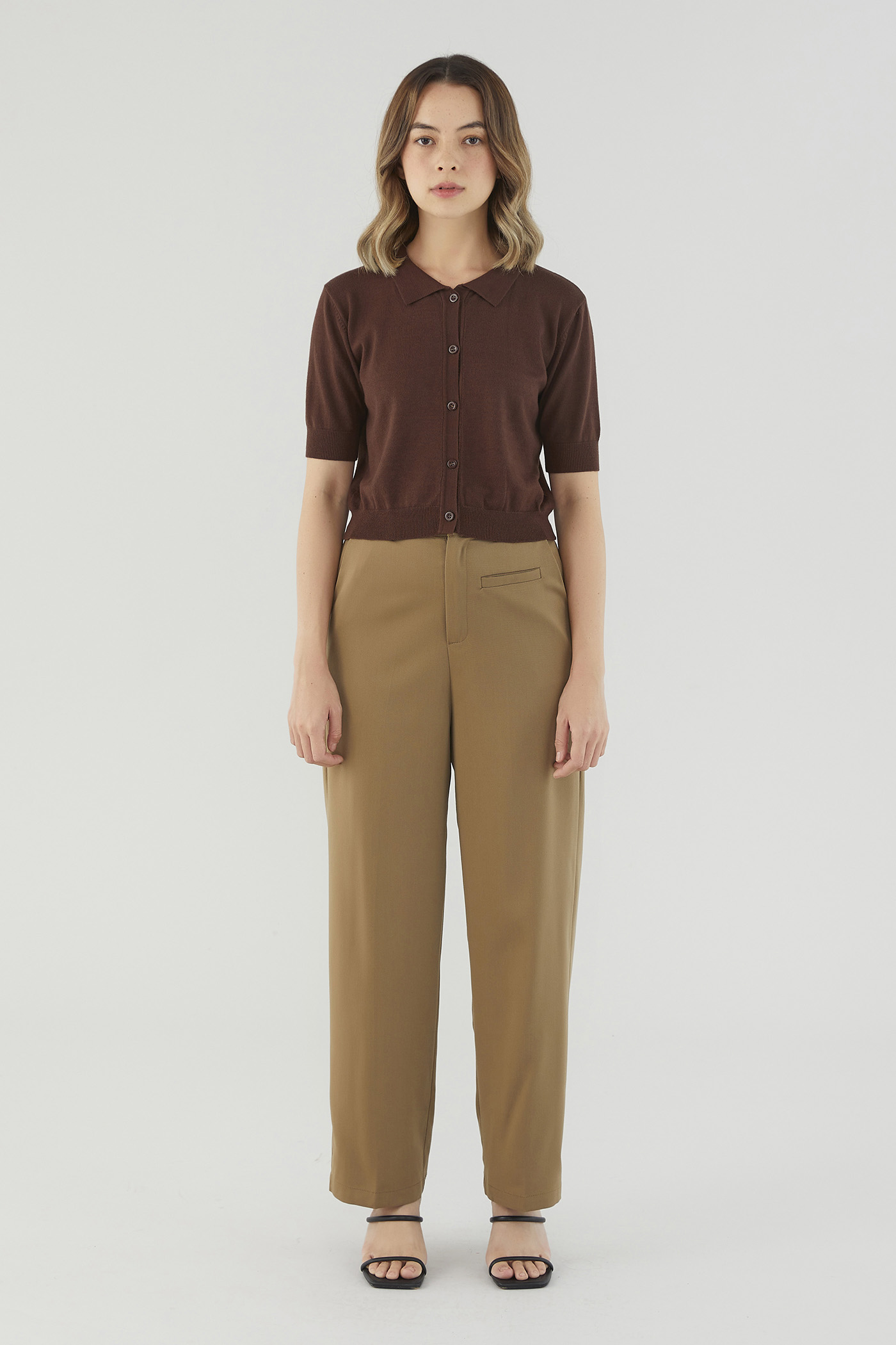 <p><span style="font-weight: 400;">Fabric Composition: 100% Viscose</span></p> <p><span style="font-weight: 400;">Lining: Unlined</span></p> <p><span style="font-weight: 400;">Sheerness: Not sheer</span></p> <p><span style="font-weight: 400;">Pockets: None</span></p> <p><span style="font-weight: 400;">The polo tee, reimagined. Made from soft and stretchy knit fabric, this top flaunts a round, collared neckline, short sleeves, a ribbed hem and a front button-down closure. Fits slim in a cropped length. </span></p> <p><span style="font-weight: 400;">Care Instructions: Do not soak / Do not bleach / Handwash or Machine wash on gentle mode / Do not machine dry / Iron using low heat</span></p>
