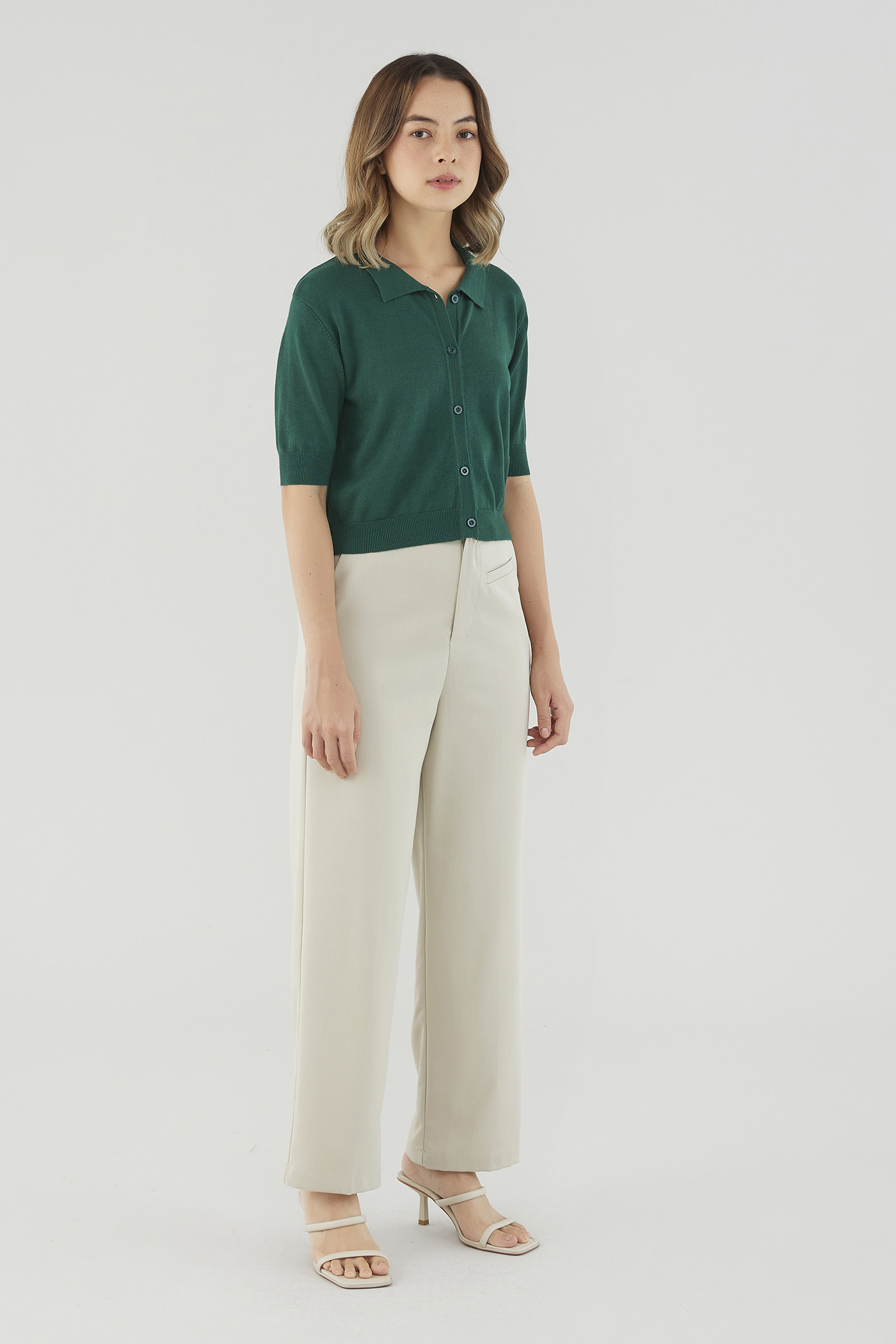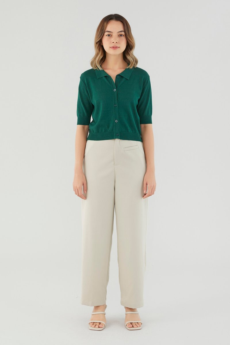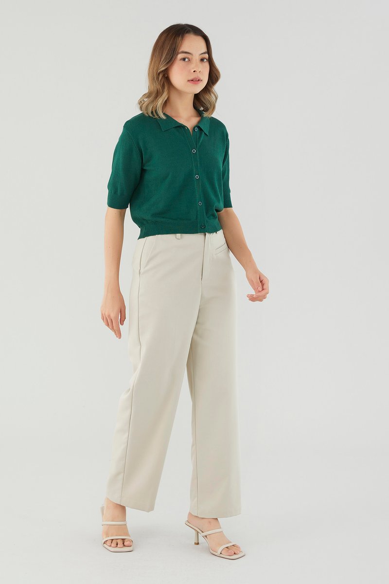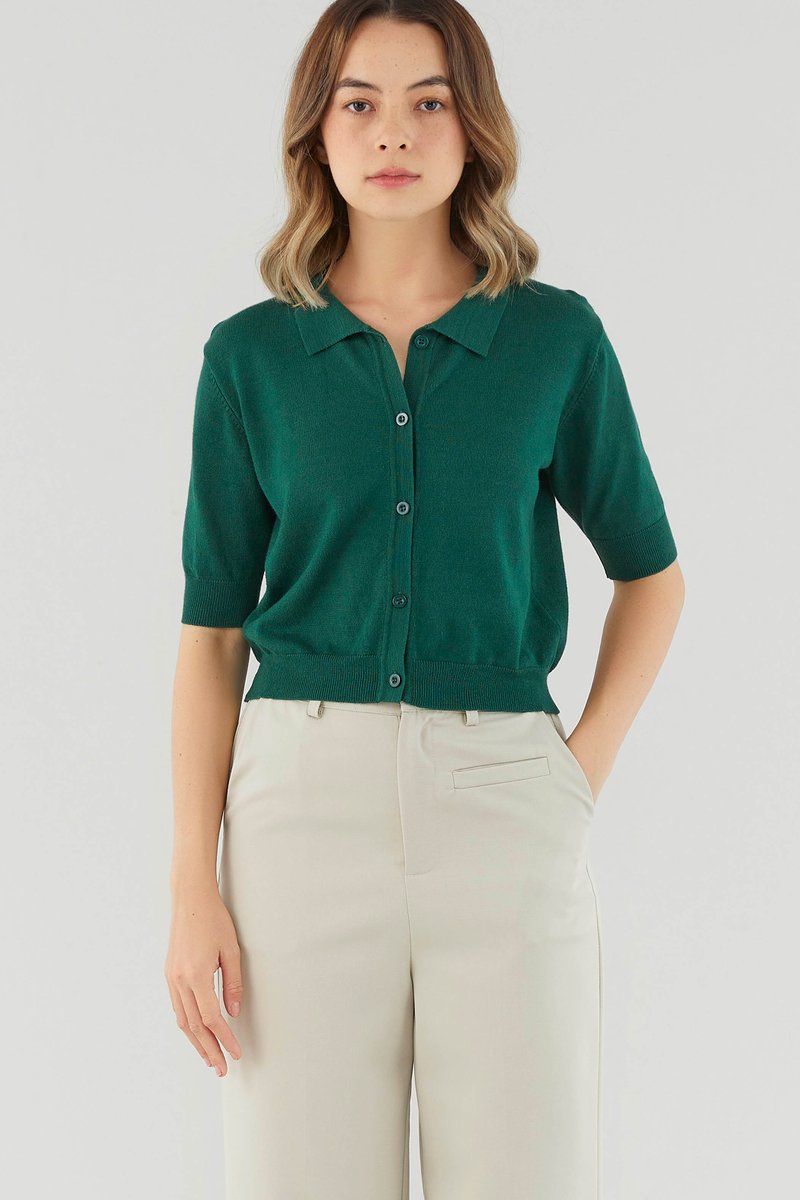 <p><span style="font-weight: 400;">Fabric Composition: 100% Viscose</span></p> <p><span style="font-weight: 400;">Lining: Unlined</span></p> <p><span style="font-weight: 400;">Sheerness: Not sheer</span></p> <p><span style="font-weight: 400;">Pockets: None</span></p> <p><span style="font-weight: 400;">The polo tee, reimagined. Made from soft and stretchy knit fabric, this top flaunts a round, collared neckline, short sleeves, a ribbed hem and a front button-down closure. Fits slim in a cropped length. </span></p> <p><span style="font-weight: 400;">Care Instructions: Do not soak / Do not bleach / Handwash or Machine wash on gentle mode / Do not machine dry / Iron using low heat</span></p>