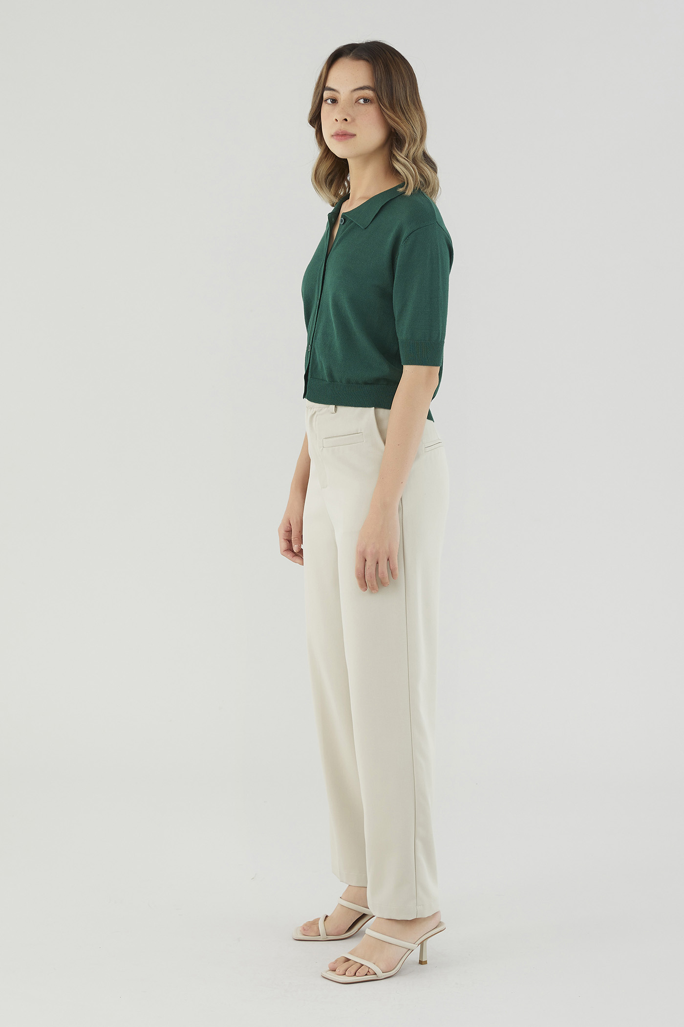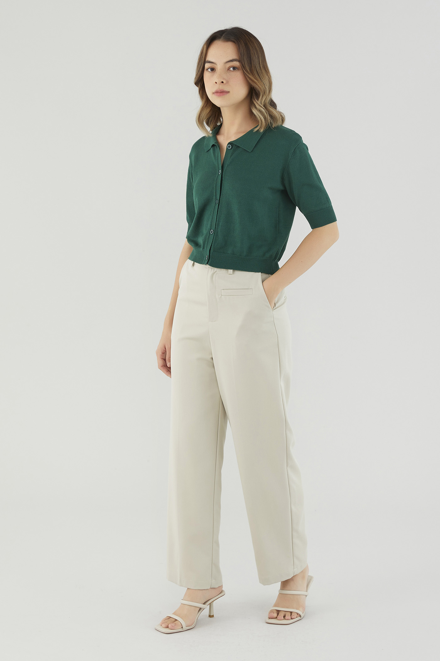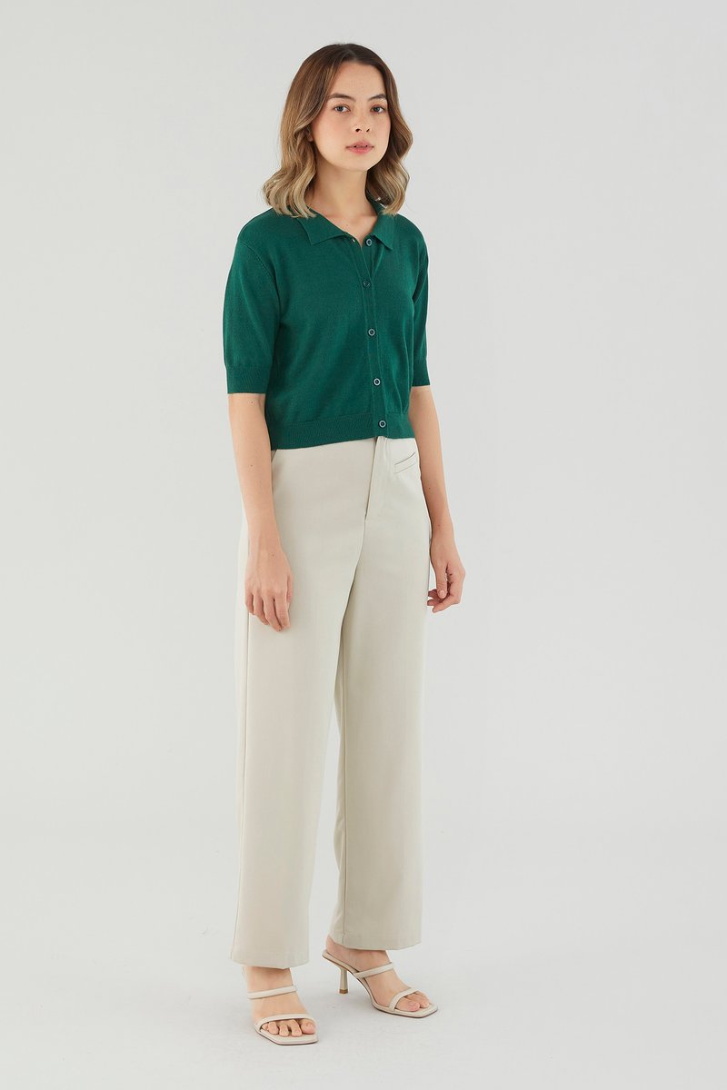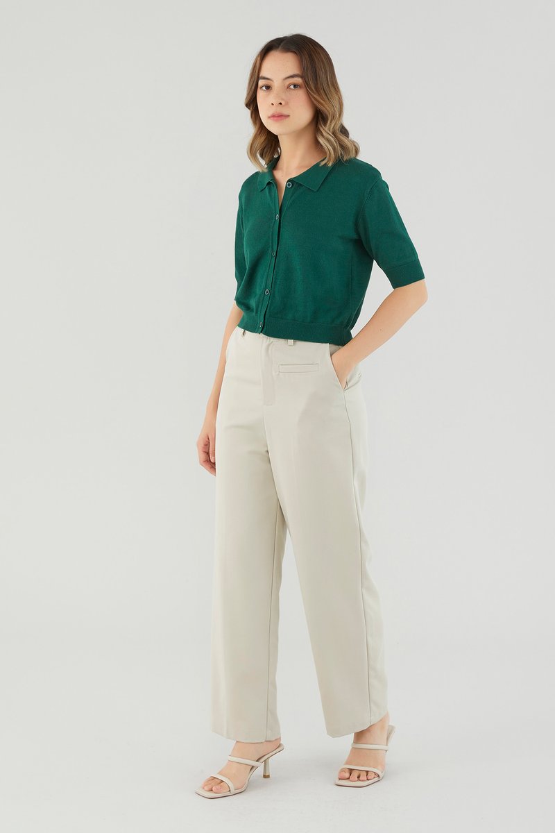 <p><span style="font-weight: 400;">Fabric Composition: 100% Viscose</span></p> <p><span style="font-weight: 400;">Lining: Unlined</span></p> <p><span style="font-weight: 400;">Sheerness: Not sheer</span></p> <p><span style="font-weight: 400;">Pockets: None</span></p> <p><span style="font-weight: 400;">The polo tee, reimagined. Made from soft and stretchy knit fabric, this top flaunts a round, collared neckline, short sleeves, a ribbed hem and a front button-down closure. Fits slim in a cropped length. </span></p> <p><span style="font-weight: 400;">Care Instructions: Do not soak / Do not bleach / Handwash or Machine wash on gentle mode / Do not machine dry / Iron using low heat</span></p>